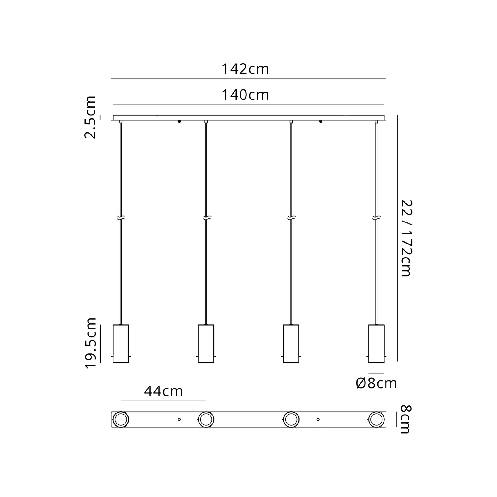 Idolite Adele 1.4m Linear Pendant (FRAME ONLY), 4 x E27, Titanium Gold/Satin Black | IDOGT6165