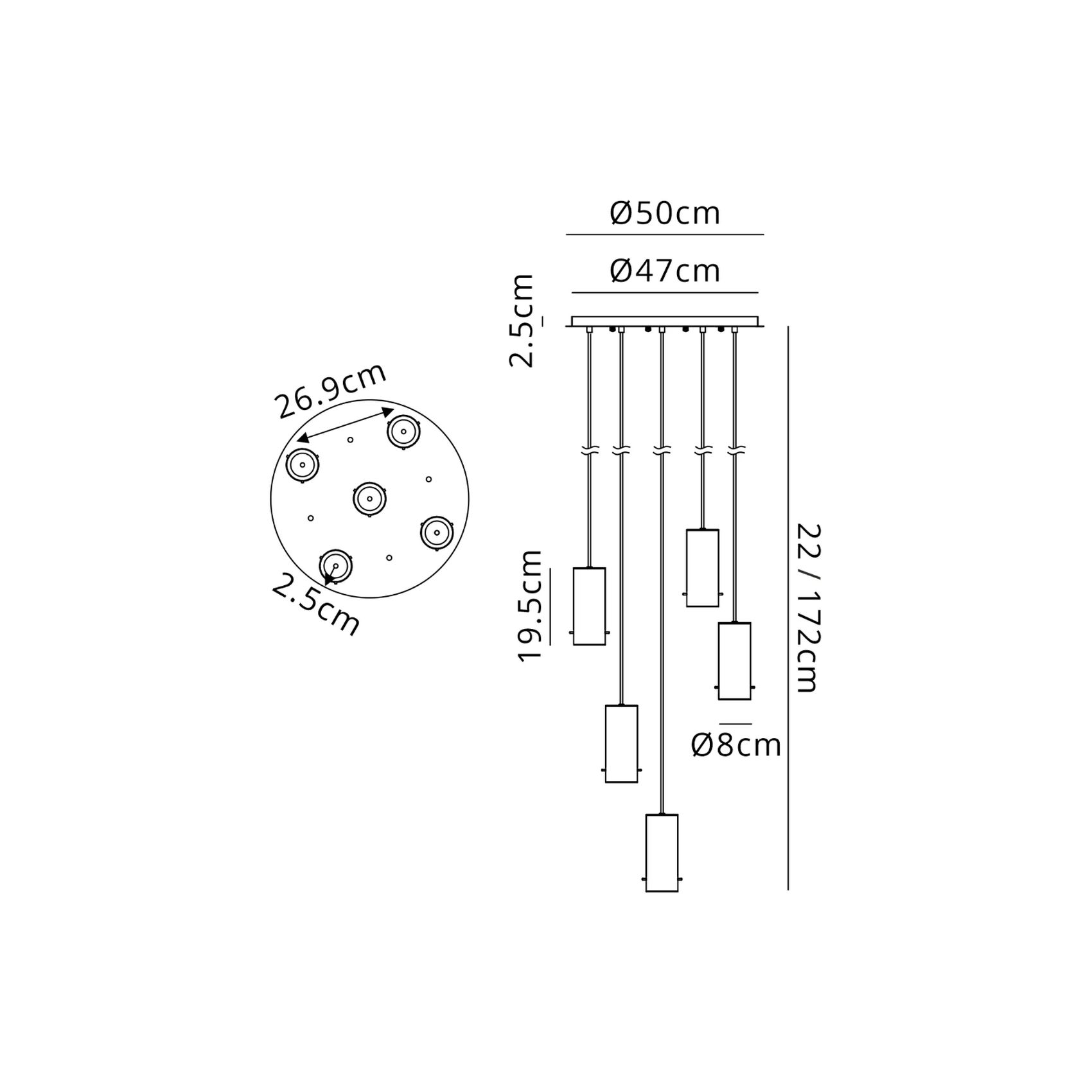 Idolite Adele 50cm Round Pendant (FRAME ONLY), 5 x E27, Satin Black | IDOLB2165