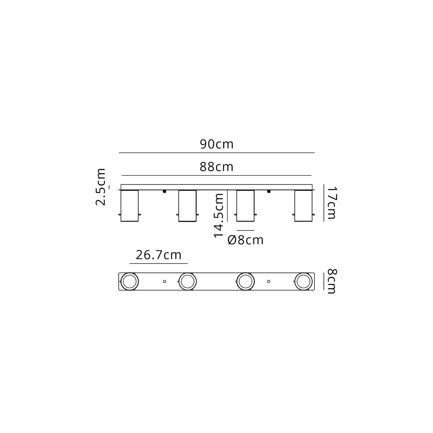 Idolite Adele 90cm Linear Ceiling Light (FRAME ONLY), 4 x E27, Gun Metal/Satin Black | IDOMG4165