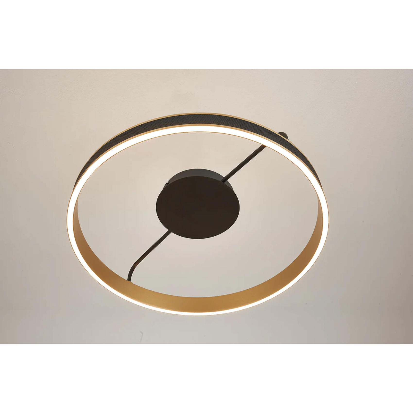 Idolite Aster 60cm Black Faux Leather/Brushed Gold Round Flush Led Light With Remote Control - Tuneable White 3000-6000K | IDOOG8876