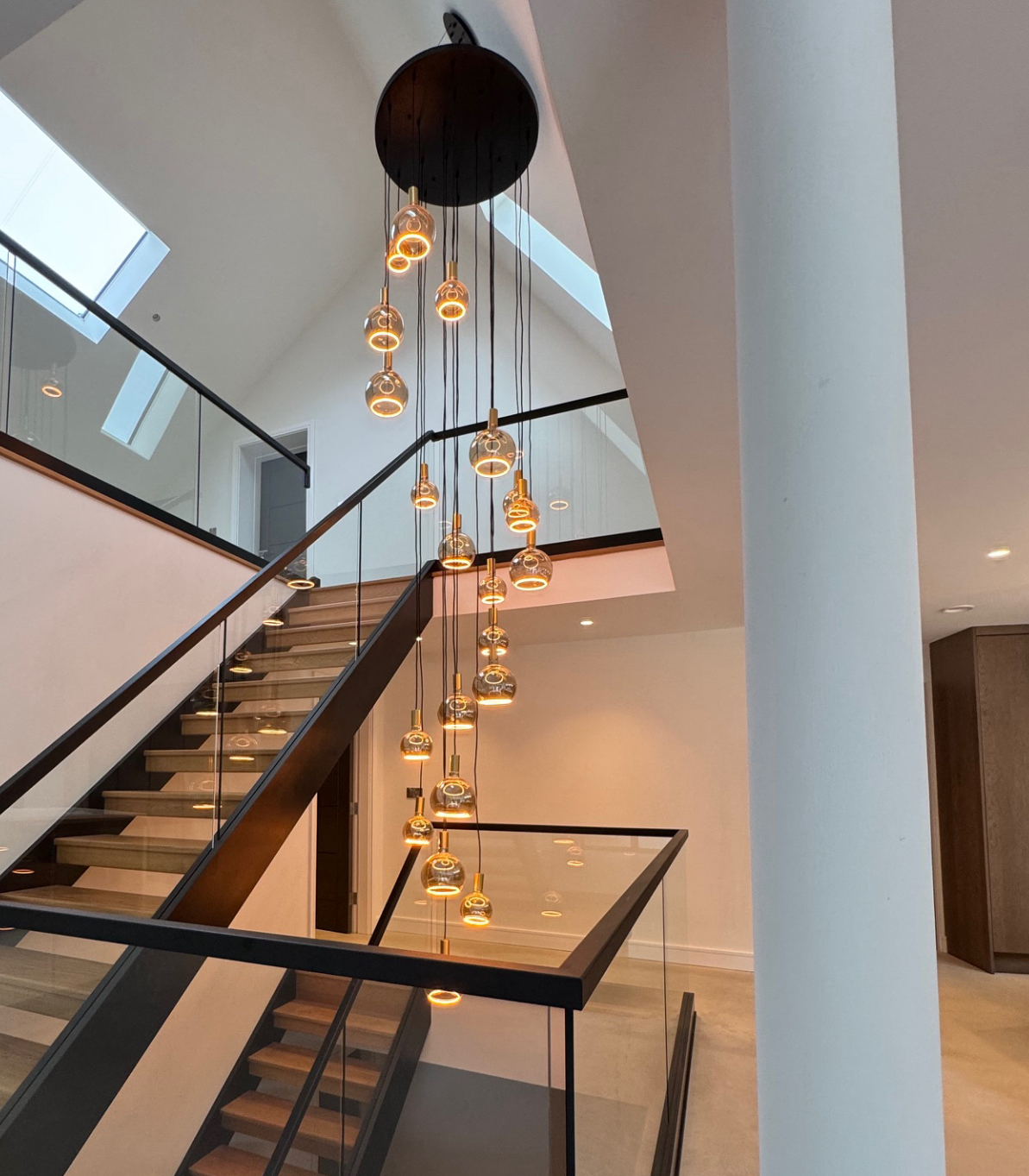 Extra-large feature lighting ideal for stairwells, double-height spaces, commercial interiors, and statement installations