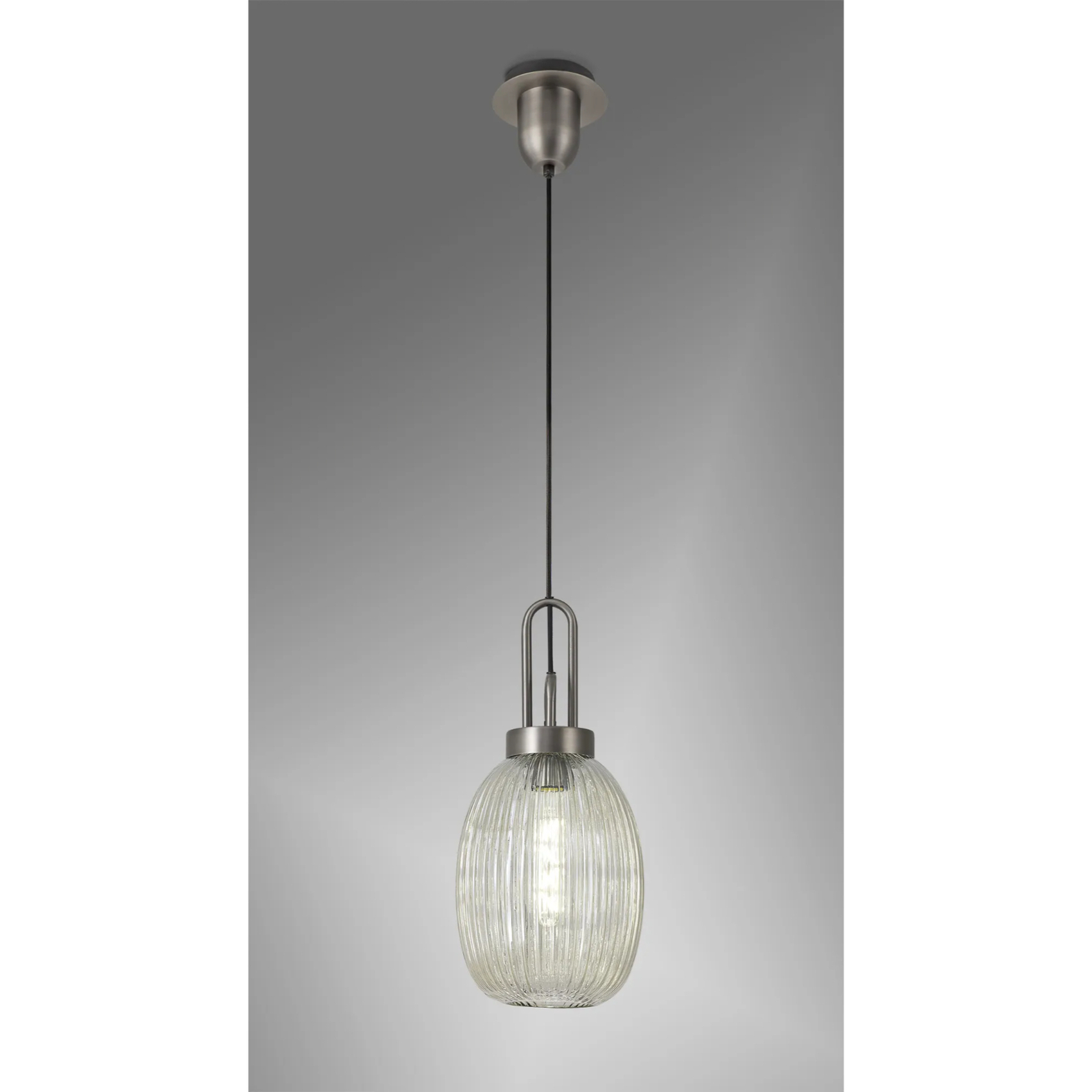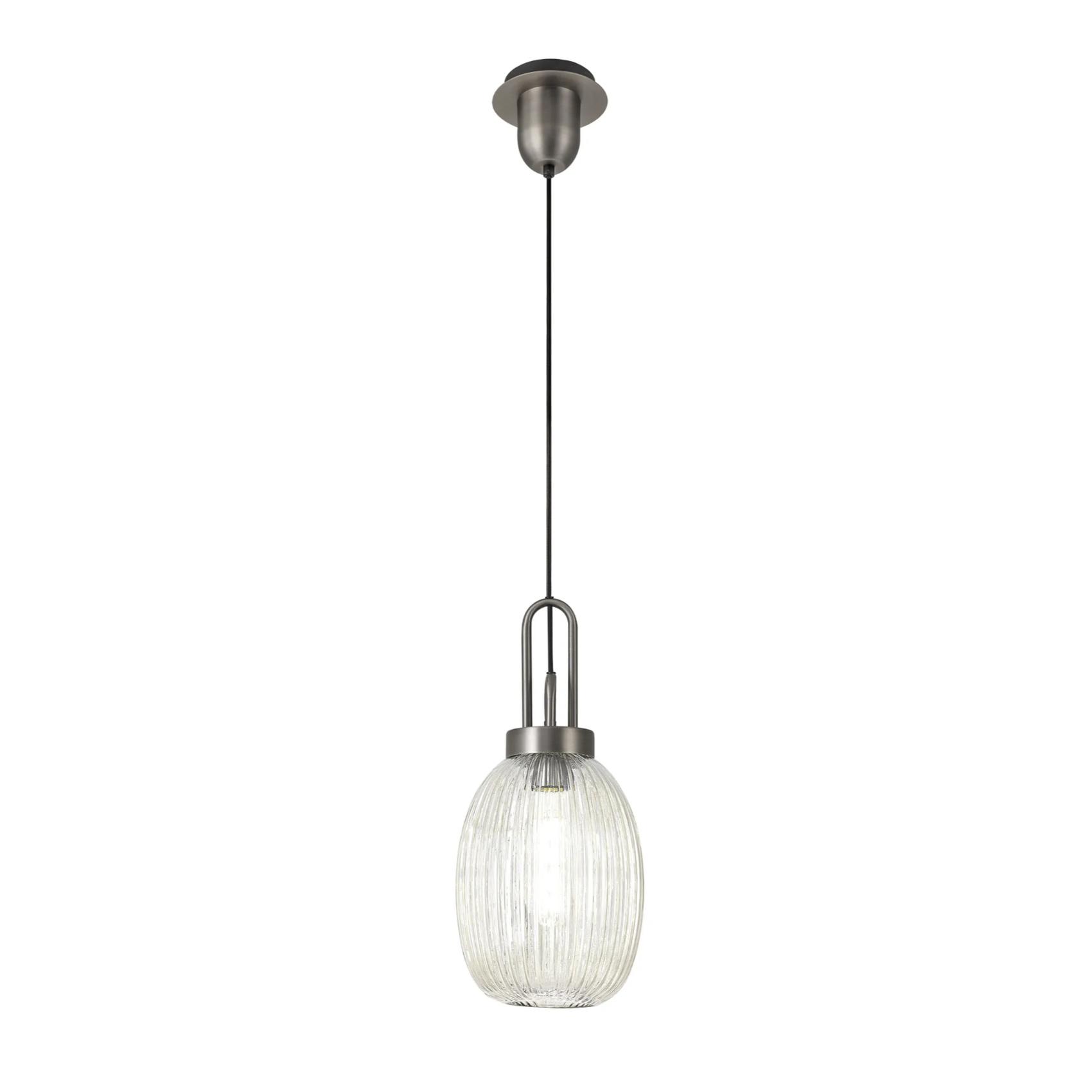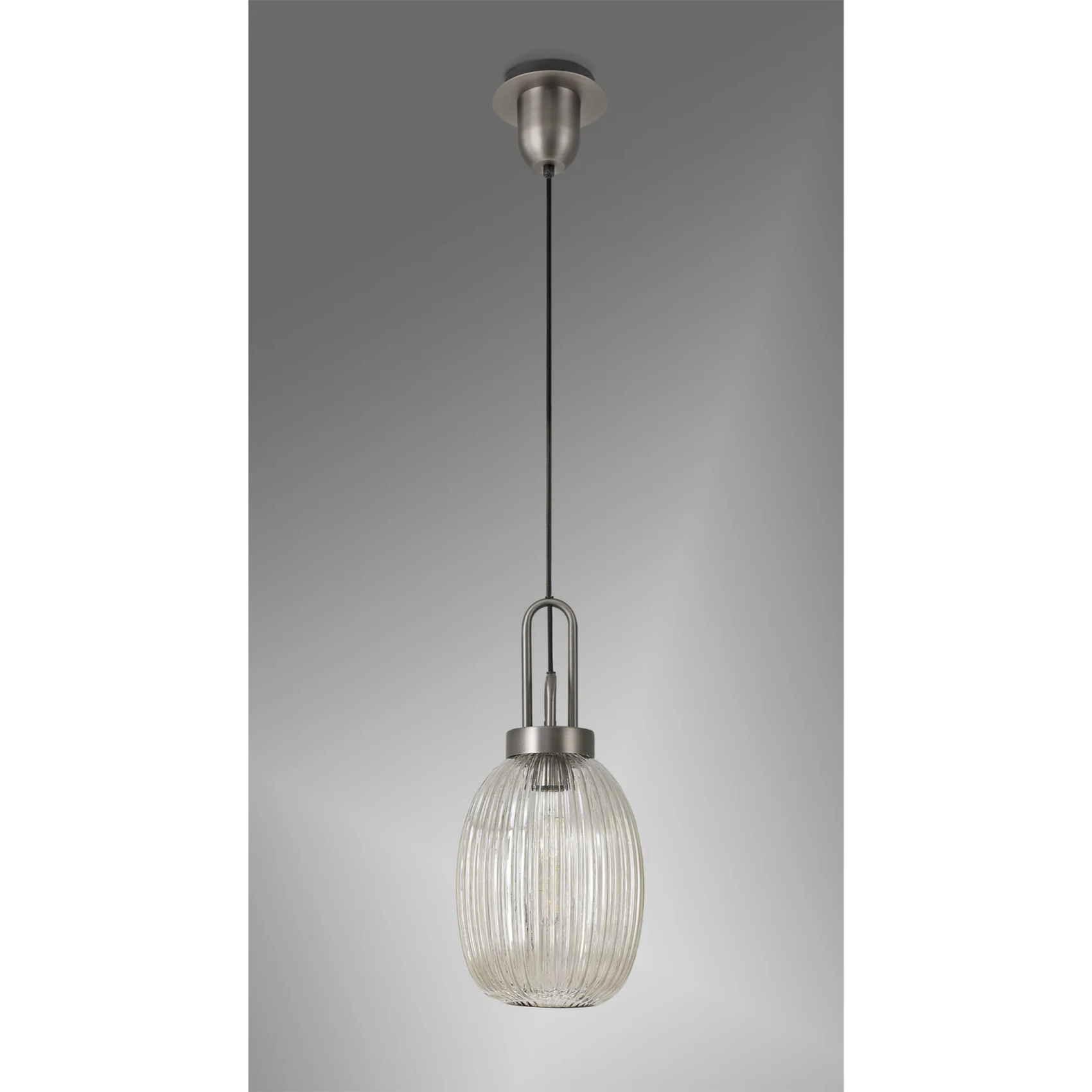 Idolite Camille 1 Light Pendant E27 20cm Almond Ribbed Glass, Champagne Antique Silver/Black | IDOK0850
