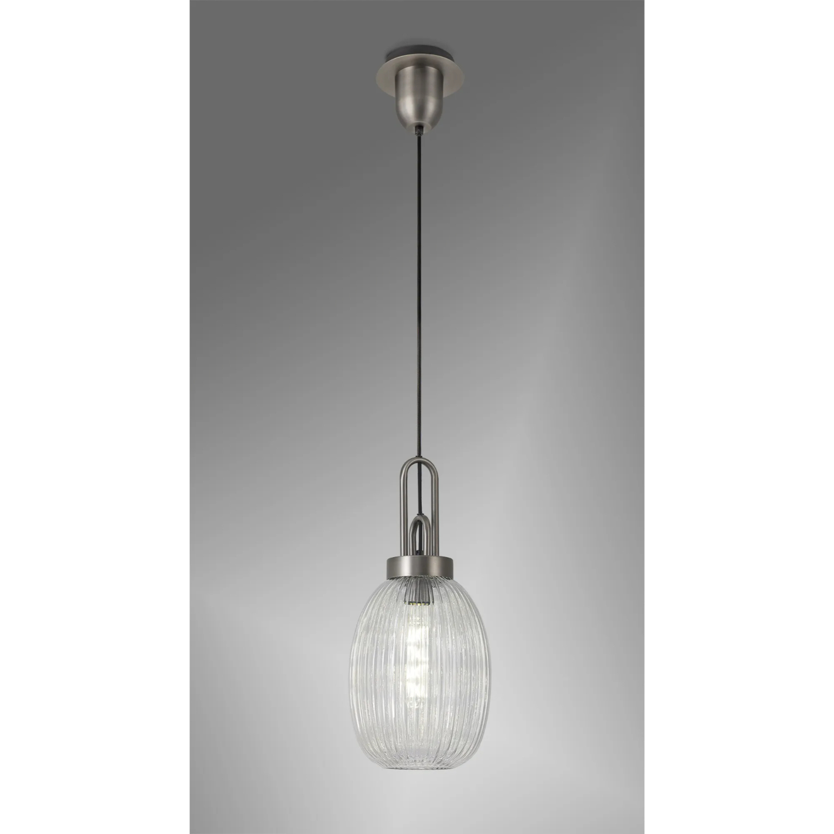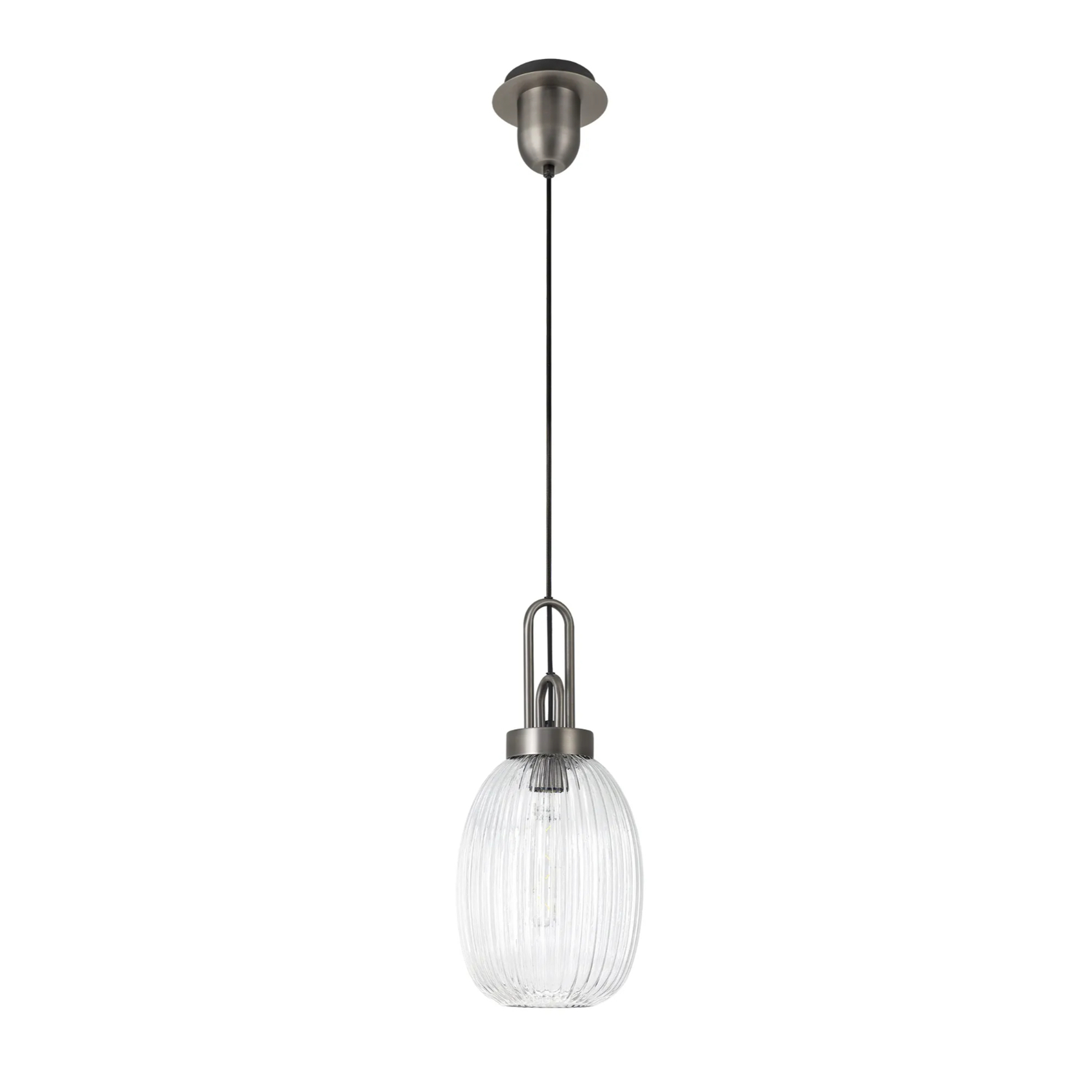 Idolite Camille 1 Light Pendant E27 20cm Almond Ribbed Glass, Clear Antique Silver/Black | IDOK8750