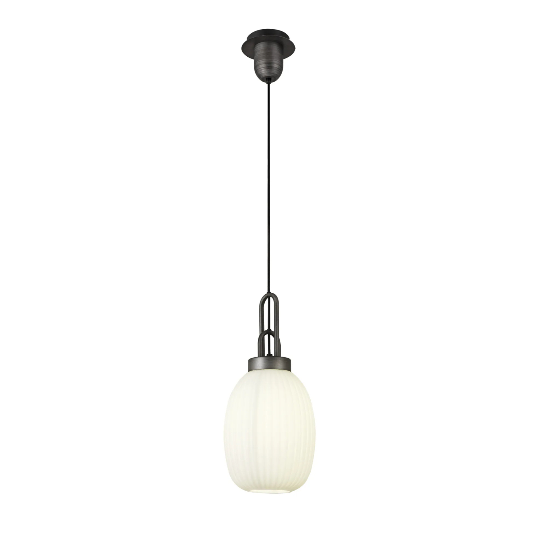 Idolite Camille 1 Light Pendant E27 20cm Almond Ribbed Glass, Opal Black/Aged Pewter | IDOK0750