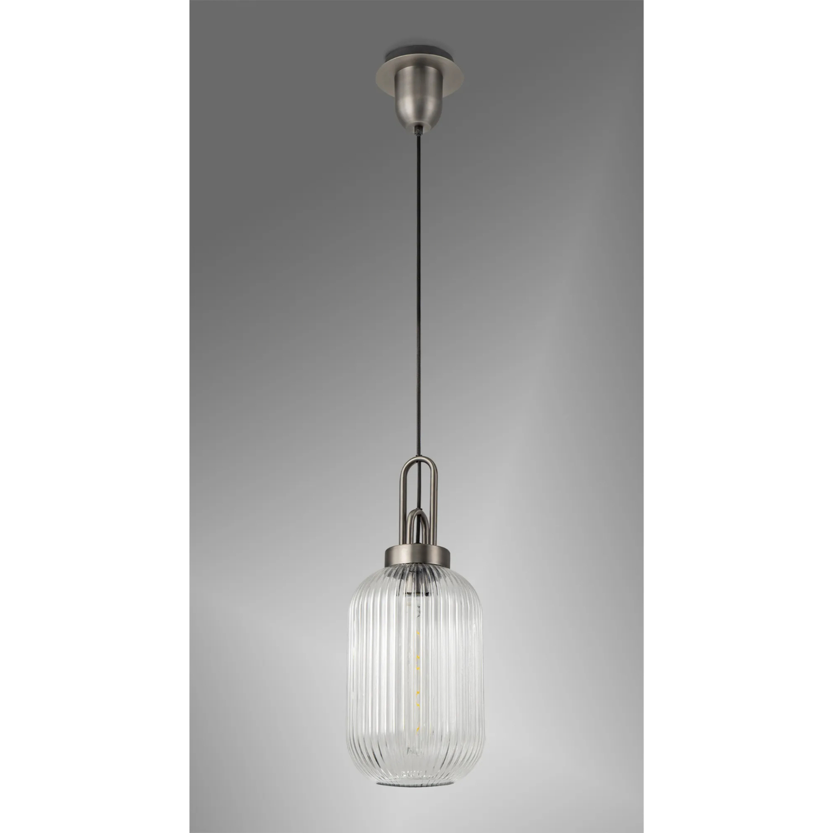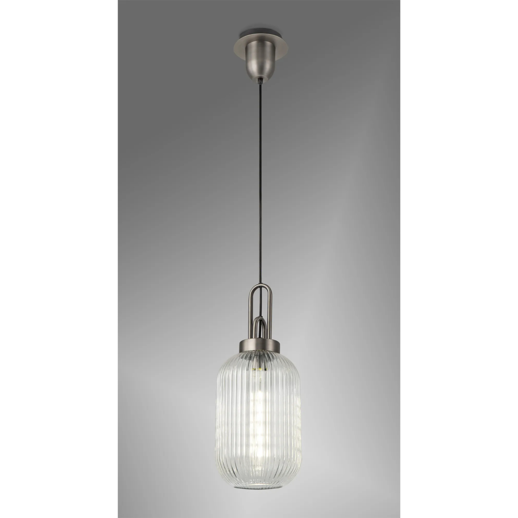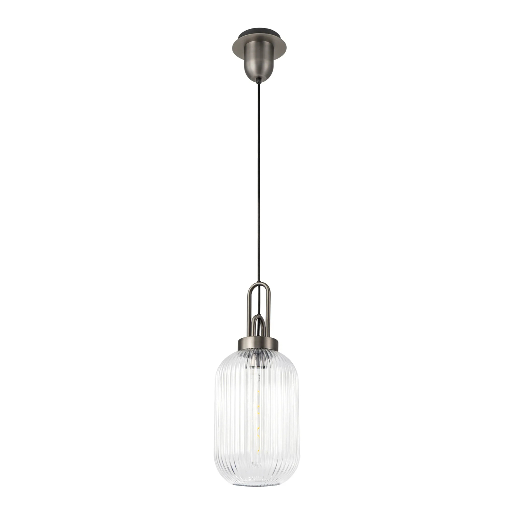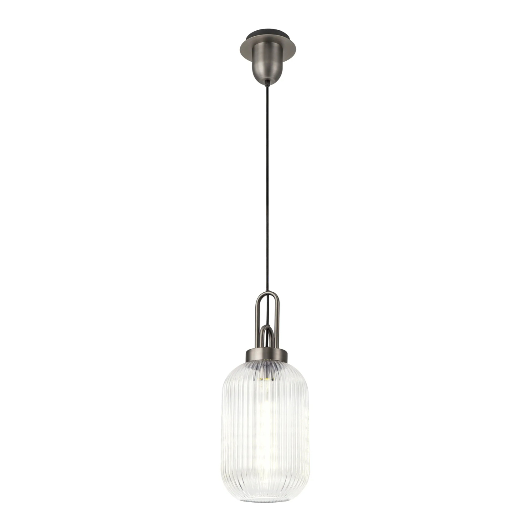 Idolite Camille 1 Light Pendant E27 20cm Tubular Ribbed Glass, Clear Antique Silver/Black | IDOK5750
