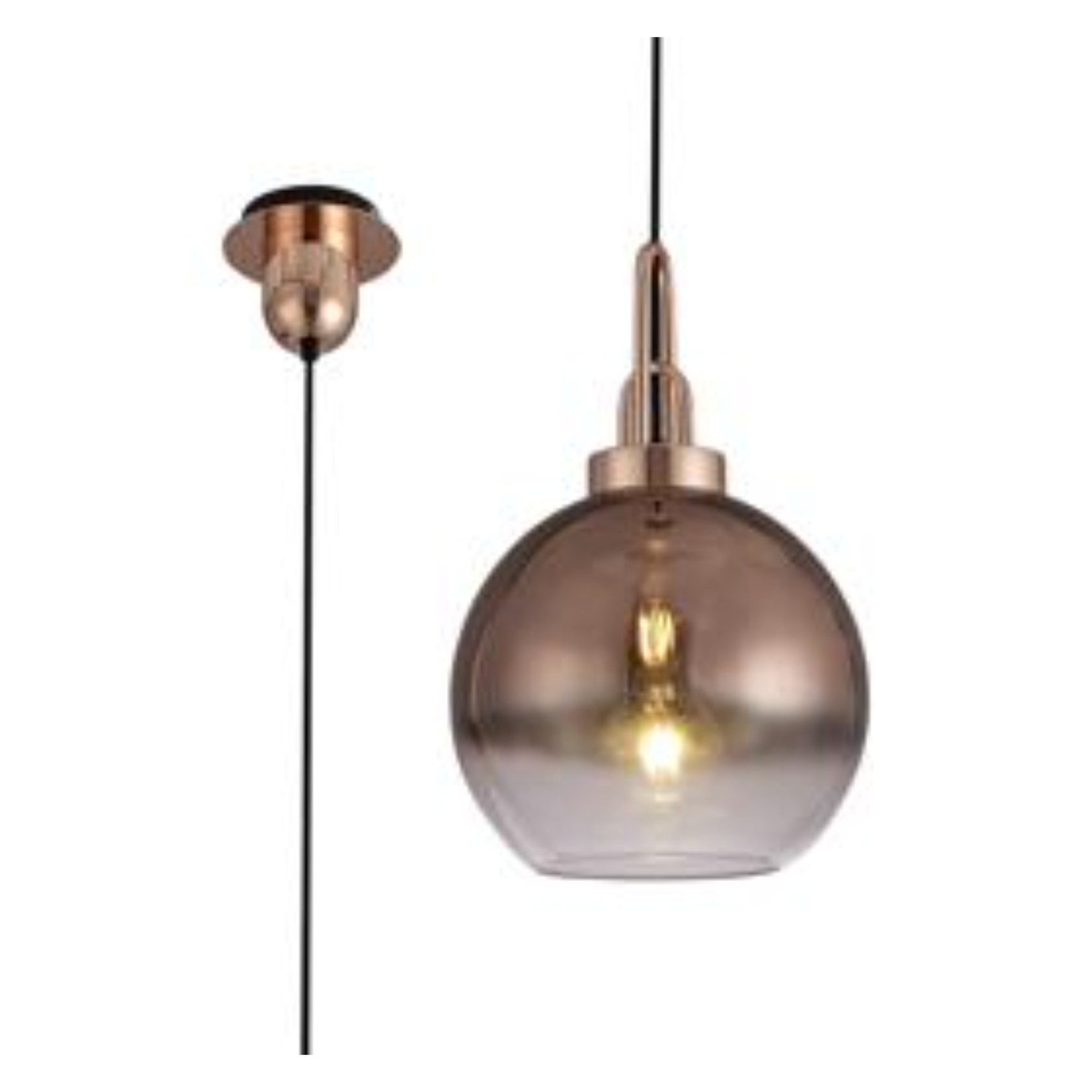 Idolite Camille 1 Light Pendant E27 With 30cm Globe Glass, Copper/Matt Black/Clear | IDOK2000