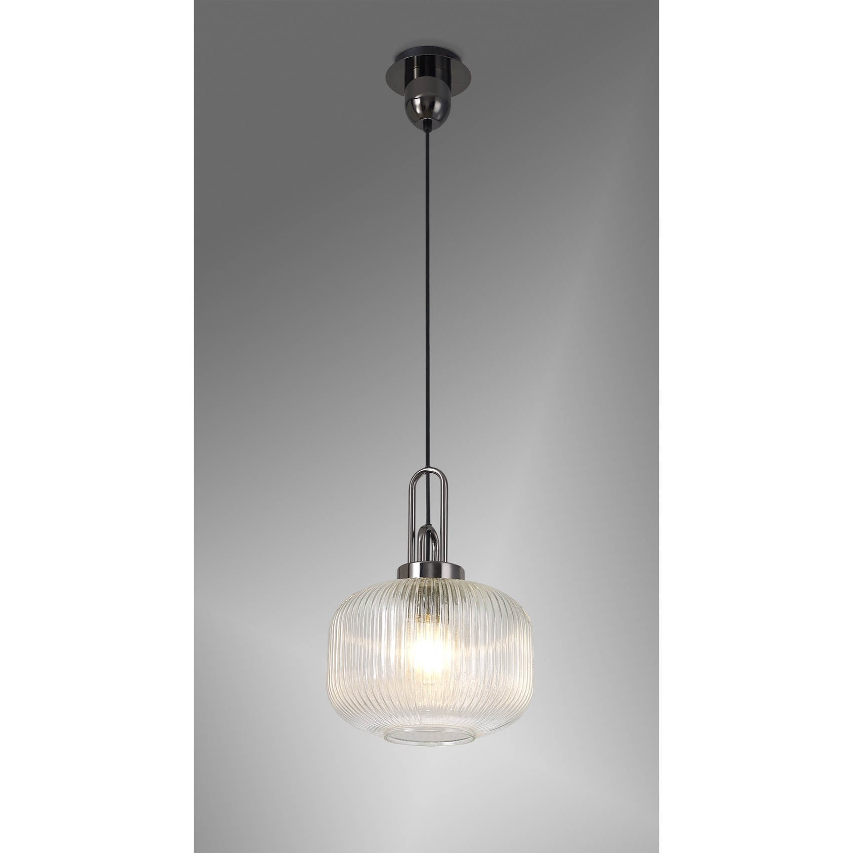 Idolite Camille 1 Light Pendant E27 With 30cm Pumpkin Shaped Ribbed Glass, Clear Black Chrome/Matt Black | IDOK0550