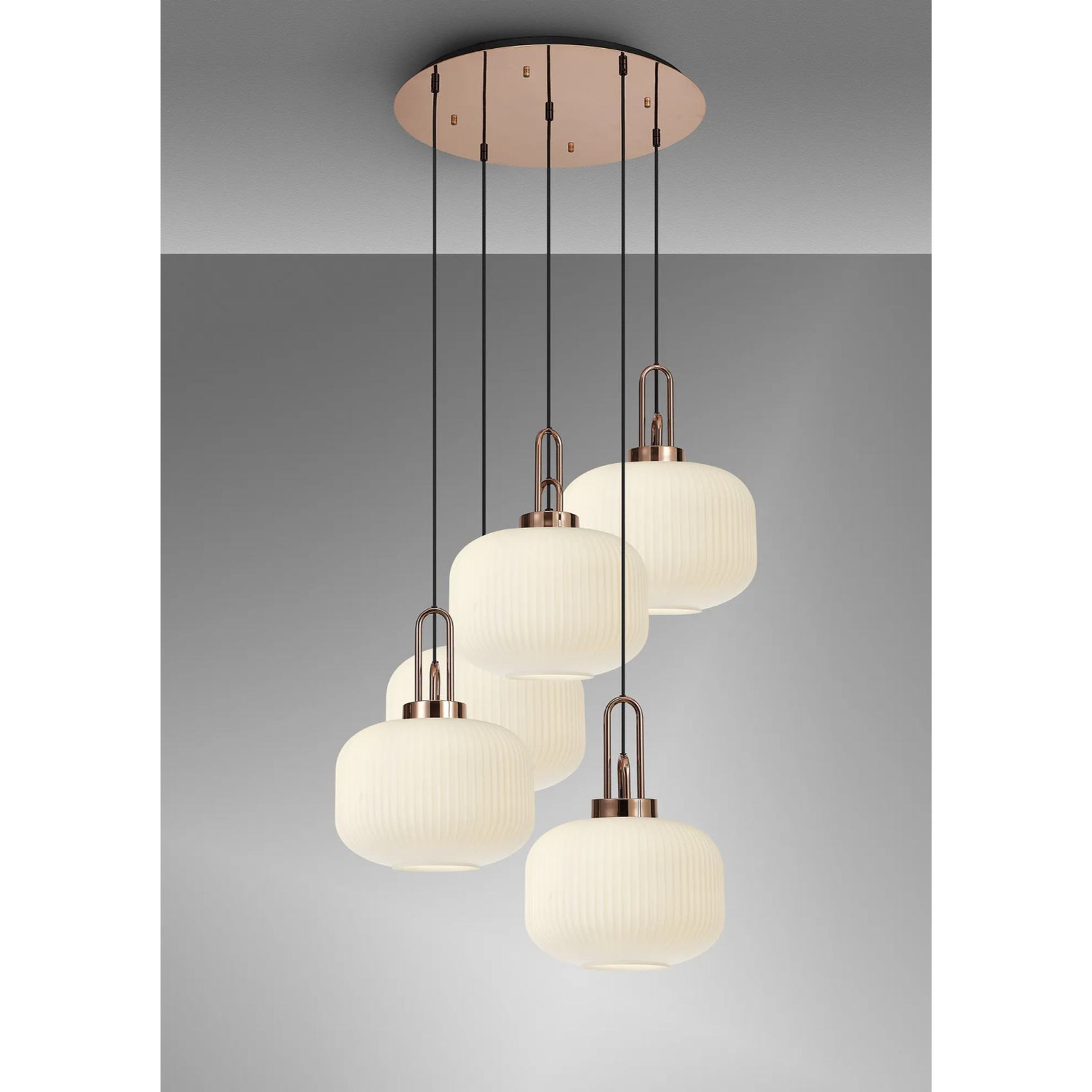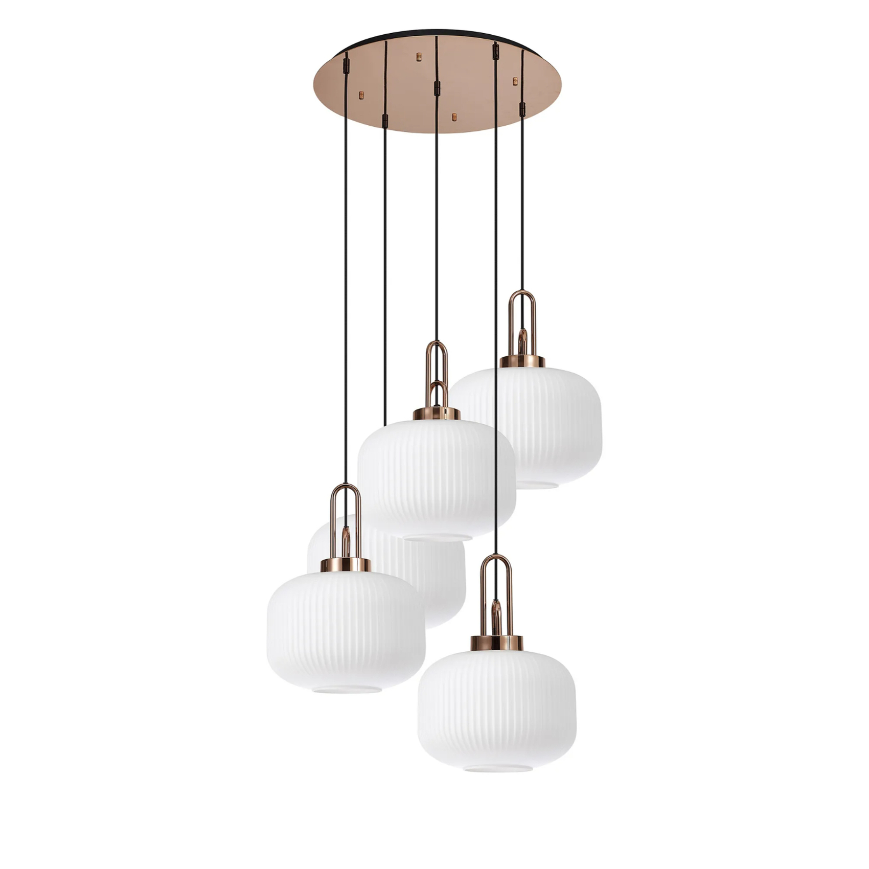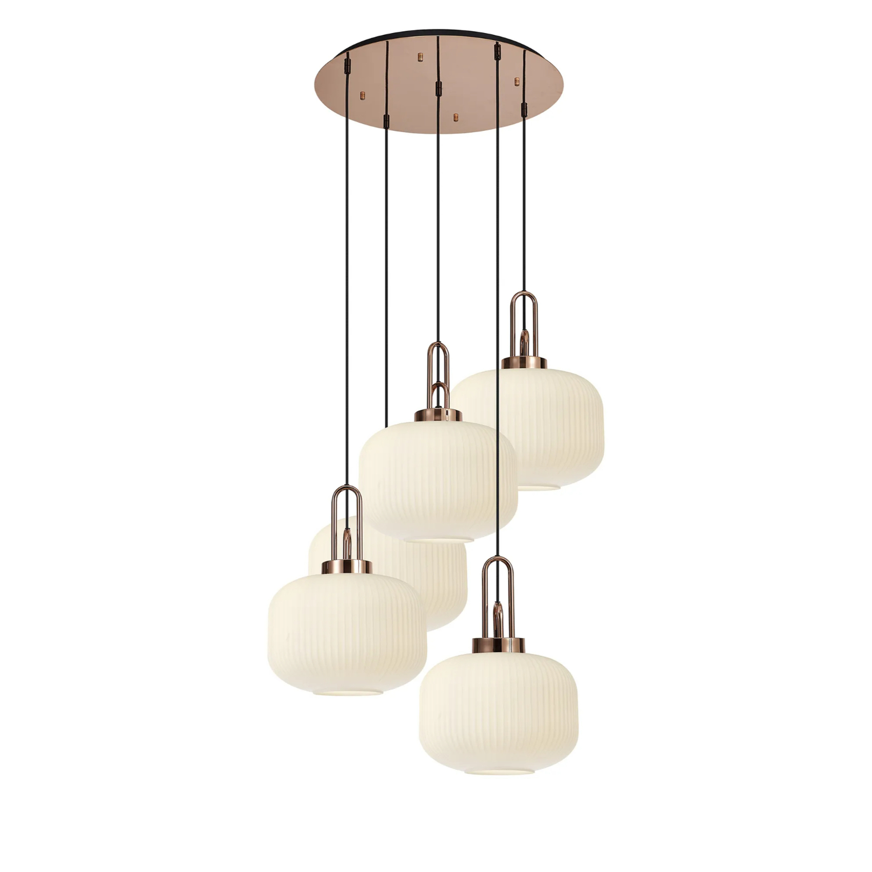 Idolite Camille 2.5m Round Pendant, 5 x E27, Copper/Matt Black With 30cm Pumpkin Shaped Ribbed Opal Glass | IDOK6660