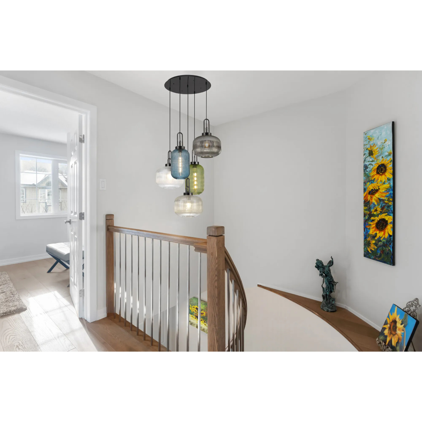 Idolite Camille 2.5m Round Pendant 5 x E27 With Various Glasses, Black Chrome | IDOK9551