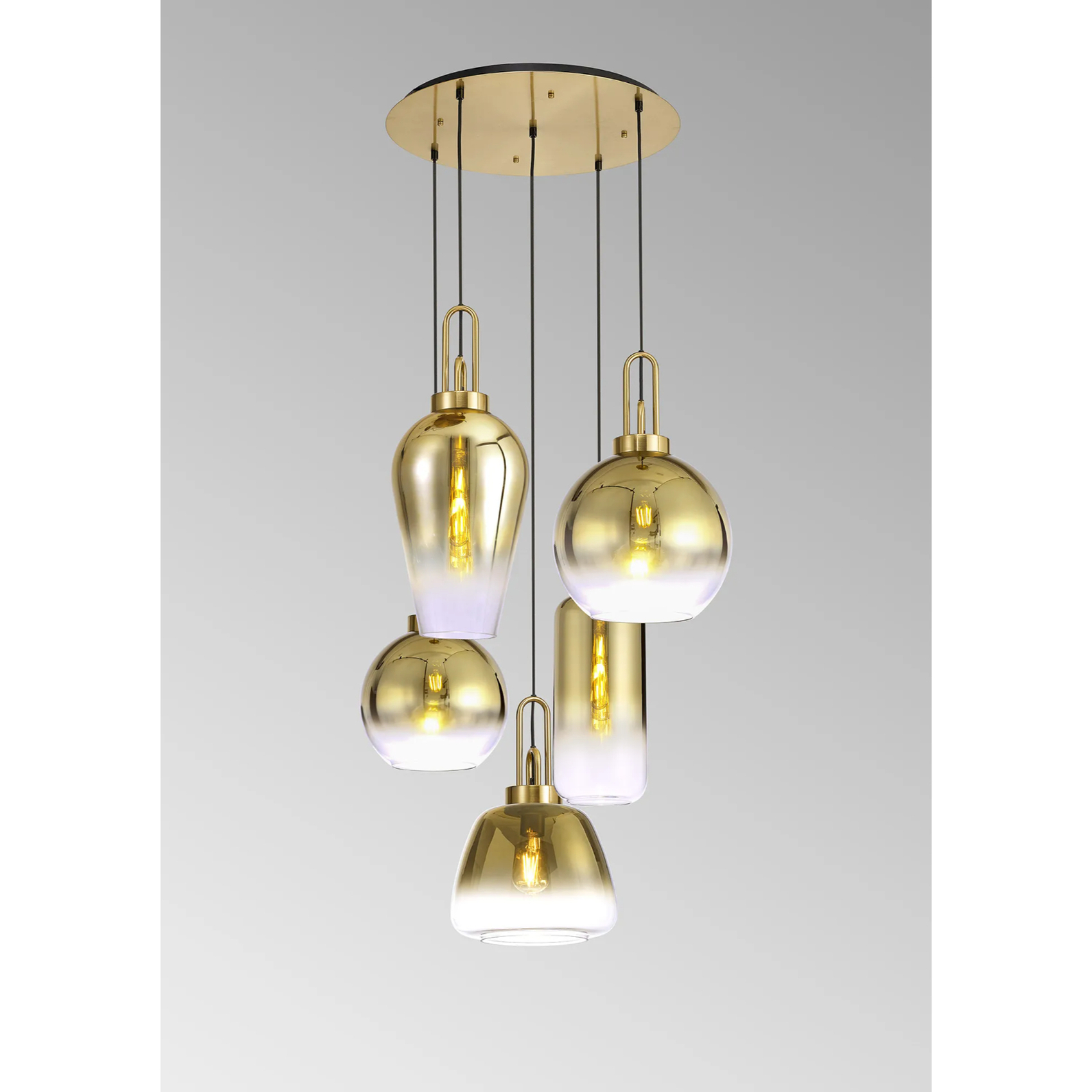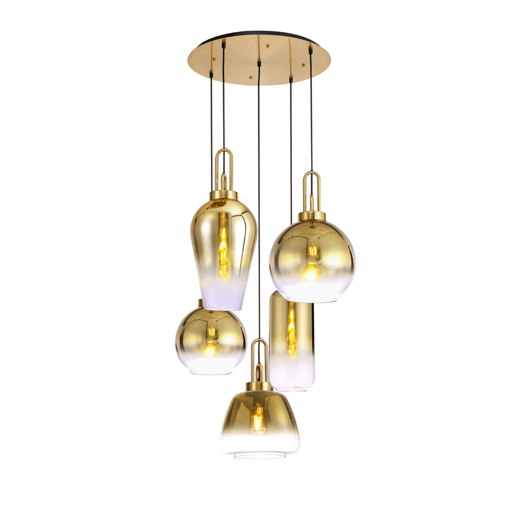 Idolite Camille 2.5m Round Pendant 5 x E27 With Various Glasses, Brass Gold/Matt Black | IDOK8551