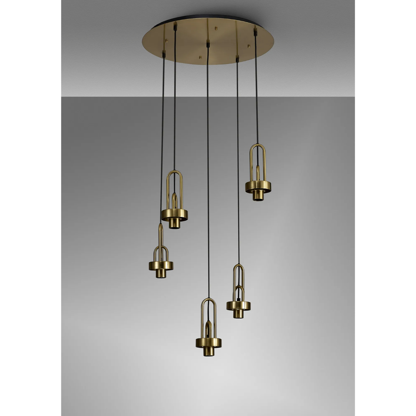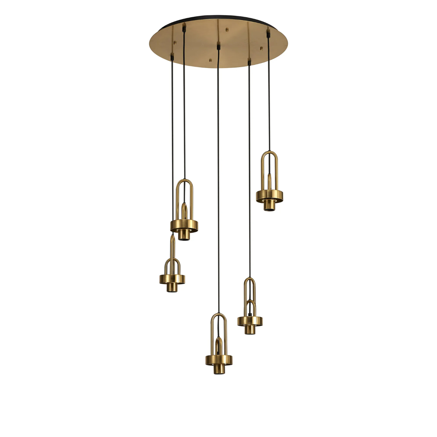 Idolite Camille 2.5m Round Suspension Kit, 5 x E27, Brass Gold/Matt Black | IDO4978