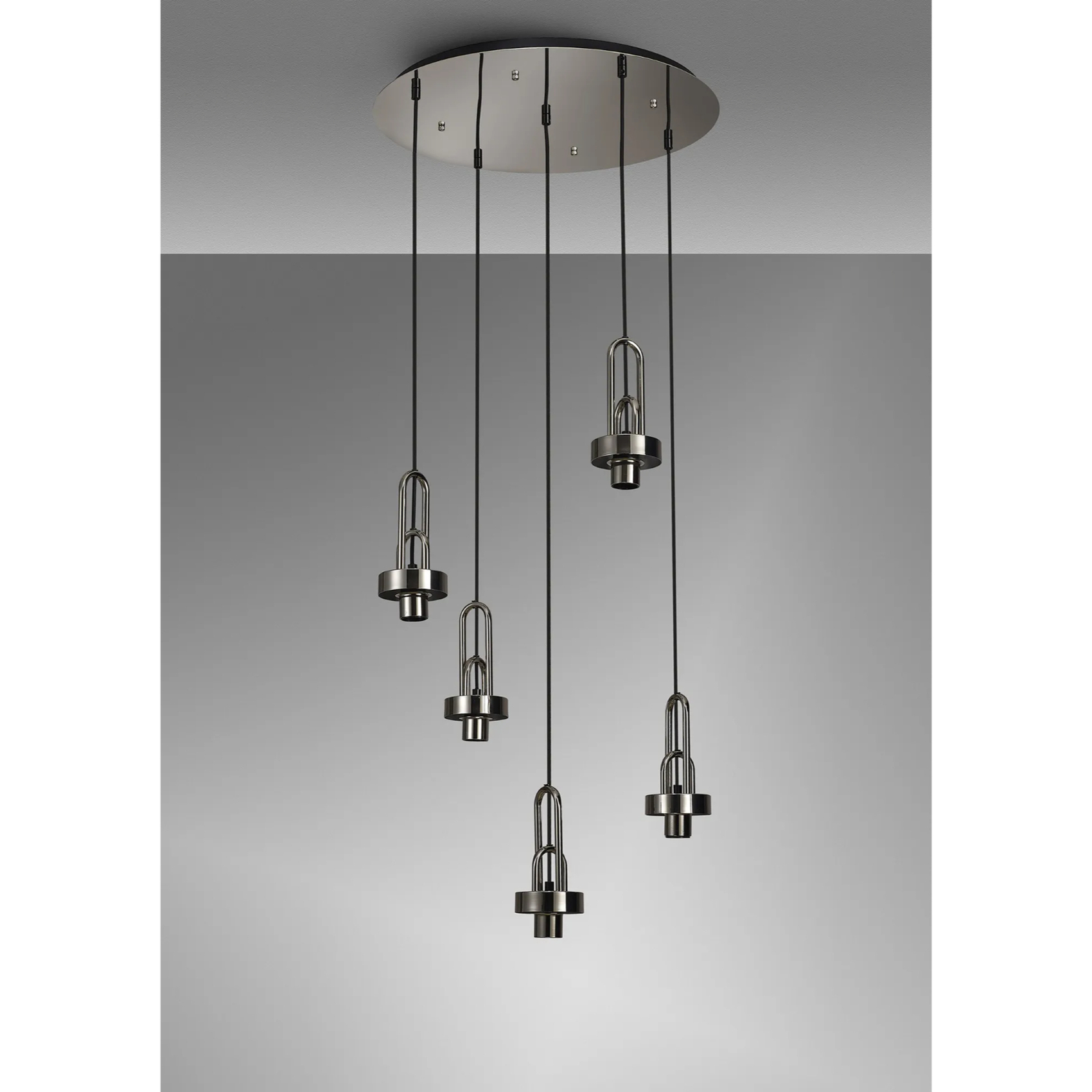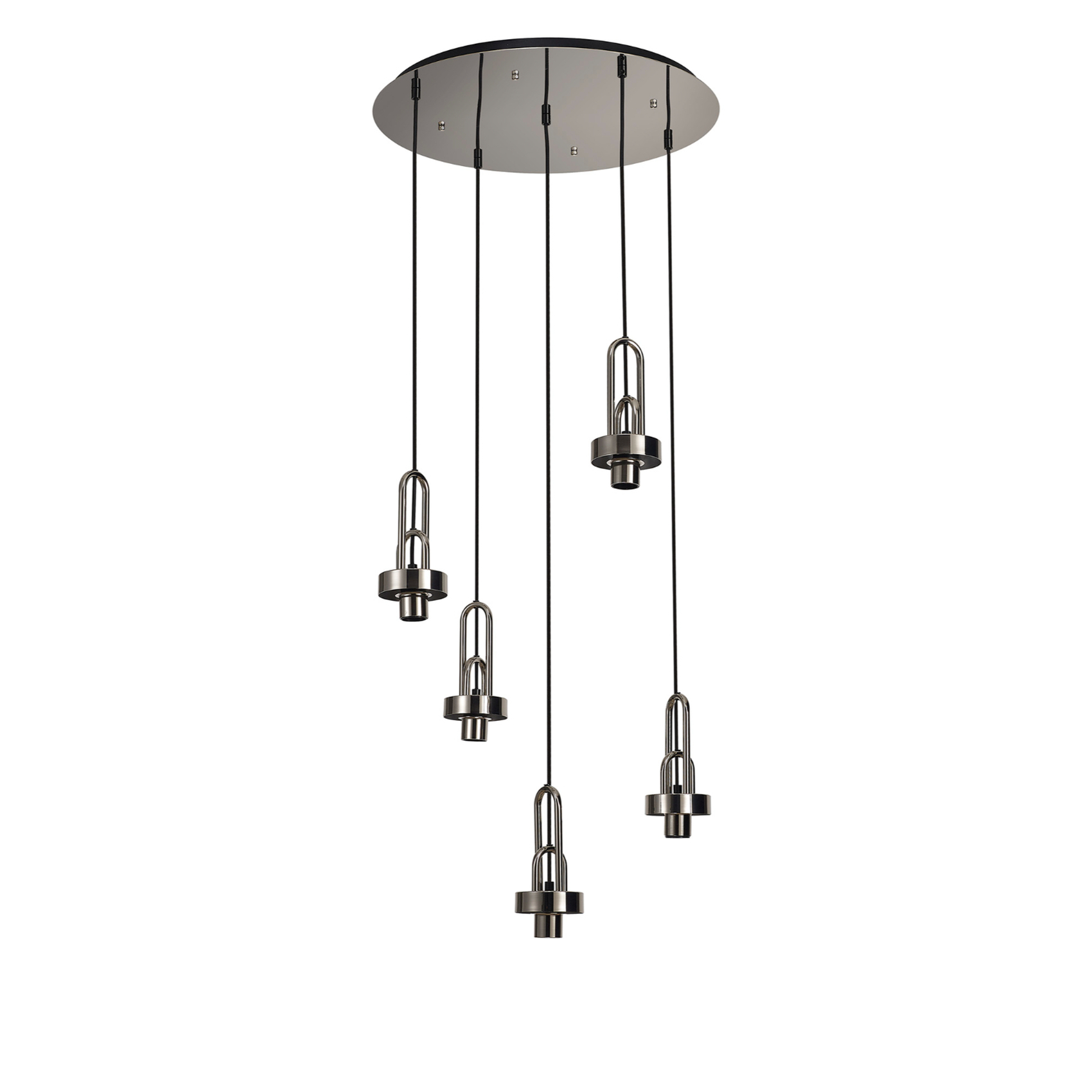 Idolite Camille 2.5m Round Suspension Kit, 5 x E27, Polished Nickel/Matt Black | IDO2978
