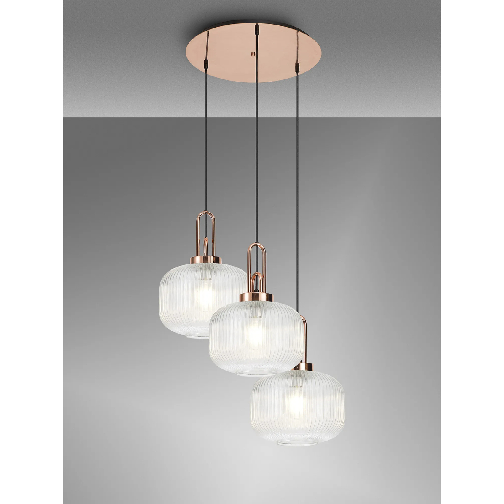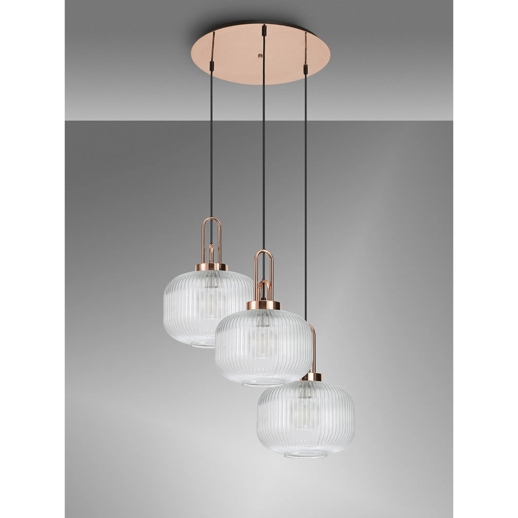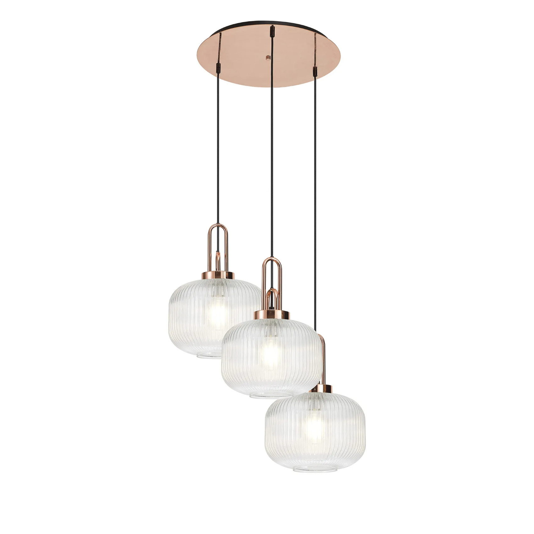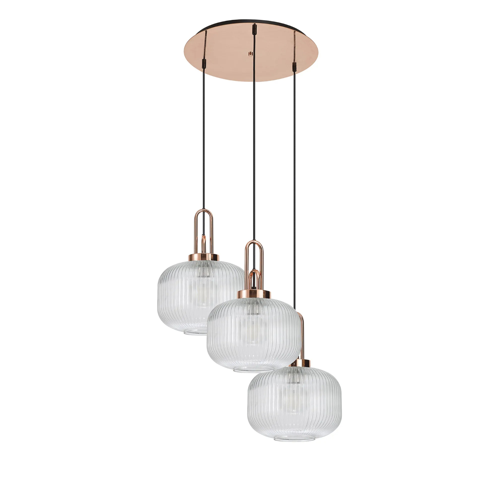 Idolite Camille 2m Round Pendant, 3 x E27, Copper/Matt Black With 30cm Pumpkin Shaped Ribbed Clear Glass | IDOK6860