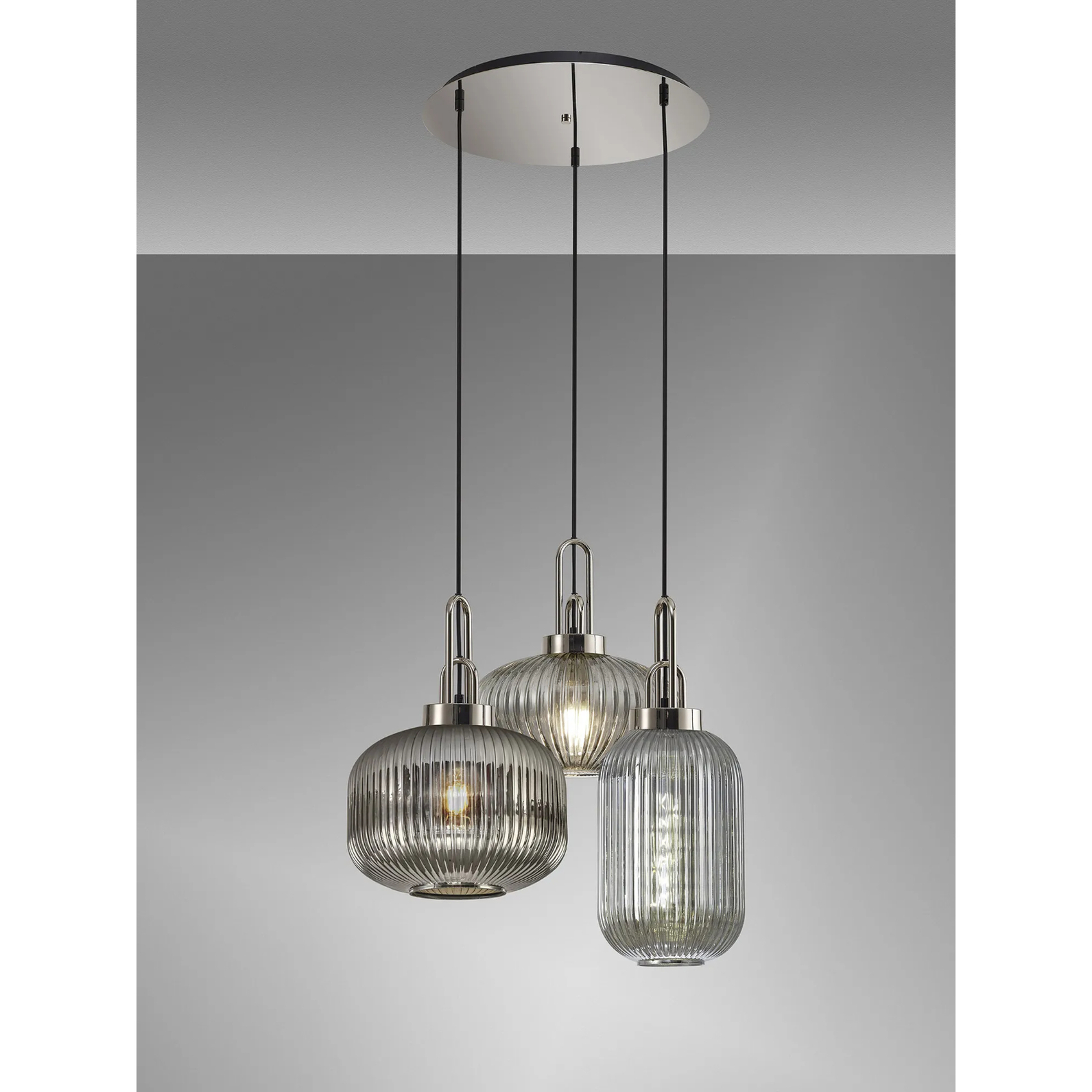 Idolite Camille 2m Round Pendant 3 x E27 With Various Glasses, Polished Nickel/Smoked/Matt Black | IDOK3551