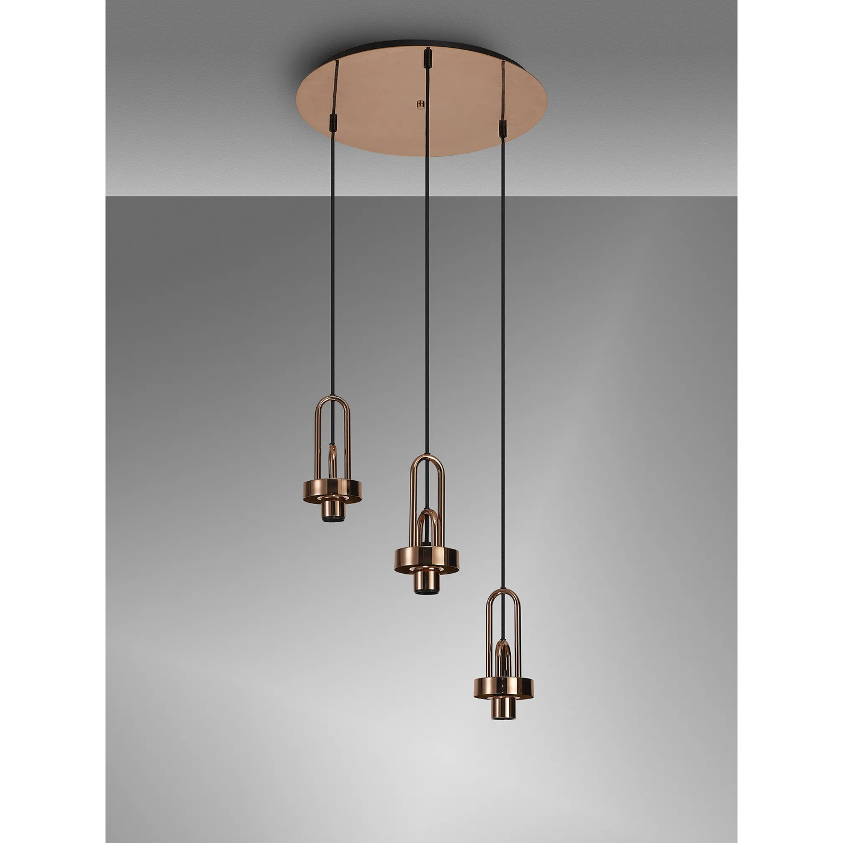 Idolite Camille 2m Round Suspension Kit, 3 x E27, Copper/Matt Black | IDO8878