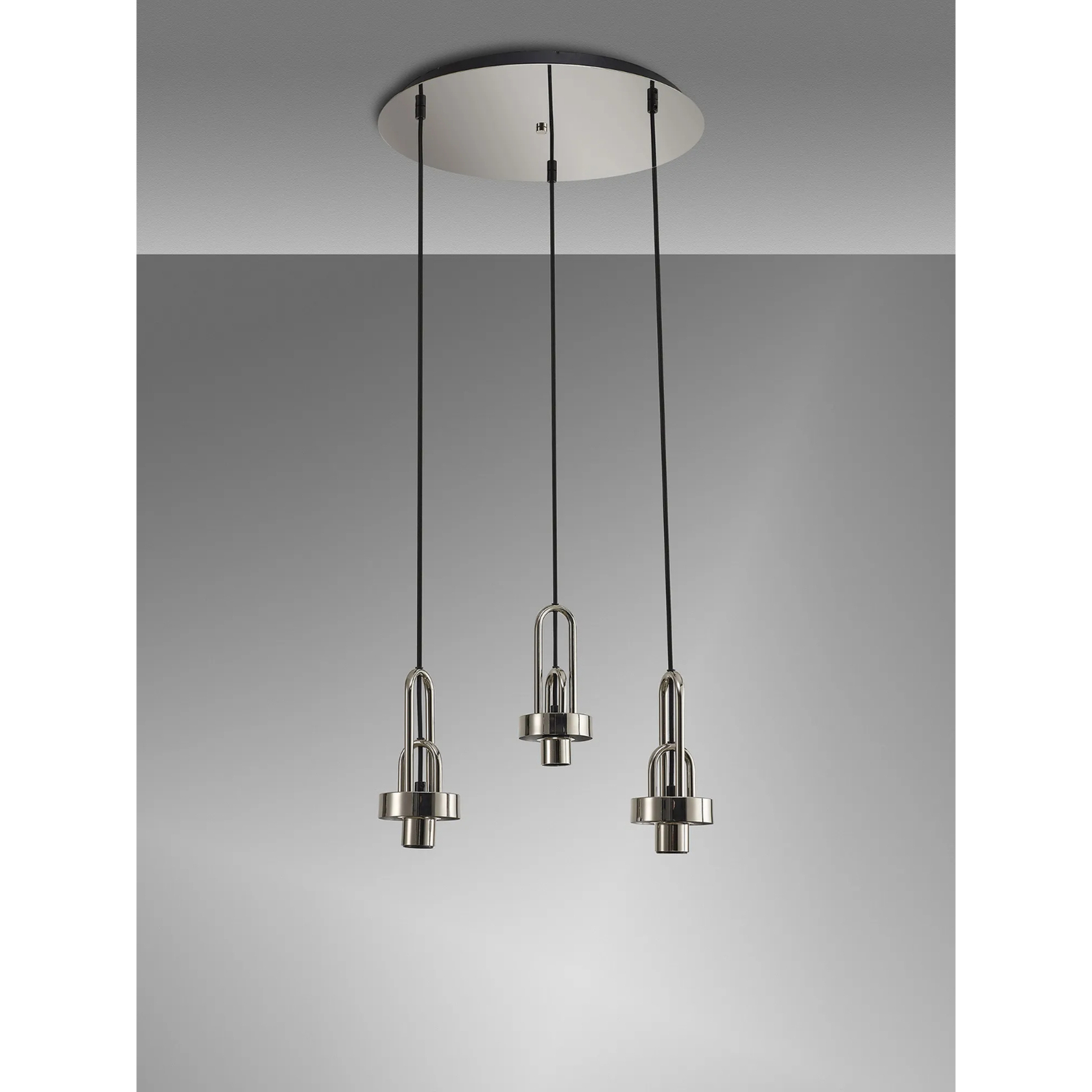 Idolite Camille 2m Round Suspension Kit, 3 x E27, Polished Nickel/Matt Black | IDO5878