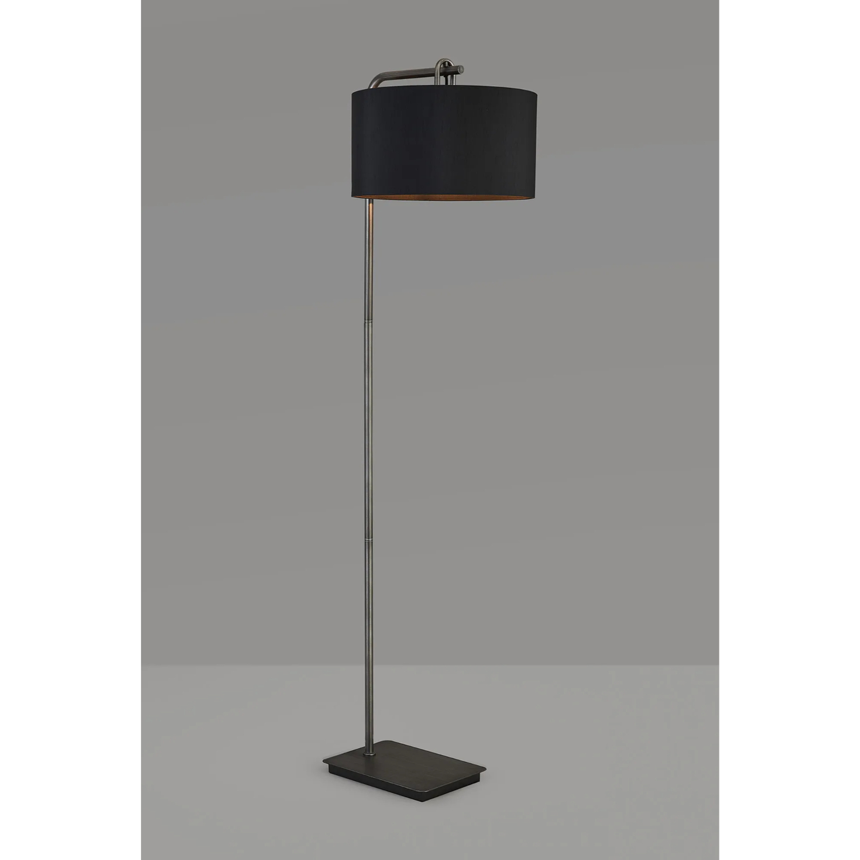 Idolite Camille Floor Lamp, 1 Light E27, Aged Pewter/Matt Black/Black 40x22cm Faux Silk Shade | IDOK9283