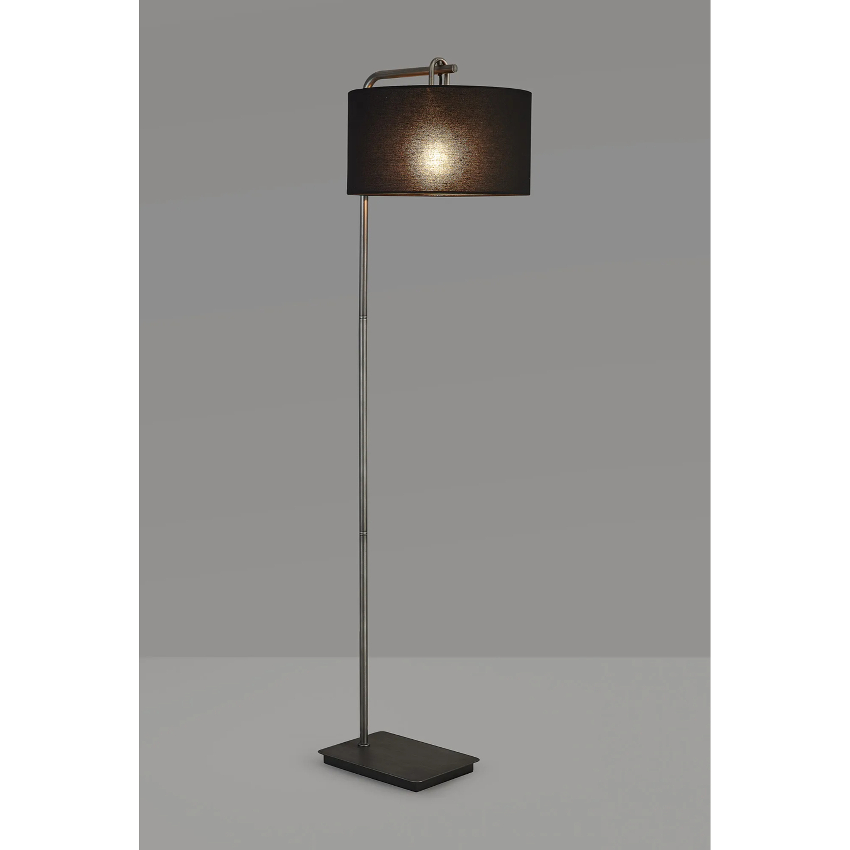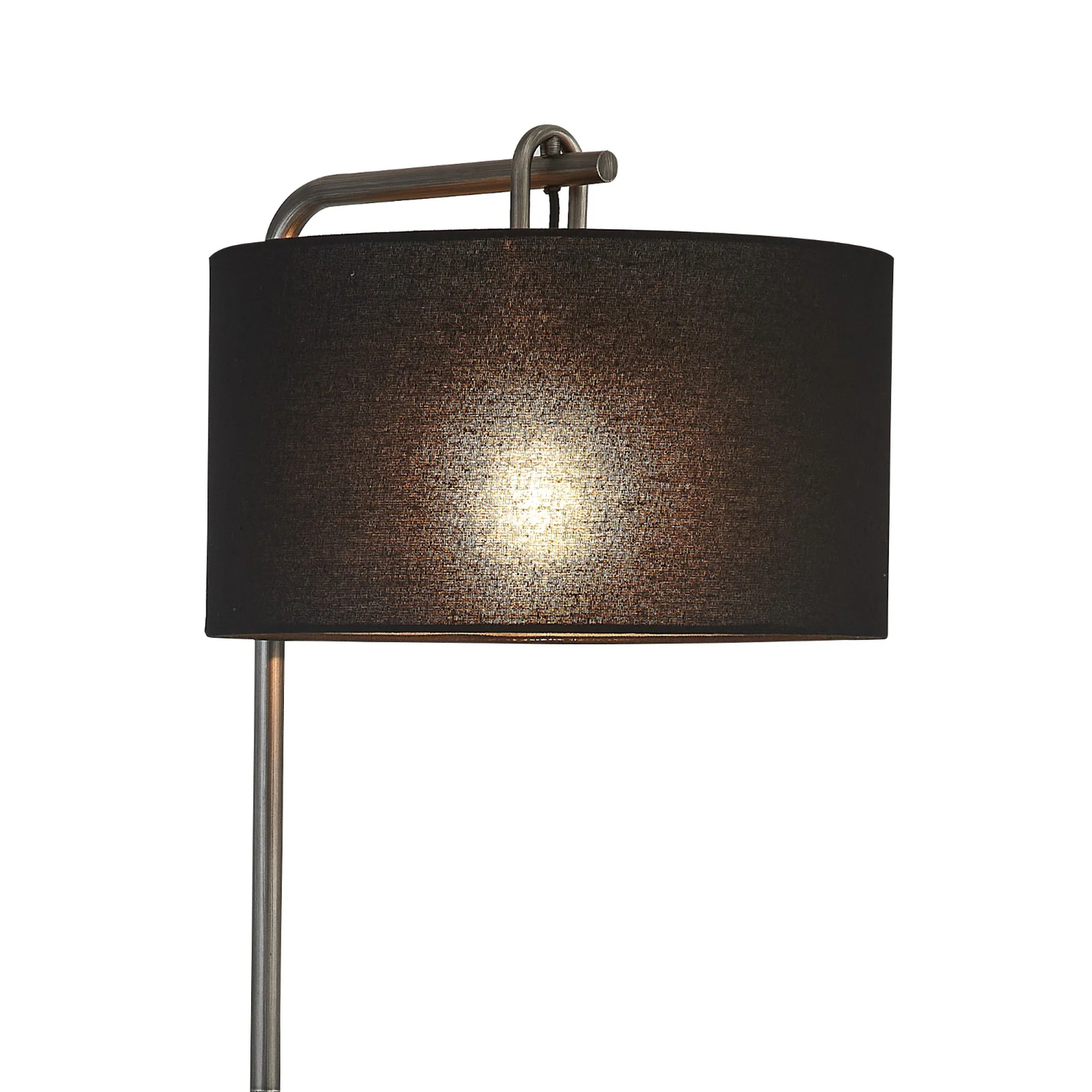 Idolite Camille Floor Lamp, 1 Light E27, Aged Pewter/Matt Black/Black 40x22cm Linen Shade | IDOK8283