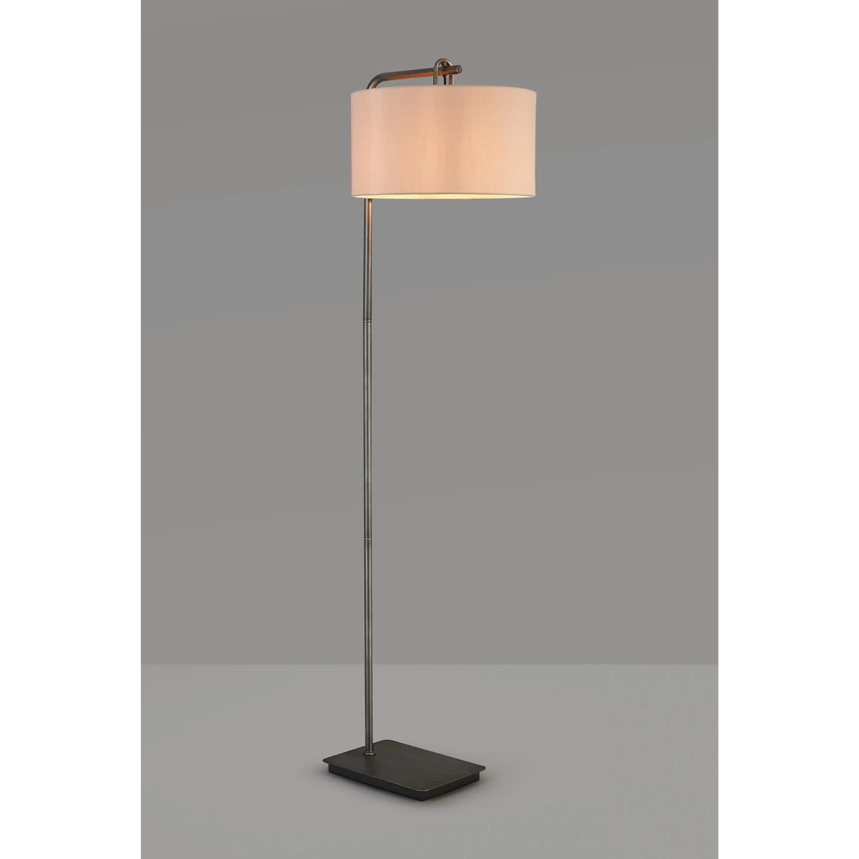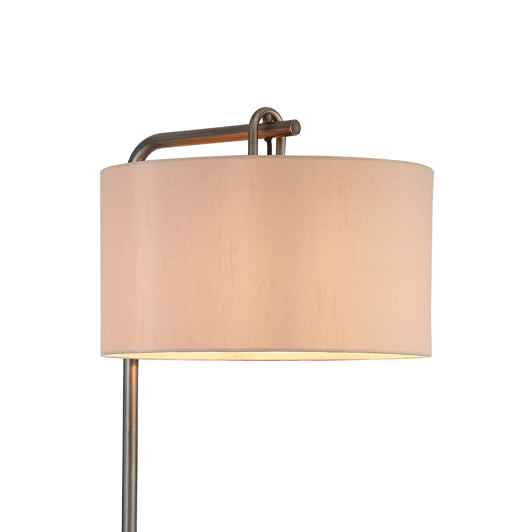 Idolite Camille Floor Lamp, 1 Light E27, Aged Pewter/Matt Black/Pebble 40x22cm Faux Silk Shade | IDOK3383