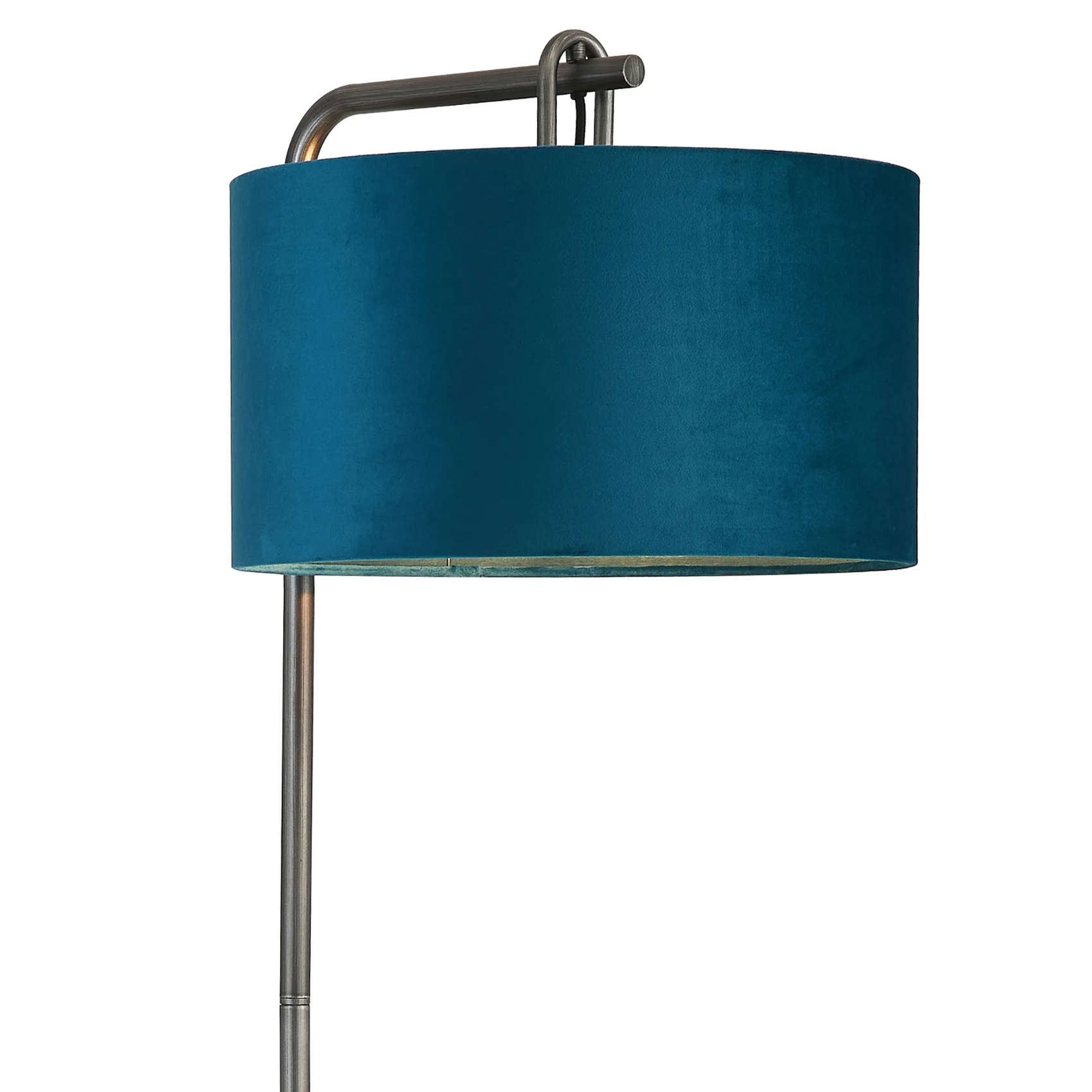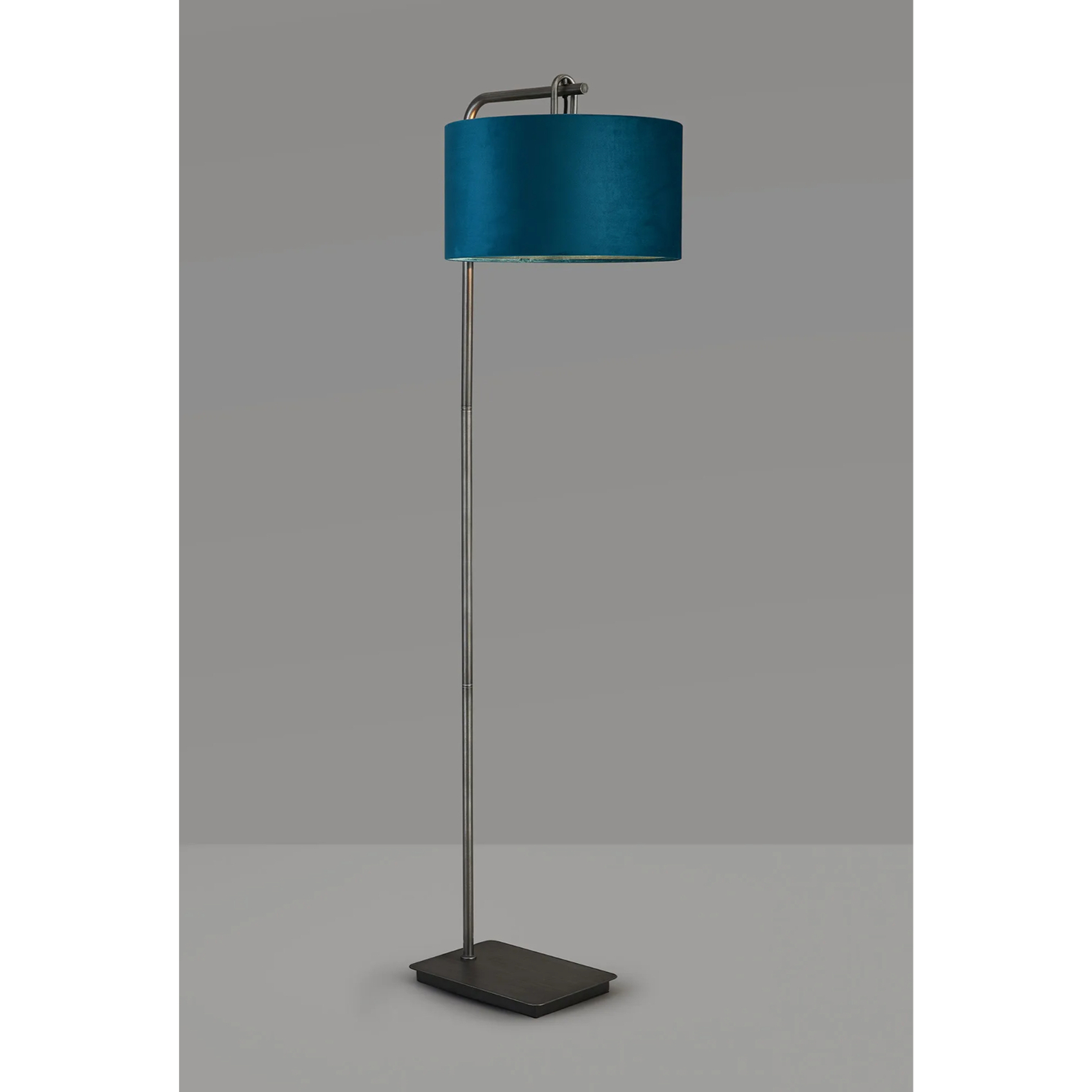 Idolite Camille Floor Lamp, 1 Light E27, Aged Pewter/Matt Black/Teal 40x22cm Velvet Shade | IDOK4383