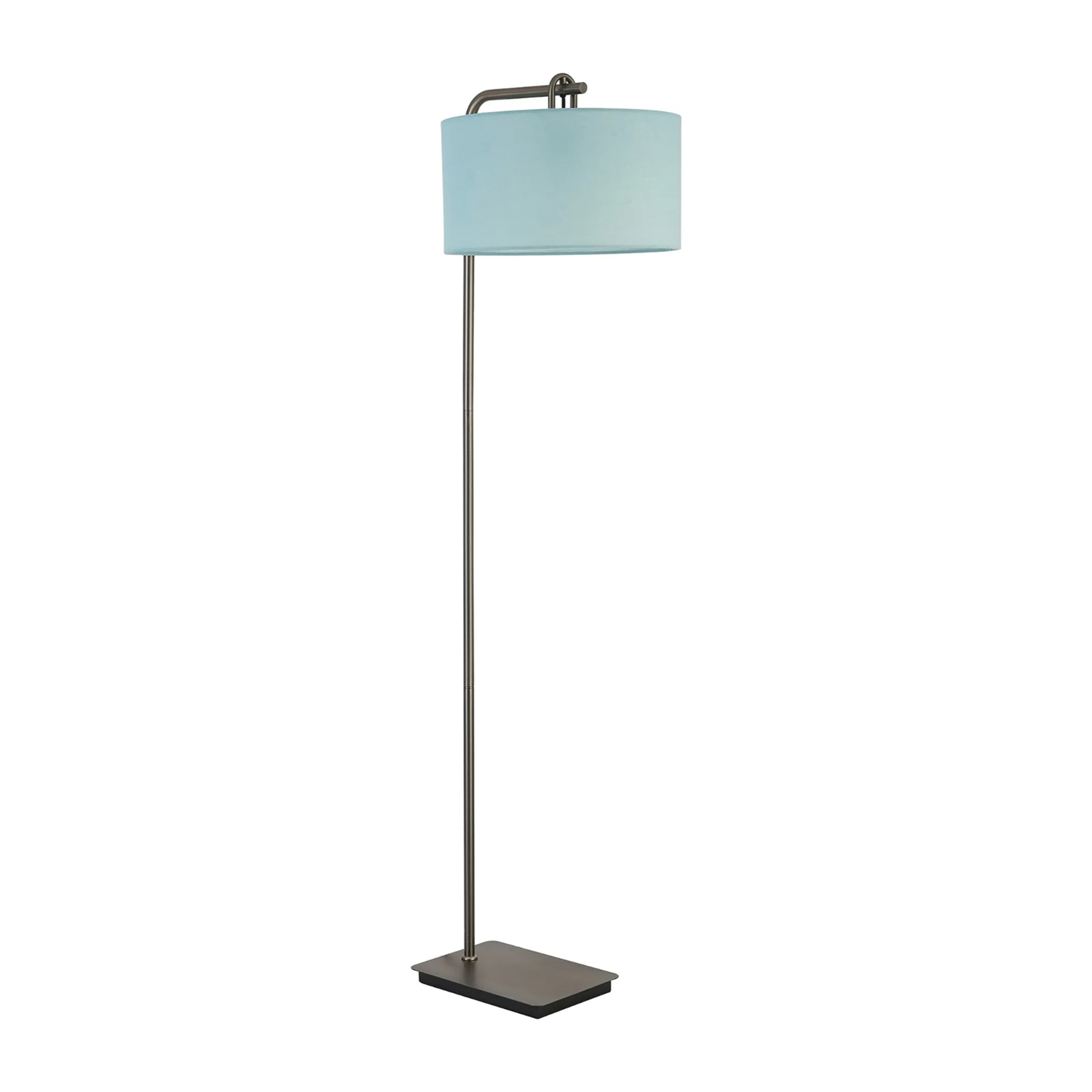 Idolite Camille Floor Lamp, 1 Light E27, Antique SIlver/Matt Black/Duck Egg 40x22cm Linen Shade | IDOK5383