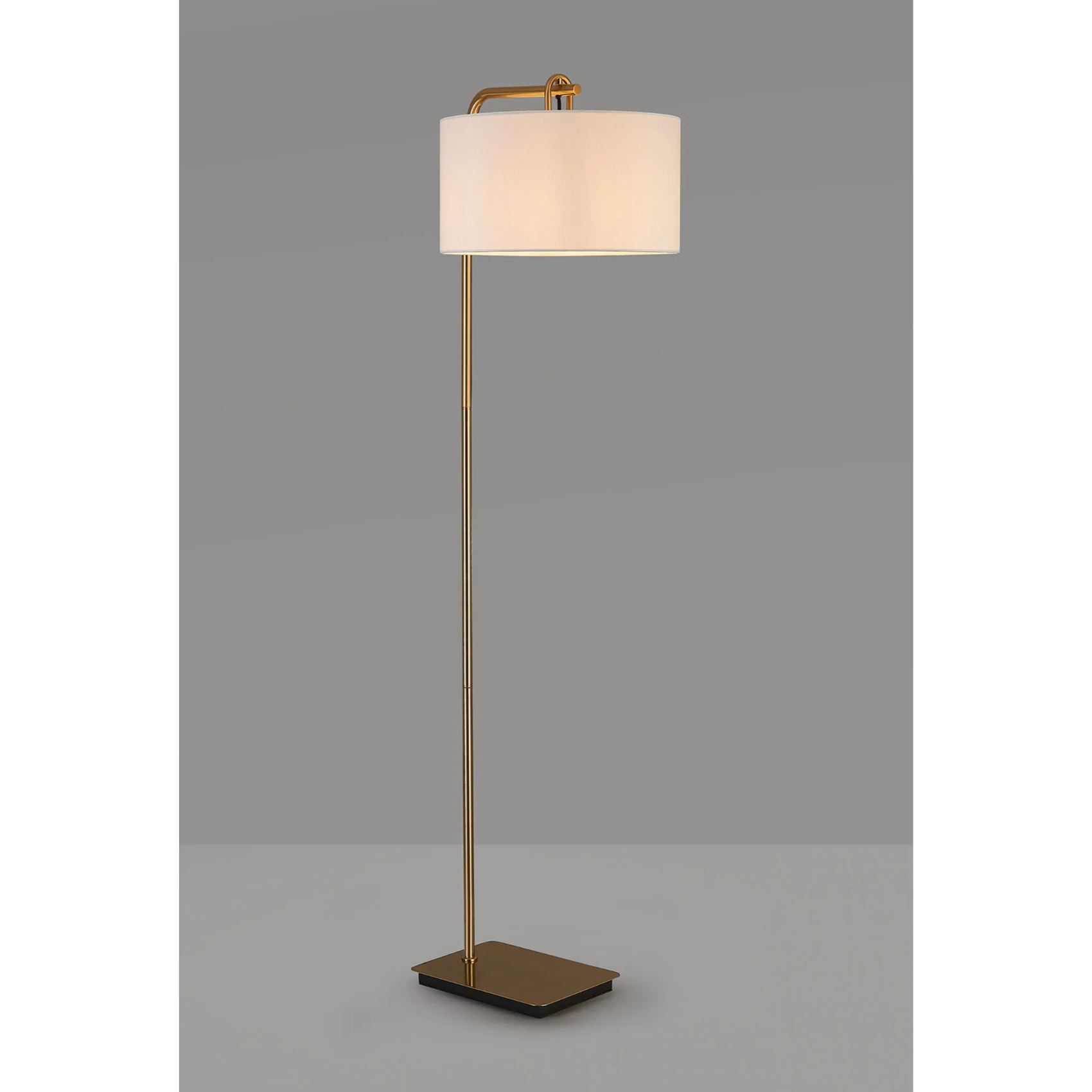 Idolite Camille Floor Lamp, 1 Light E27, Brass Gold/Matt Black/Ivory 40x22cm Faux Silk Shade | IDOK3483