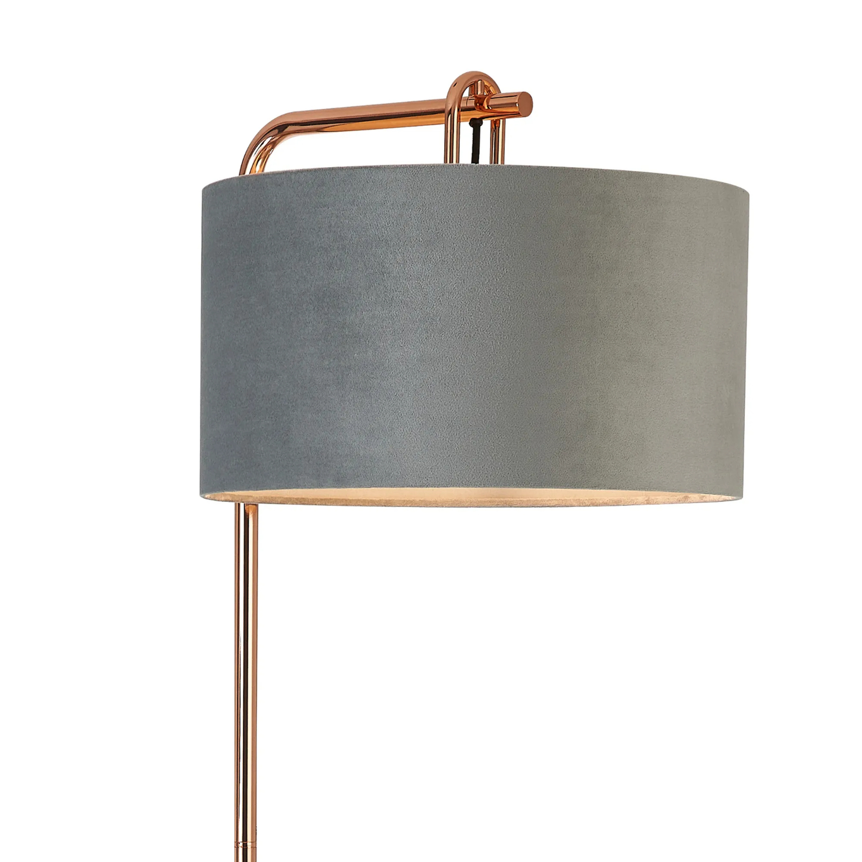 Idolite Camille Floor Lamp, 1 Light E27, Copper/Matt Black/Light Grey 40x22cm Velvet Shade | IDOK7483