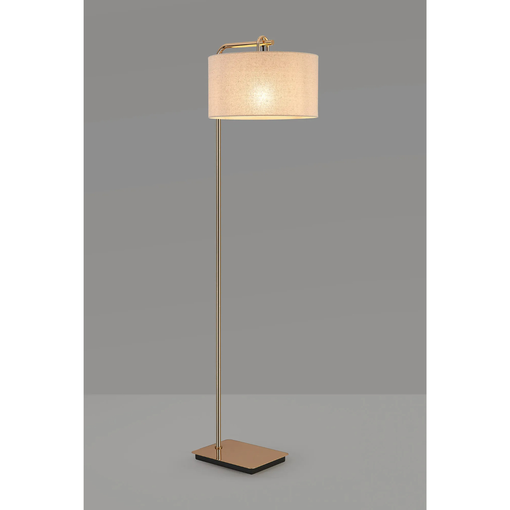 Idolite Camille Floor Lamp, 1 Light E27, French Gold/Matt Black/Sandstone 40x22cm Linen Shade | IDOK2583