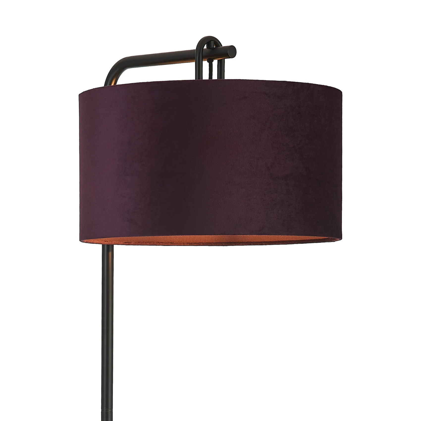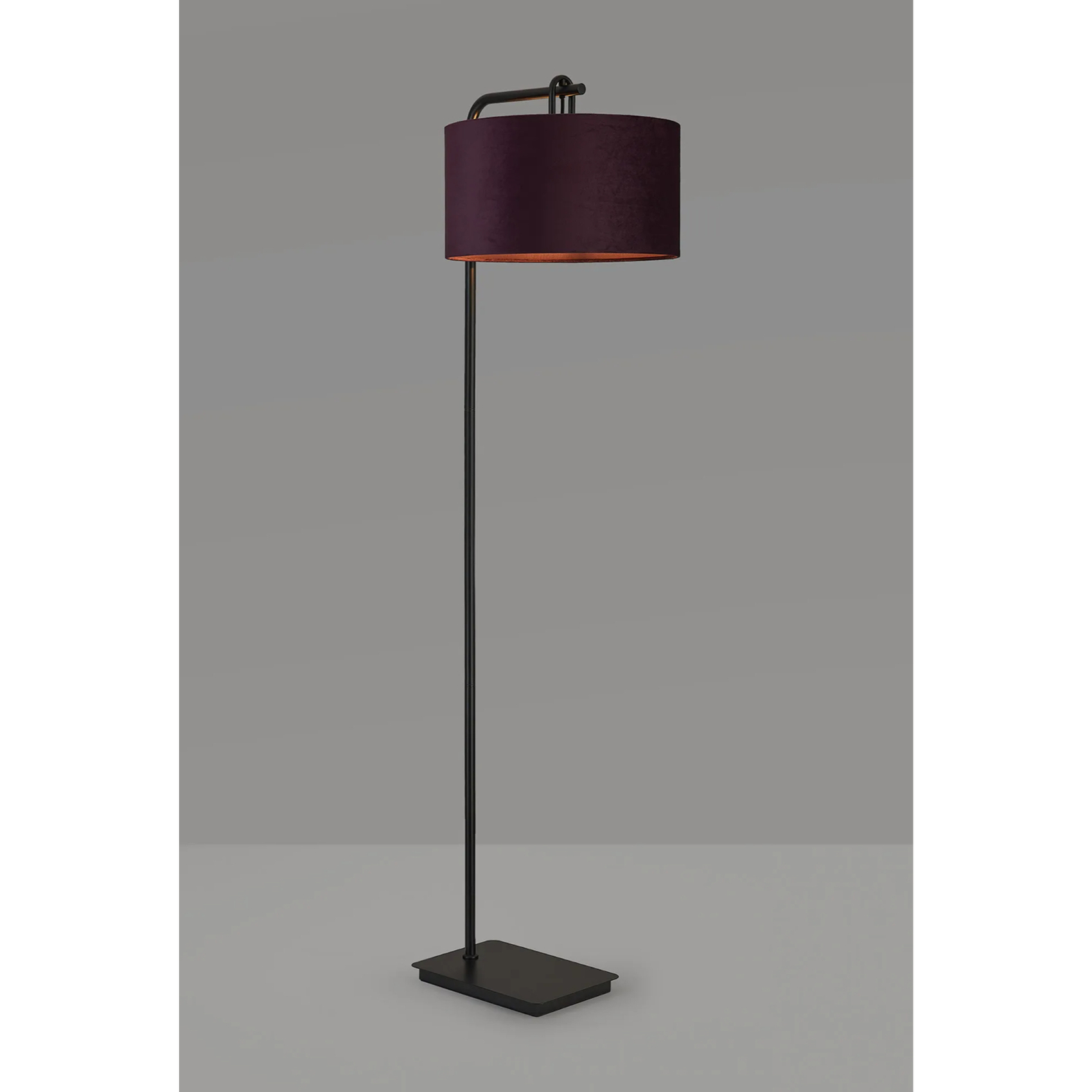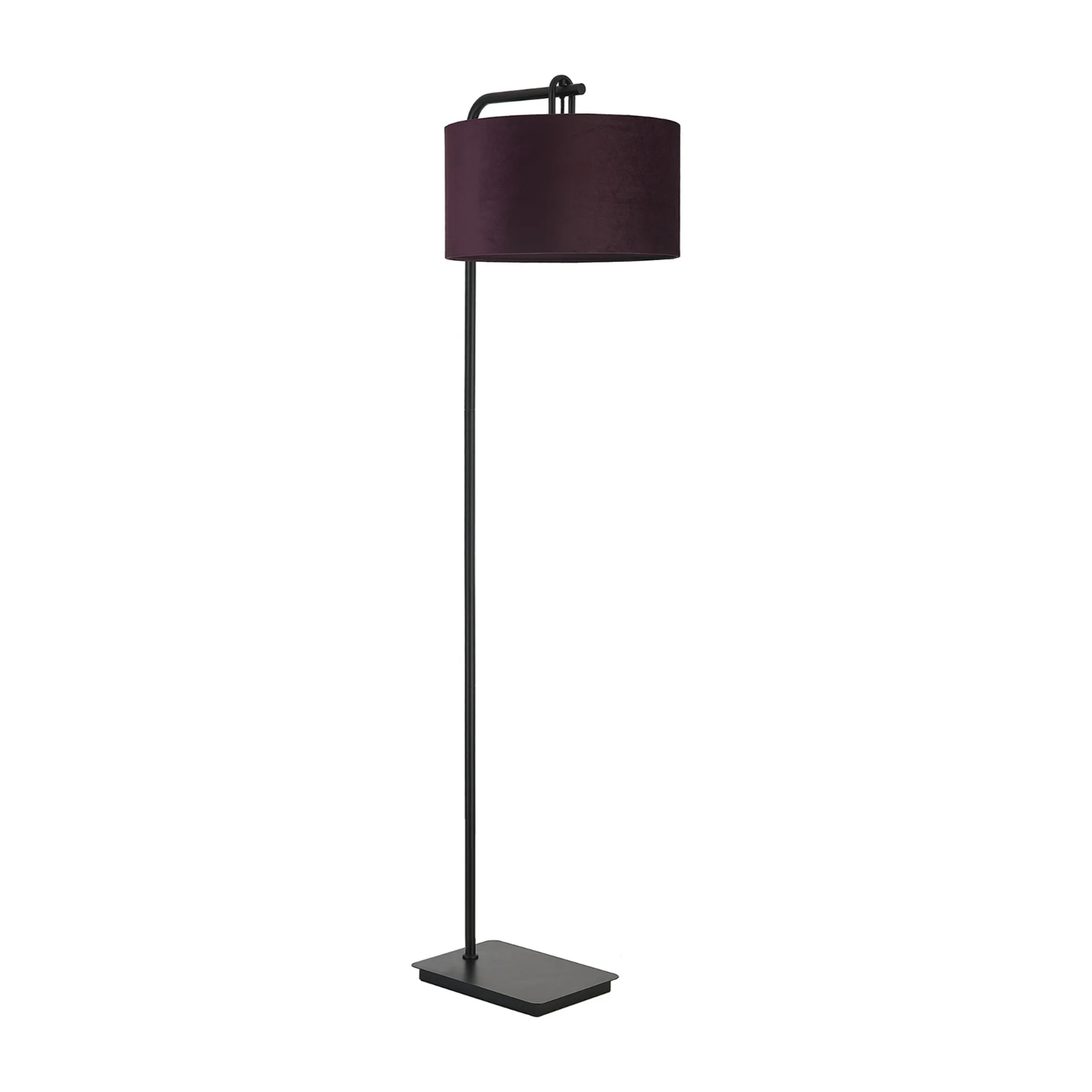 Idolite Camille Floor Lamp, 1 Light E27, Matt Black/Matt Black/Aubergine 40x22cm Velvet Shade | IDOK3583