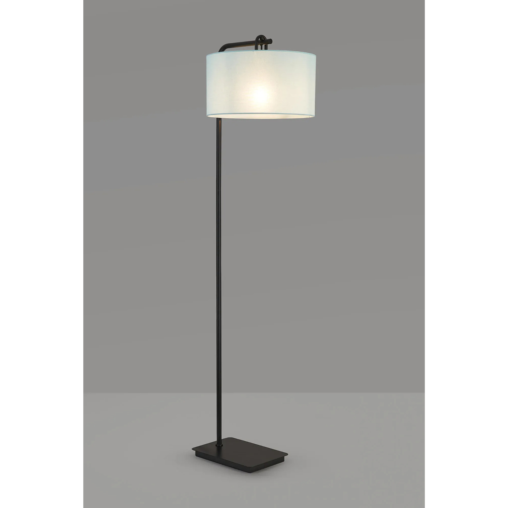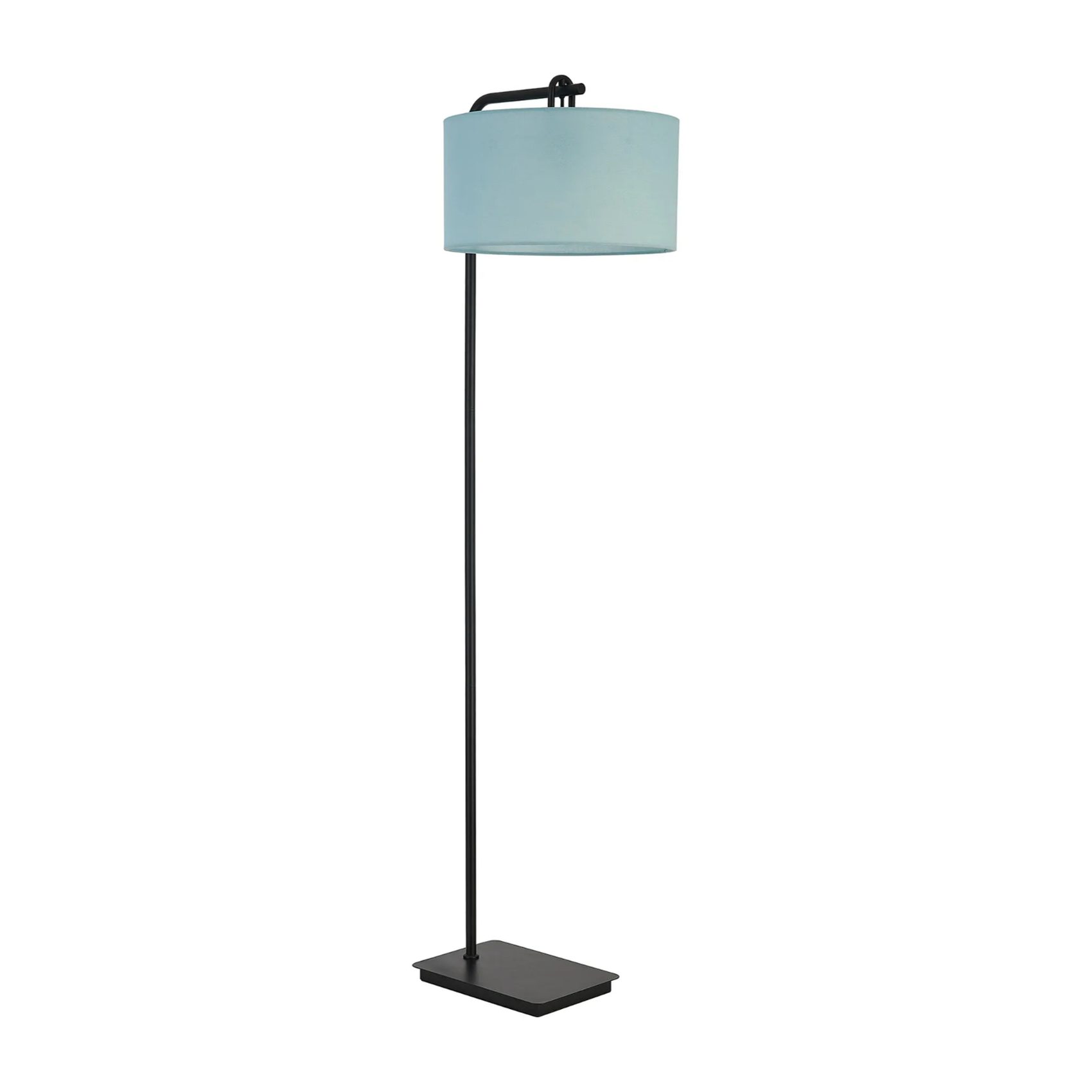 Idolite Camille Floor Lamp, 1 Light E27, Matt Black/Matt Black/Duck Egg 40x22cm Linen Shade | IDOK7583
