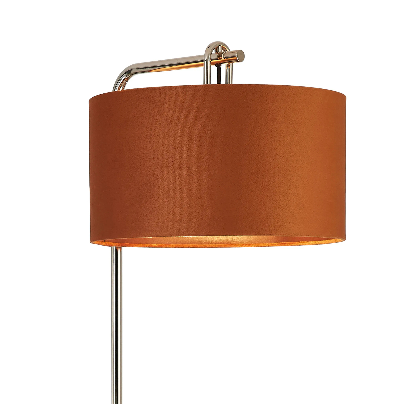 Idolite Camille Floor Lamp, 1 Light E27, Polished Nickel/Matt Black/Burnt Orange/Copper 40x22cm Velvet Shade | IDOK0683