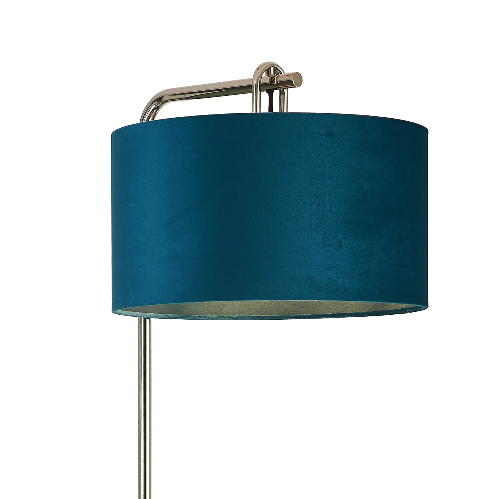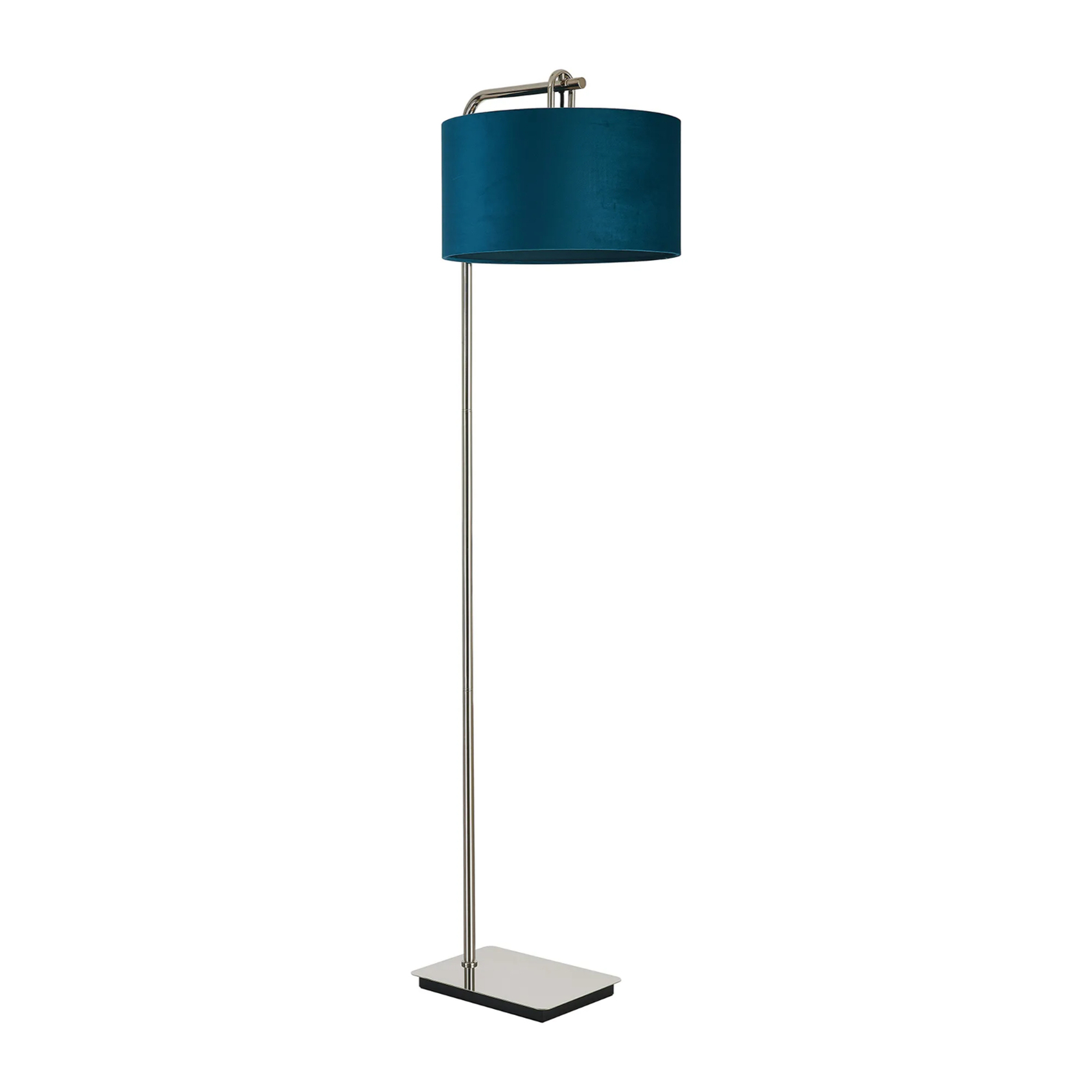 Idolite Camille Floor Lamp, 1 Light E27, Polished Nickel/Matt Black/Teal 40x22cm Velvet Shade | IDOK5683