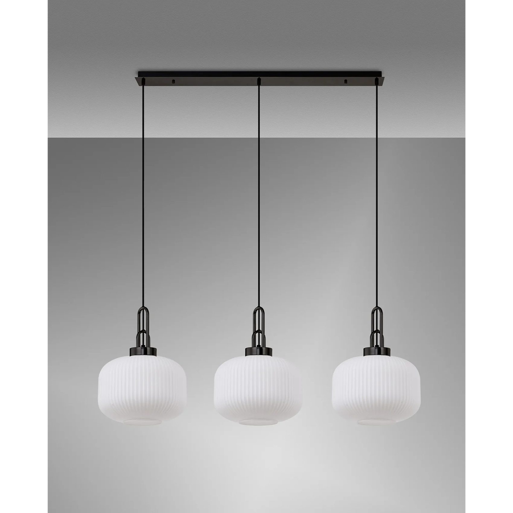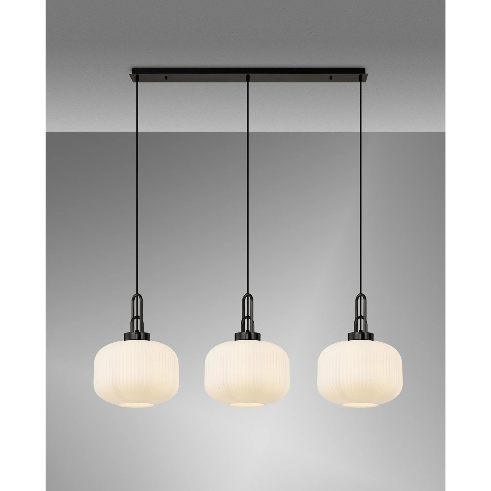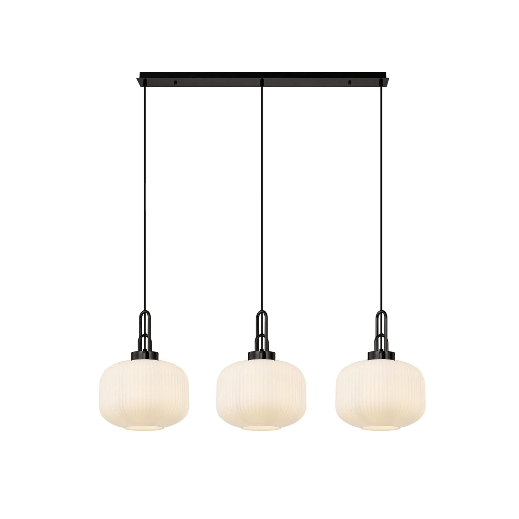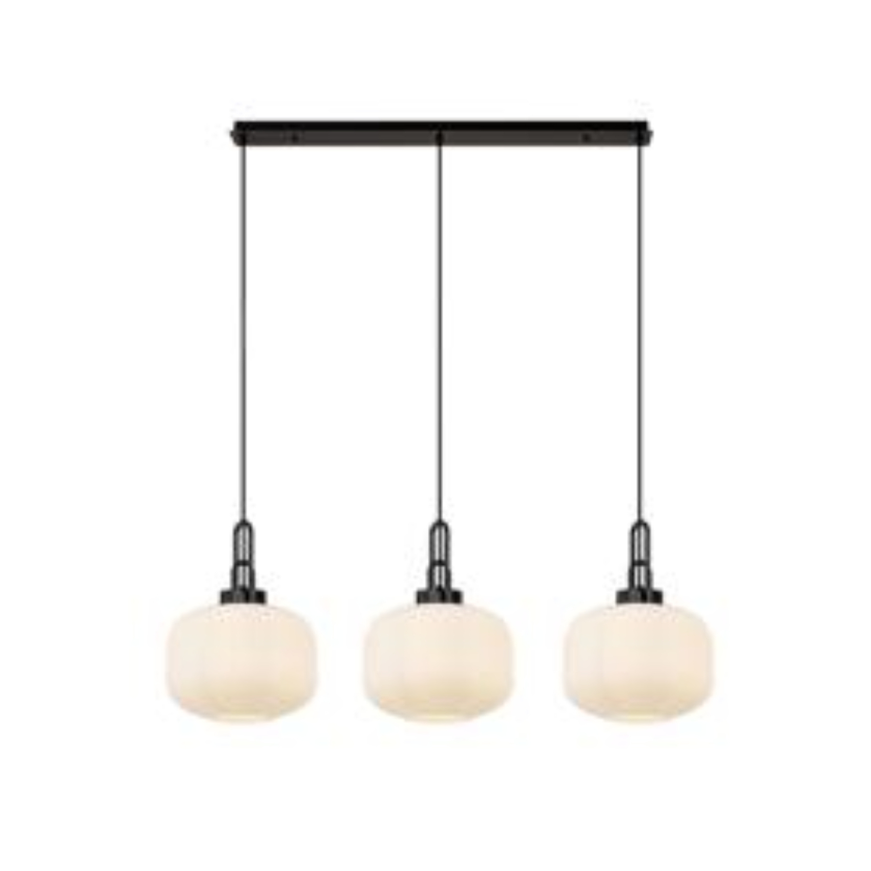Idolite Camille Linear 3 Light Pendant E27, Black Chrome/Matt Black With 30cm Pumpkin Shaped Ribbed Opal Glass | IDOK7560
