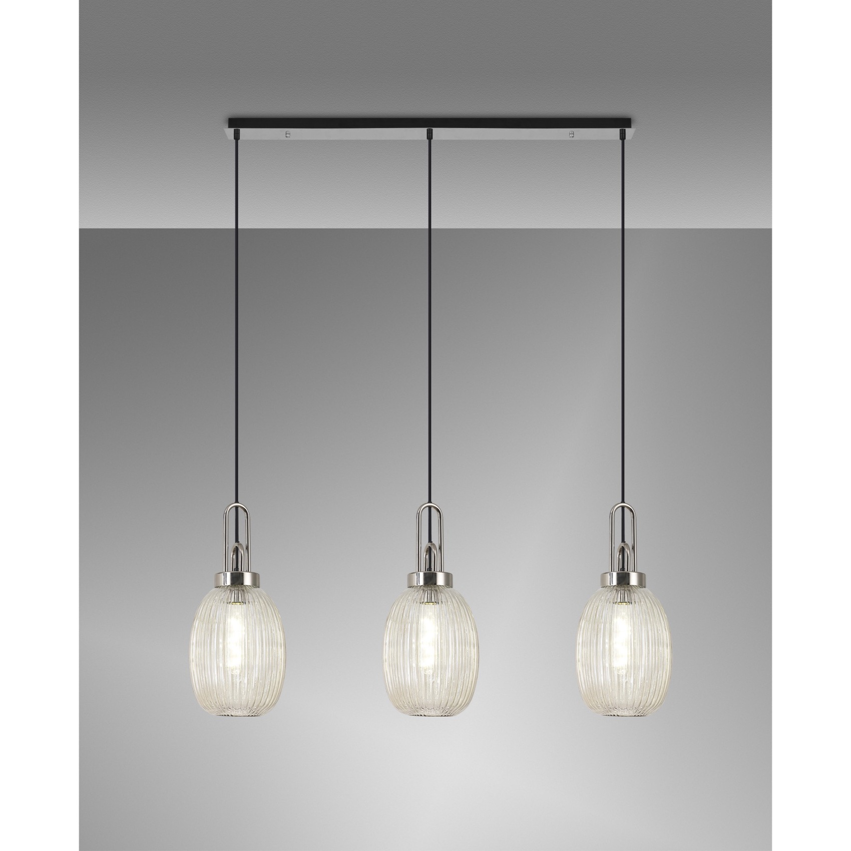 Idolite Camille Linear 3 Light Pendant E27 With 20cm Almond Ribbed Glass, Champagne Polished Nickel/Matt Black | IDOK3950