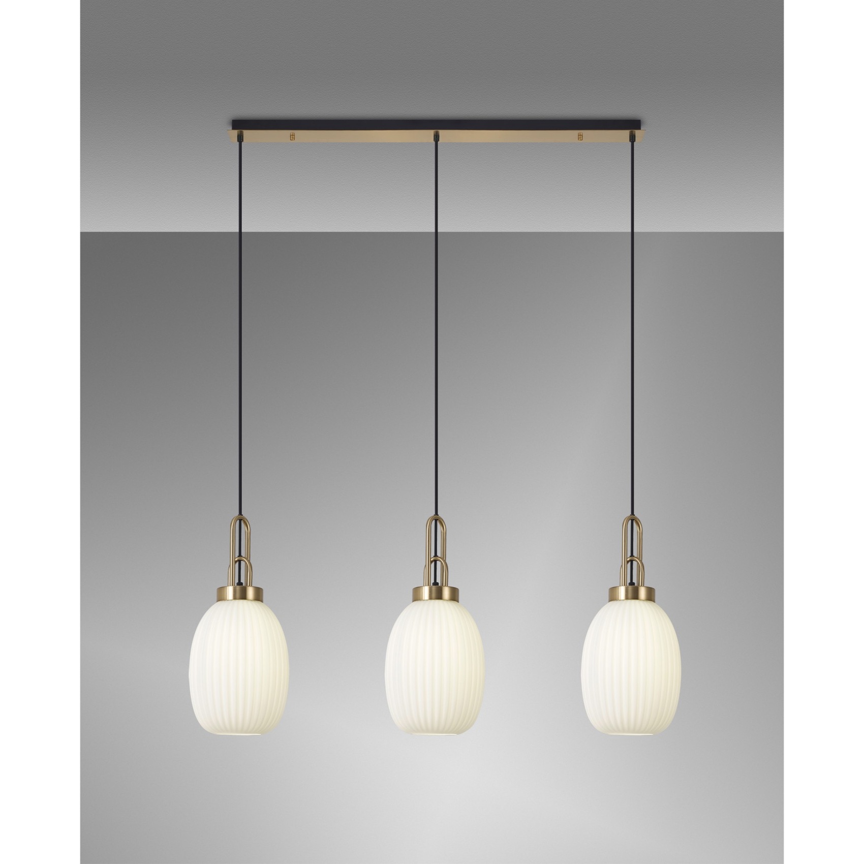 Idolite Camille Linear 3 Light Pendant E27 With 20cm Almond Ribbed Glass, Opal Brass Gold/Matt Black | IDOK0260