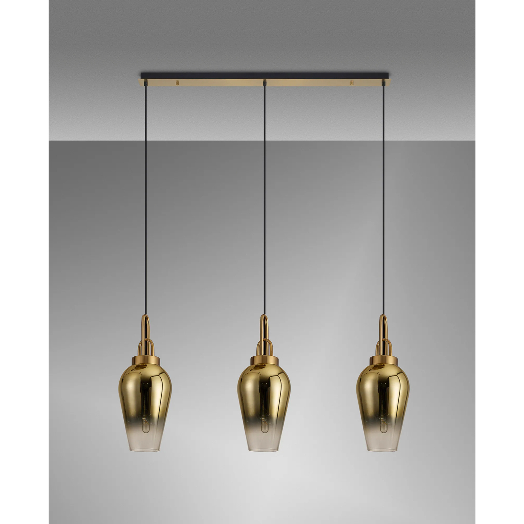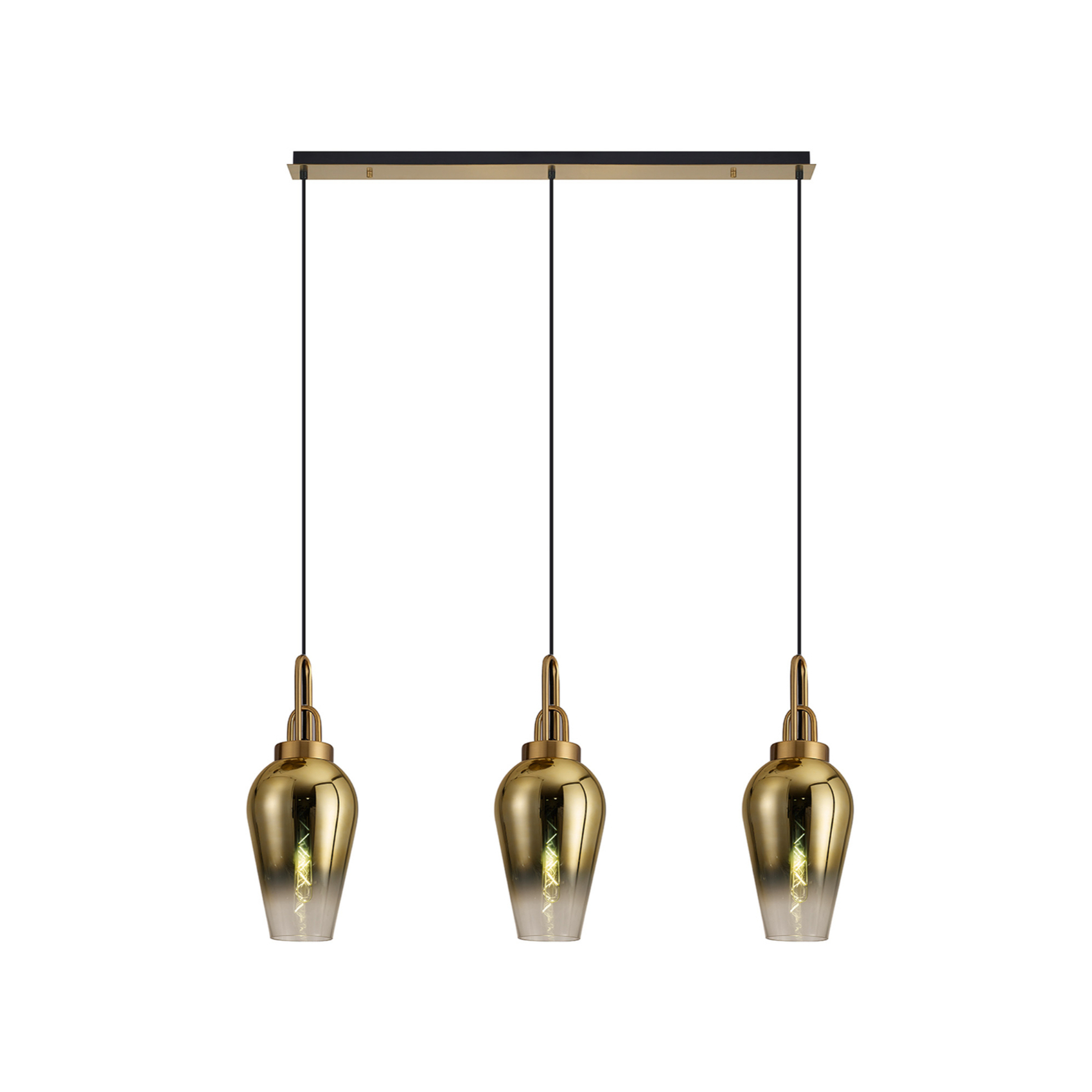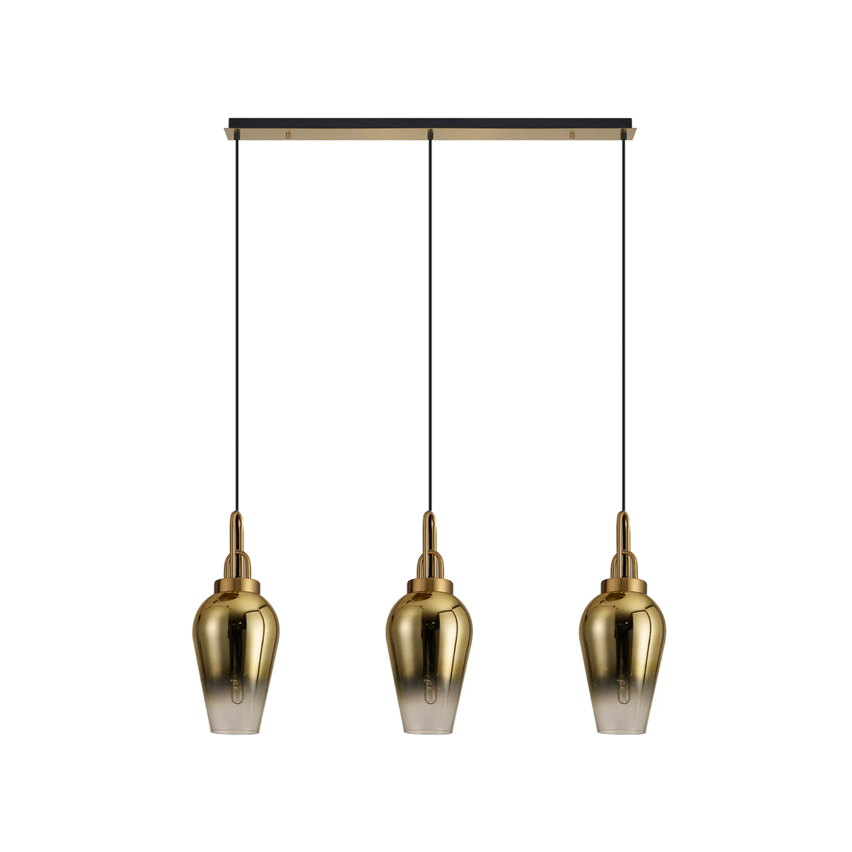 Idolite Camille Linear 3 Light Pendant E27 With 23cm Pear Glass, Brass Gold/Clear Brass Gold/Matt Black | IDOK5090