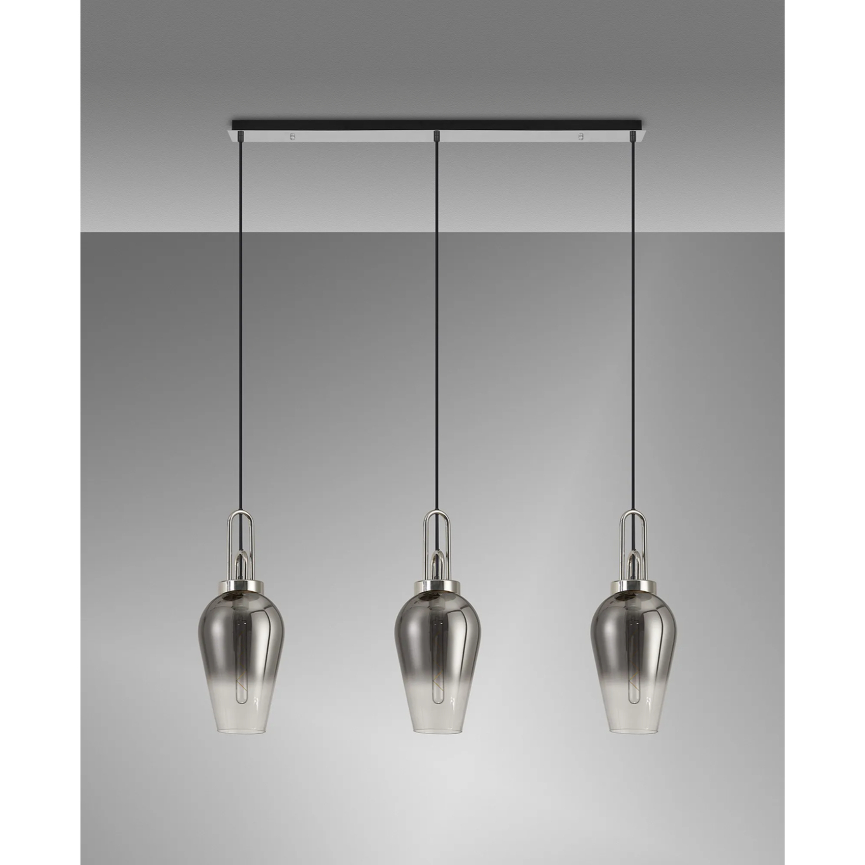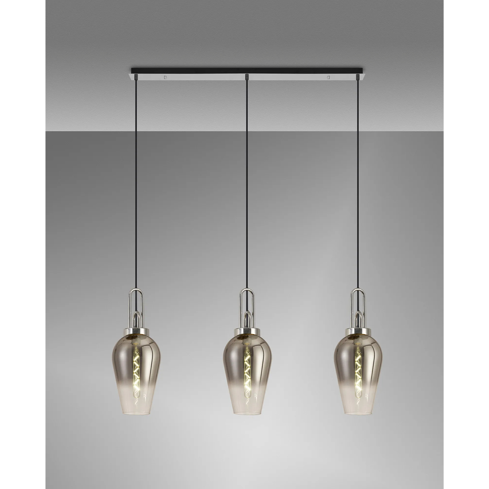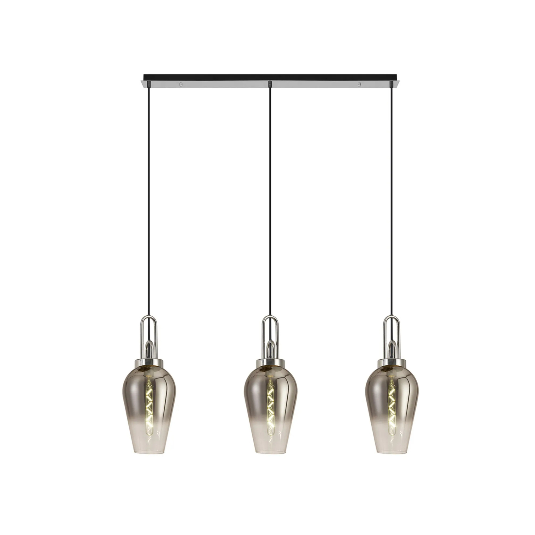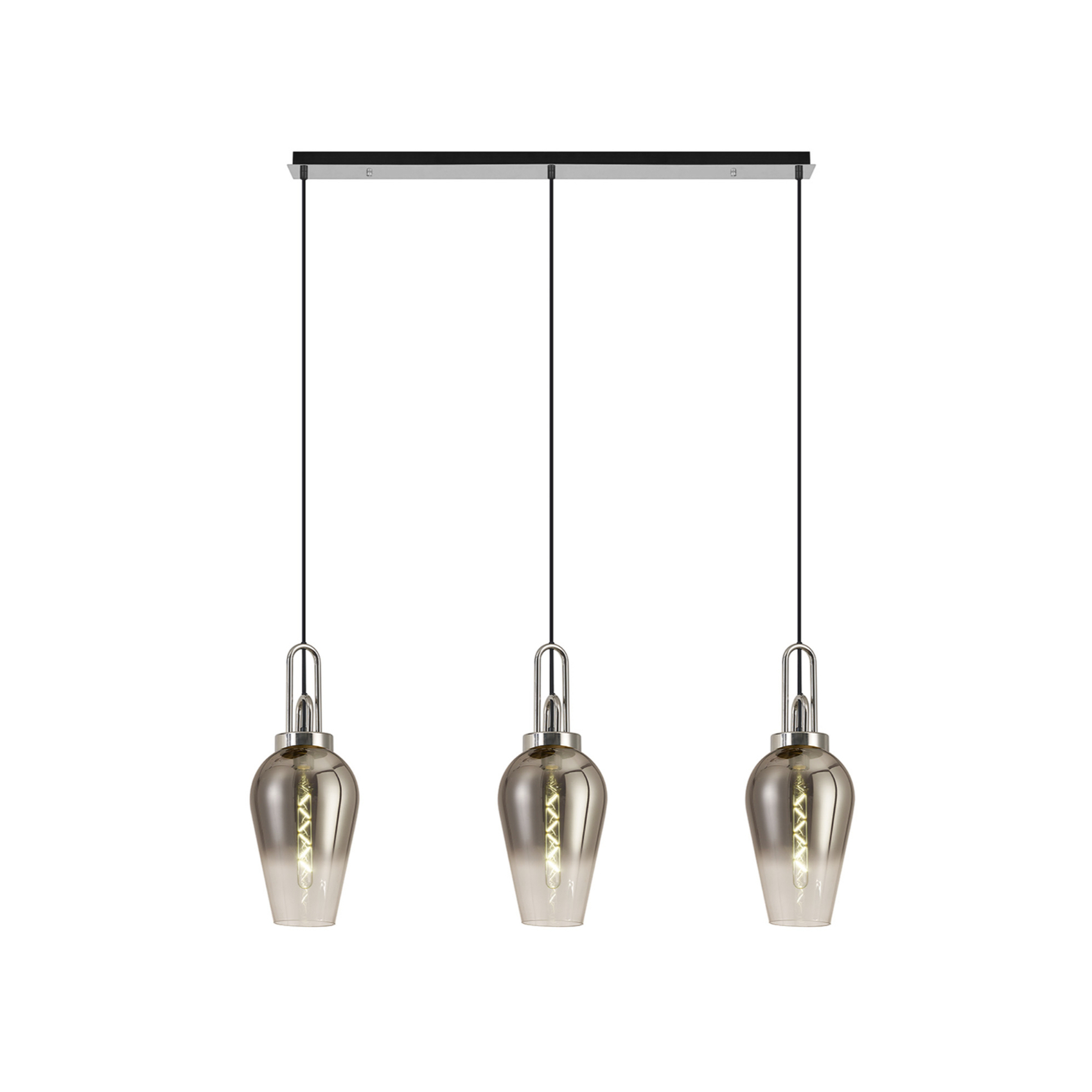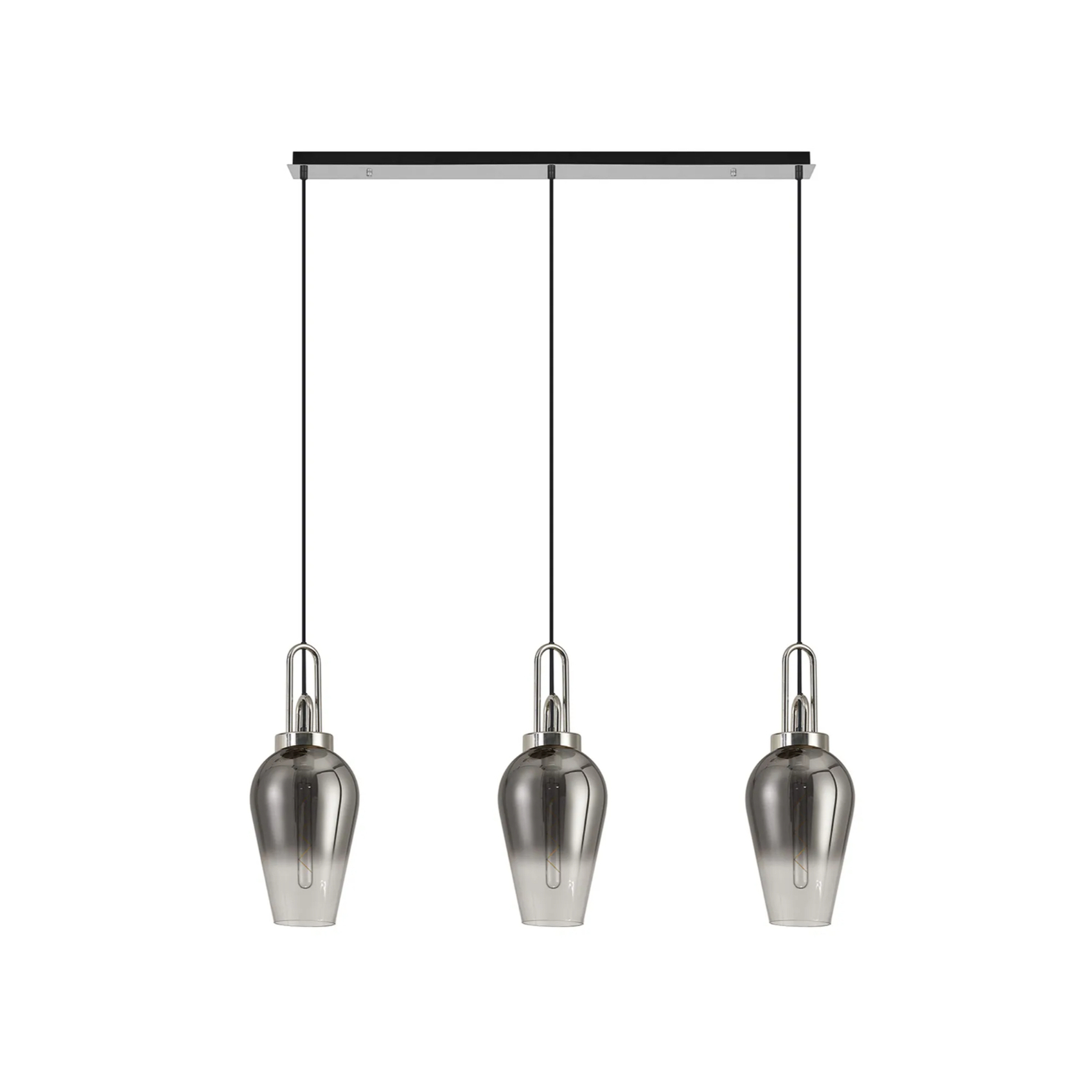 Idolite Camille Linear 3 Light Pendant E27 With 23cm Pear Glass, Smoked/Clear Polished Nickel/Matt Black | IDOK5190