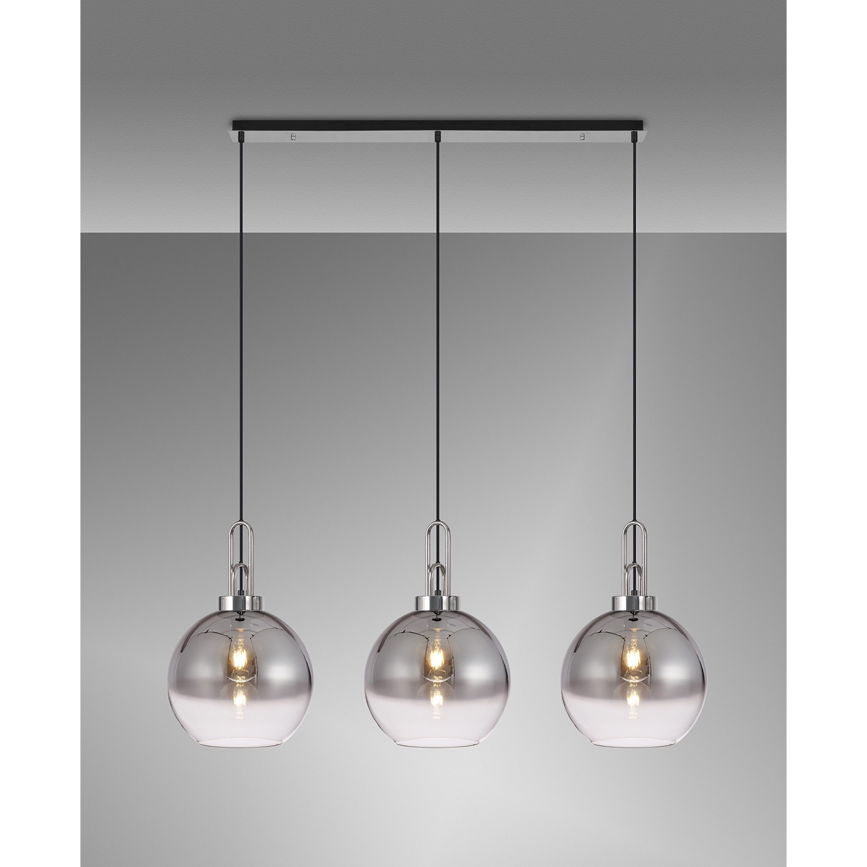 Idolite Camille Linear 3 Light Pendant E27 With 30cm Globe Glass, Smoked/Clear Polished Nickel/Matt Black | IDOK2850