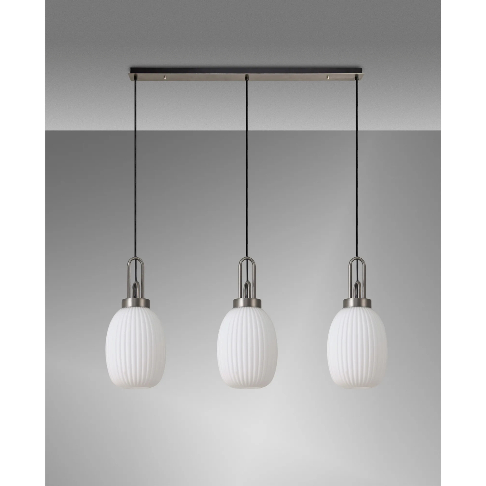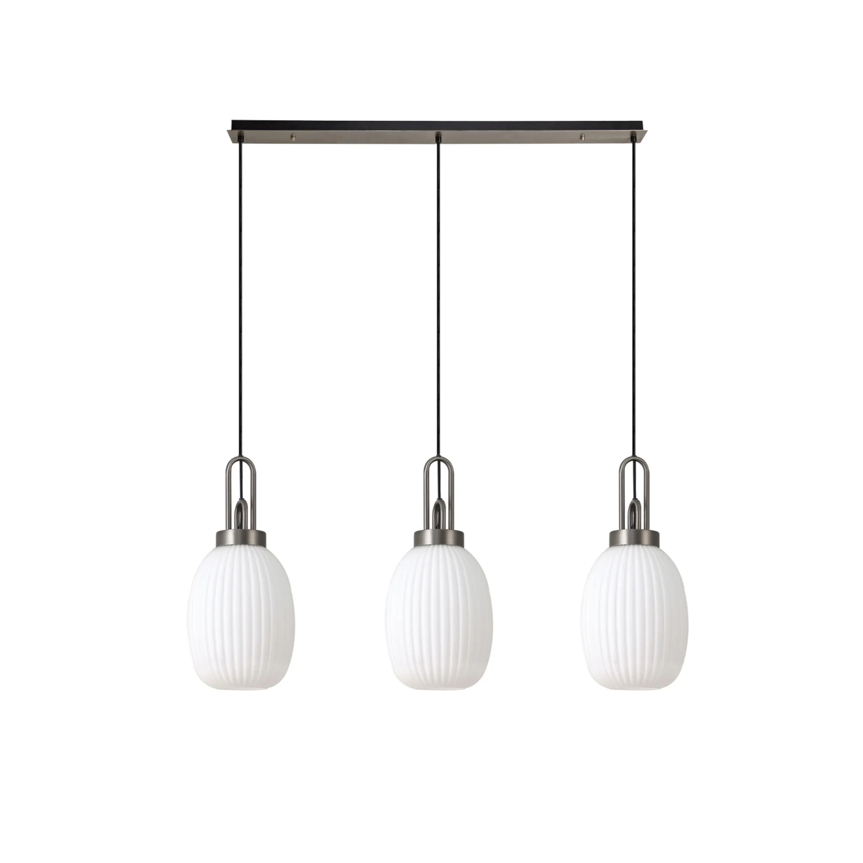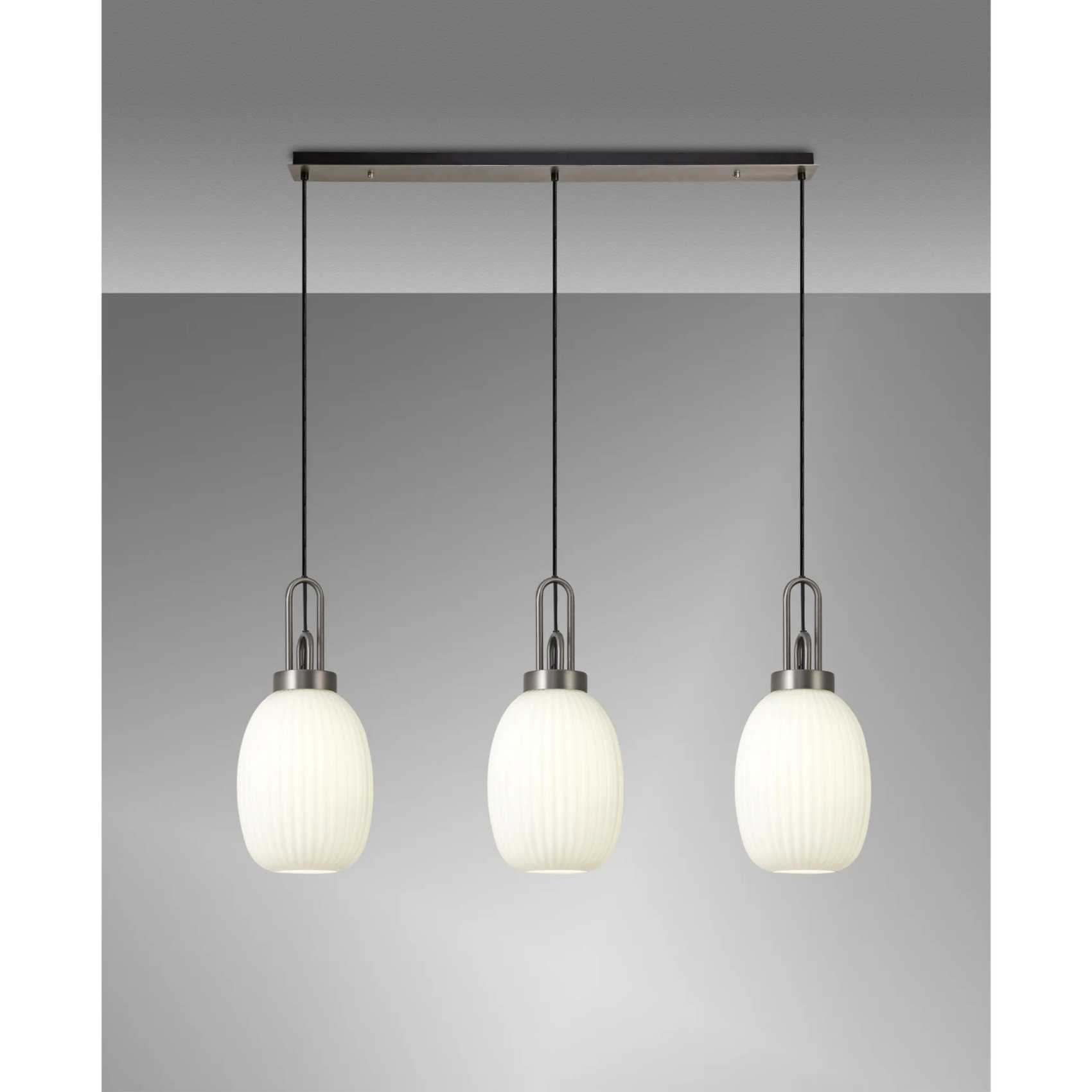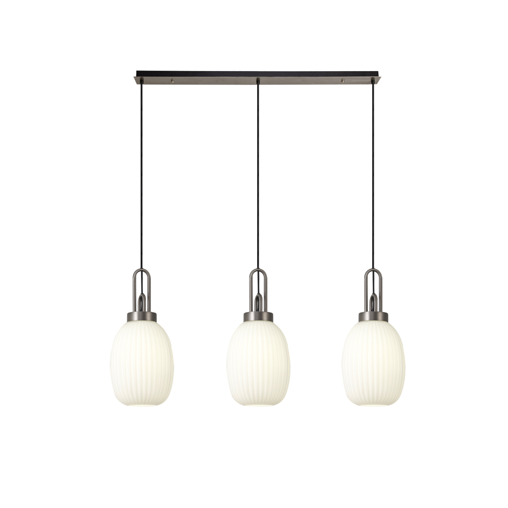 Idolite Camille Linear 3 Light Pendant With 20cm Almond Ribbed Glass, Antique Silver/Matt Black Opal | IDOK0780