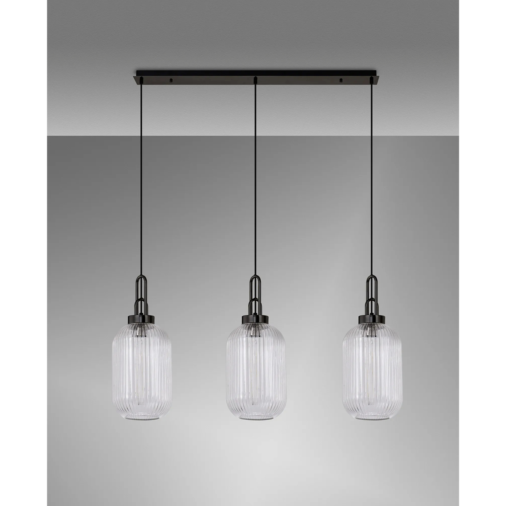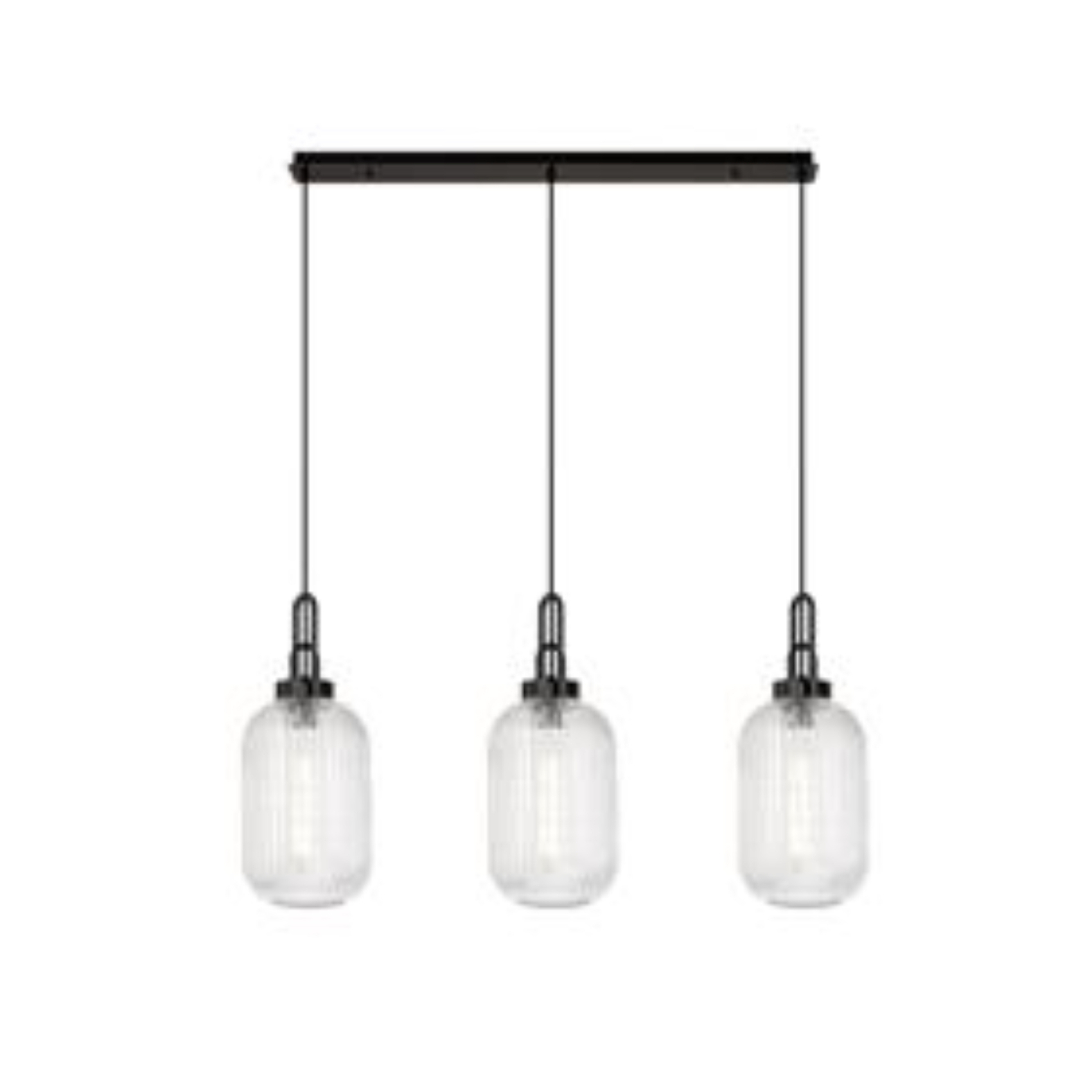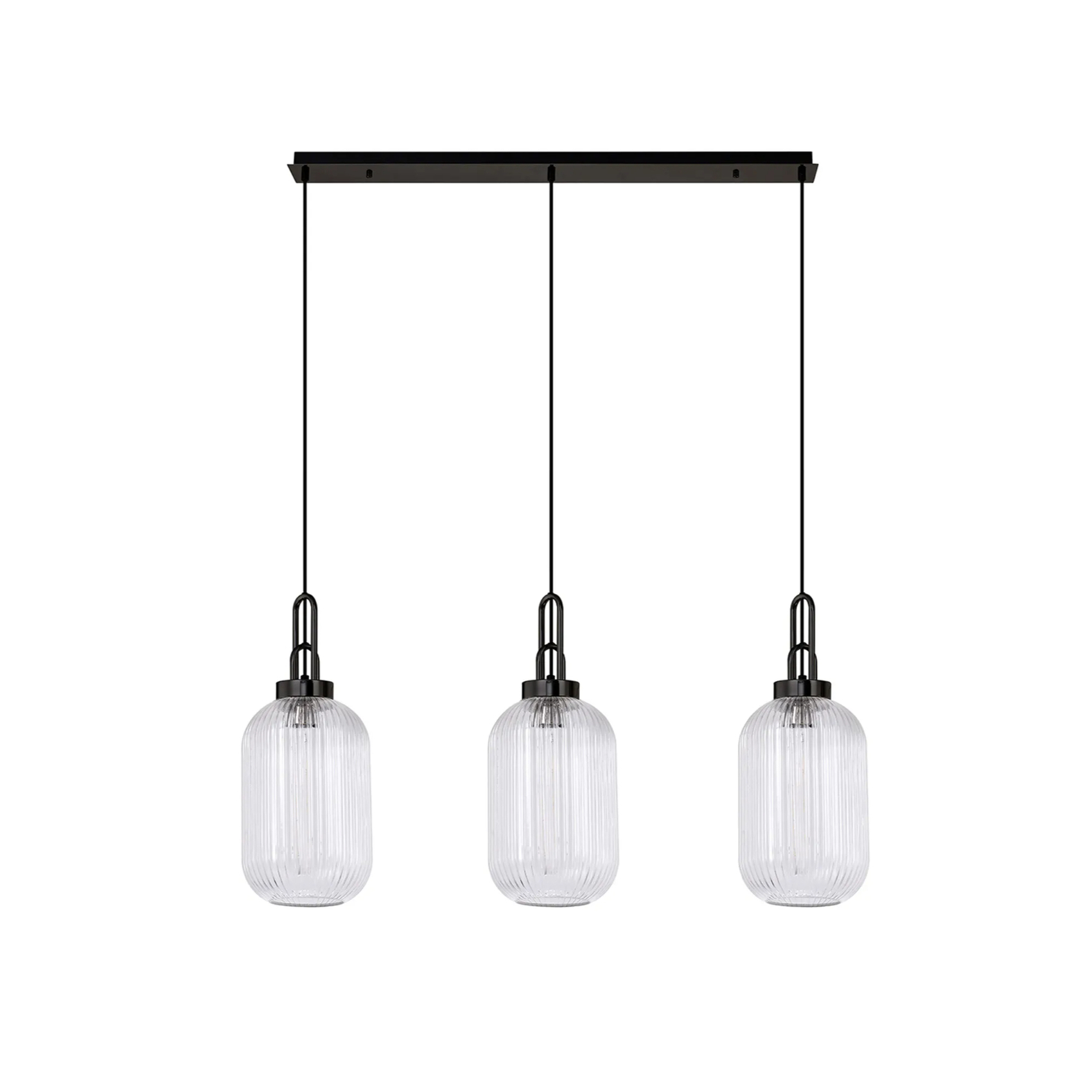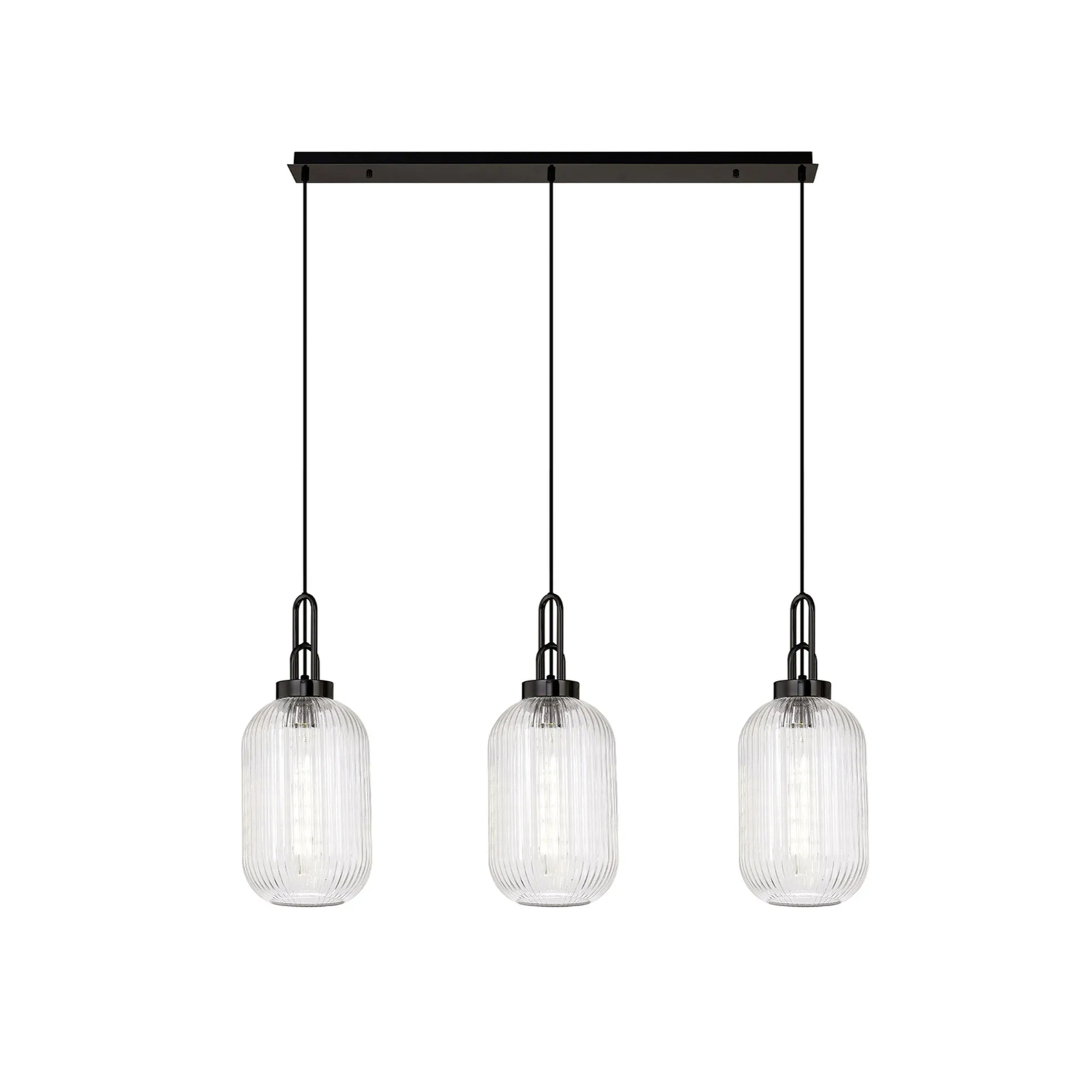 Idolite Camille Linear 3 Light Pendant With 20cm Tubular Ribbed Glass, Black Chrome/Matt Black Clear | IDOK9470