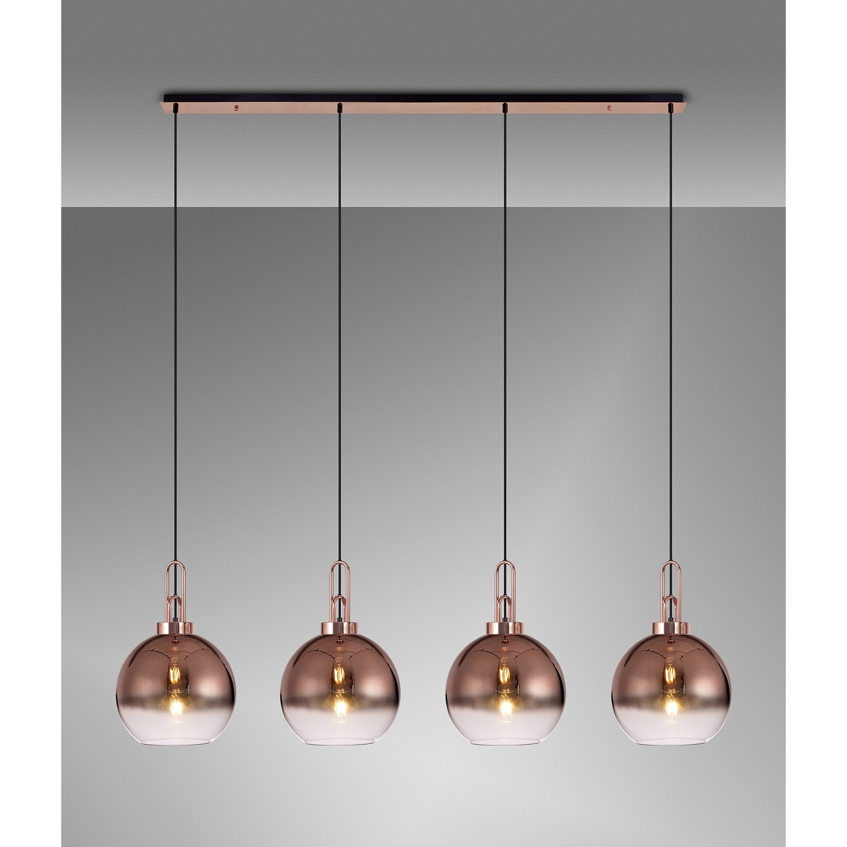 Idolite Camille Linear 4 Light Pendant E27 With 30cm Globe Glass, Copper/Clear Copper/Matt Black | IDOK7260