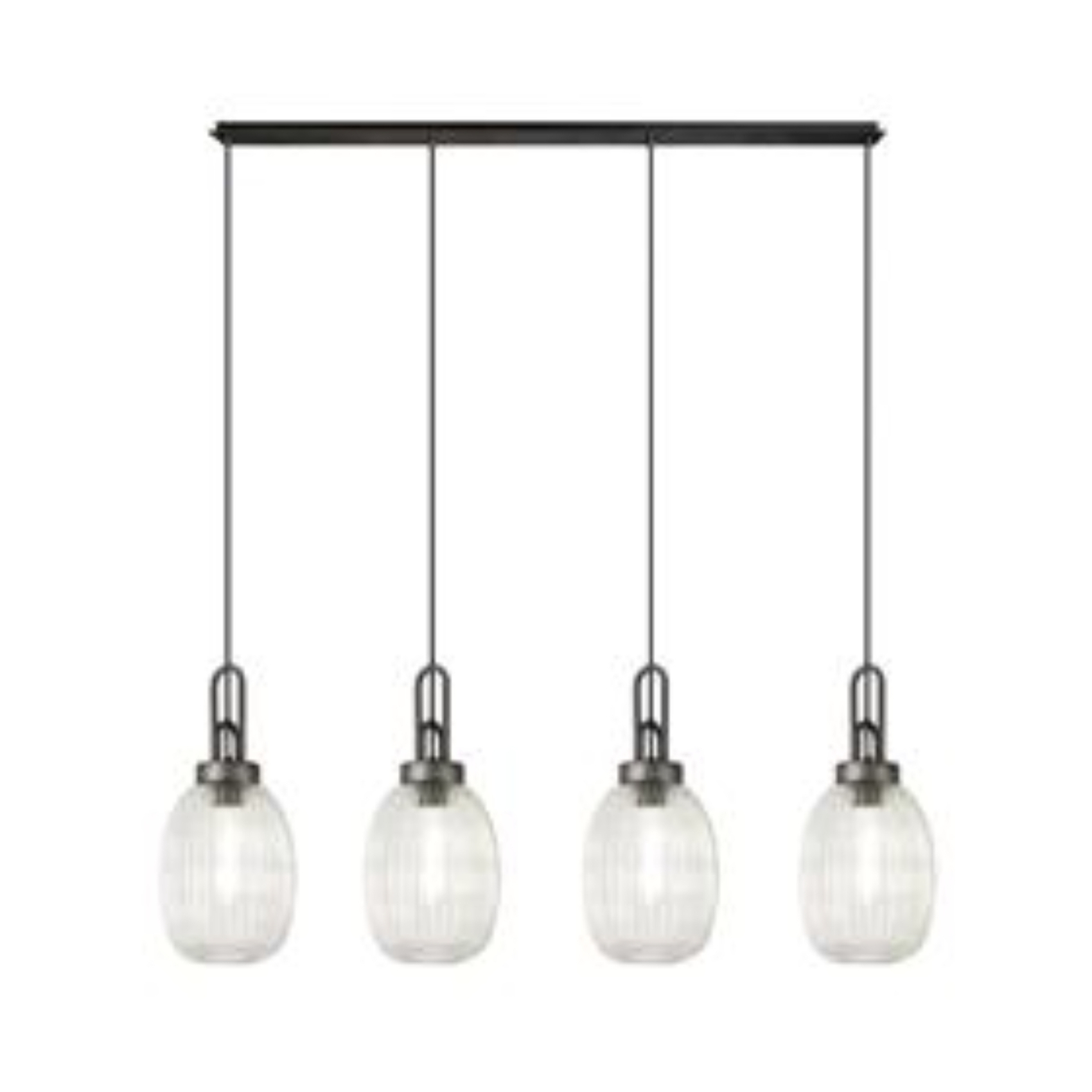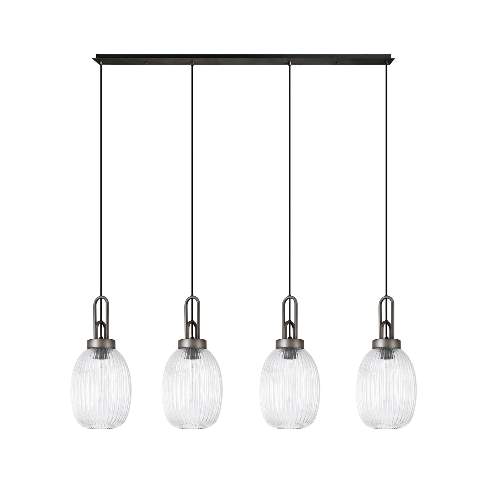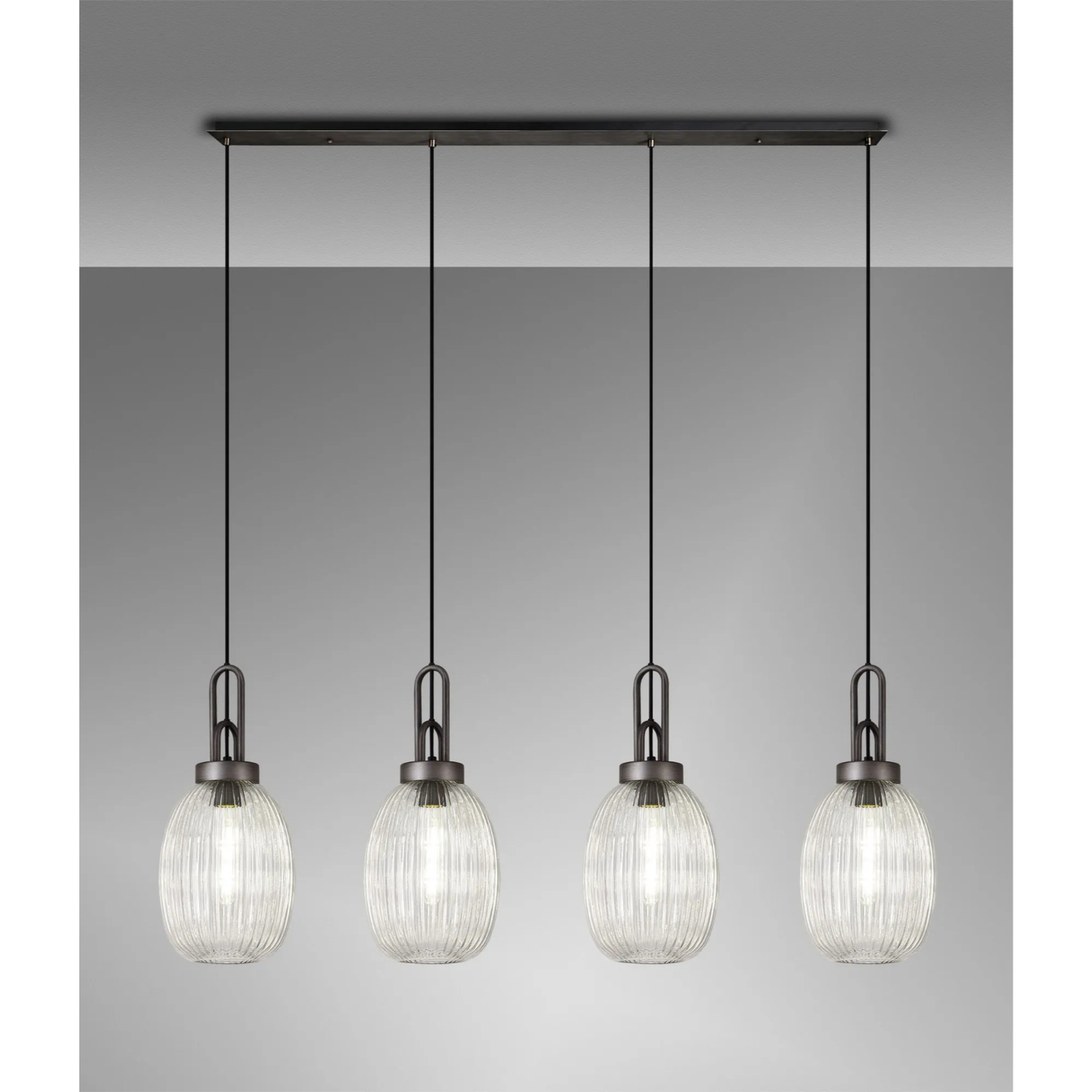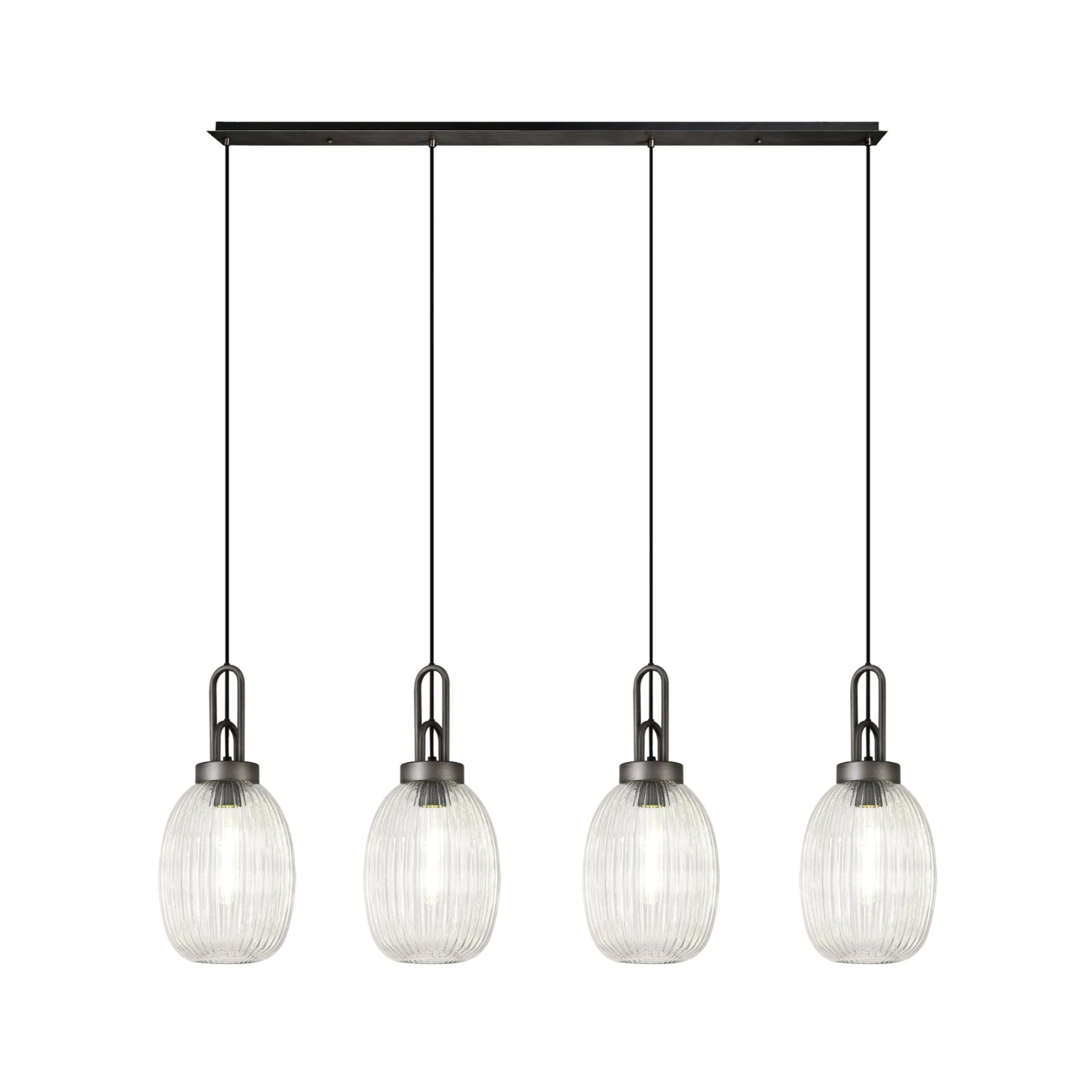 Idolite Camille Linear 4 Light Pendant With 20cm Almond Ribbed Glass, Aged Pewter/Matt Black Clear | IDOK4080