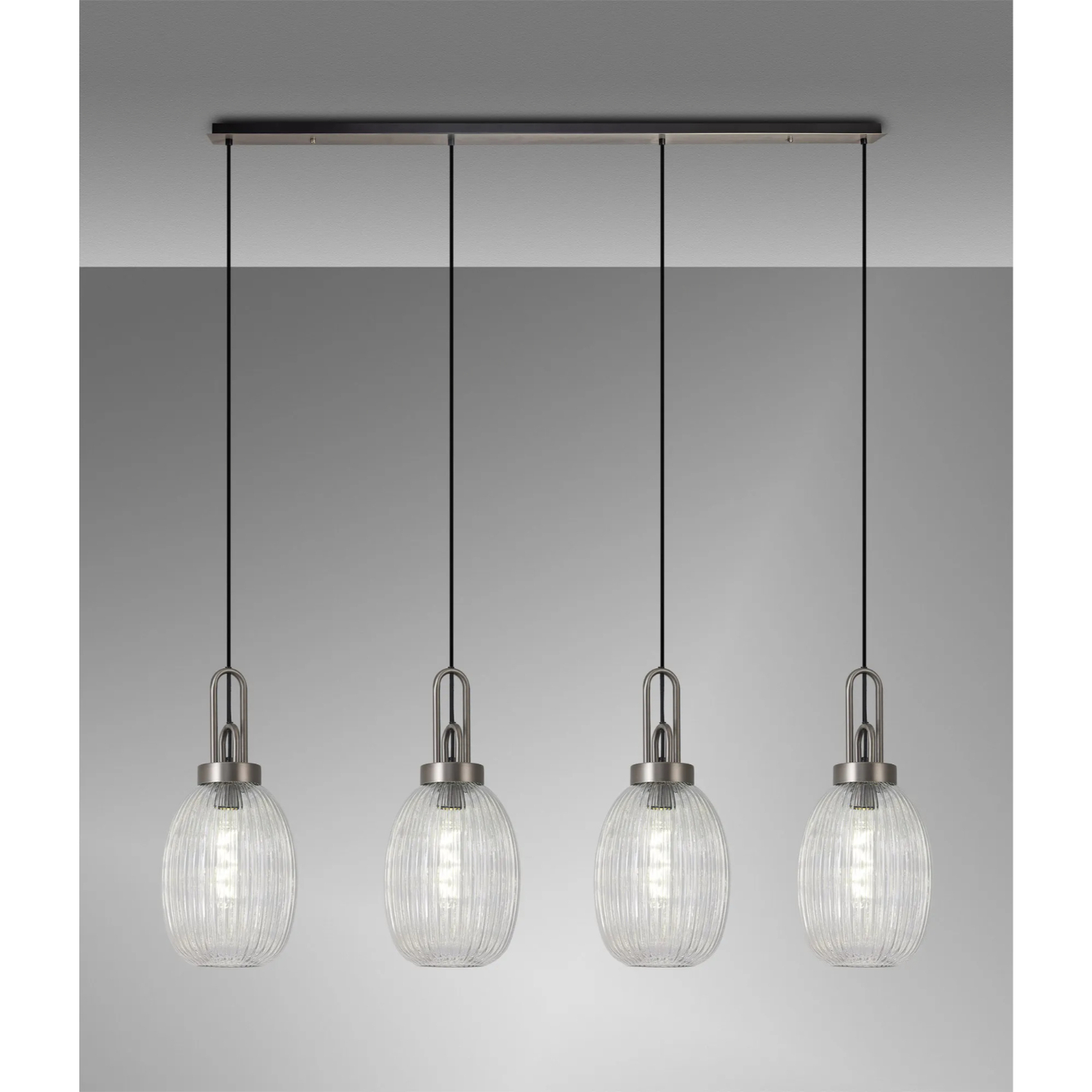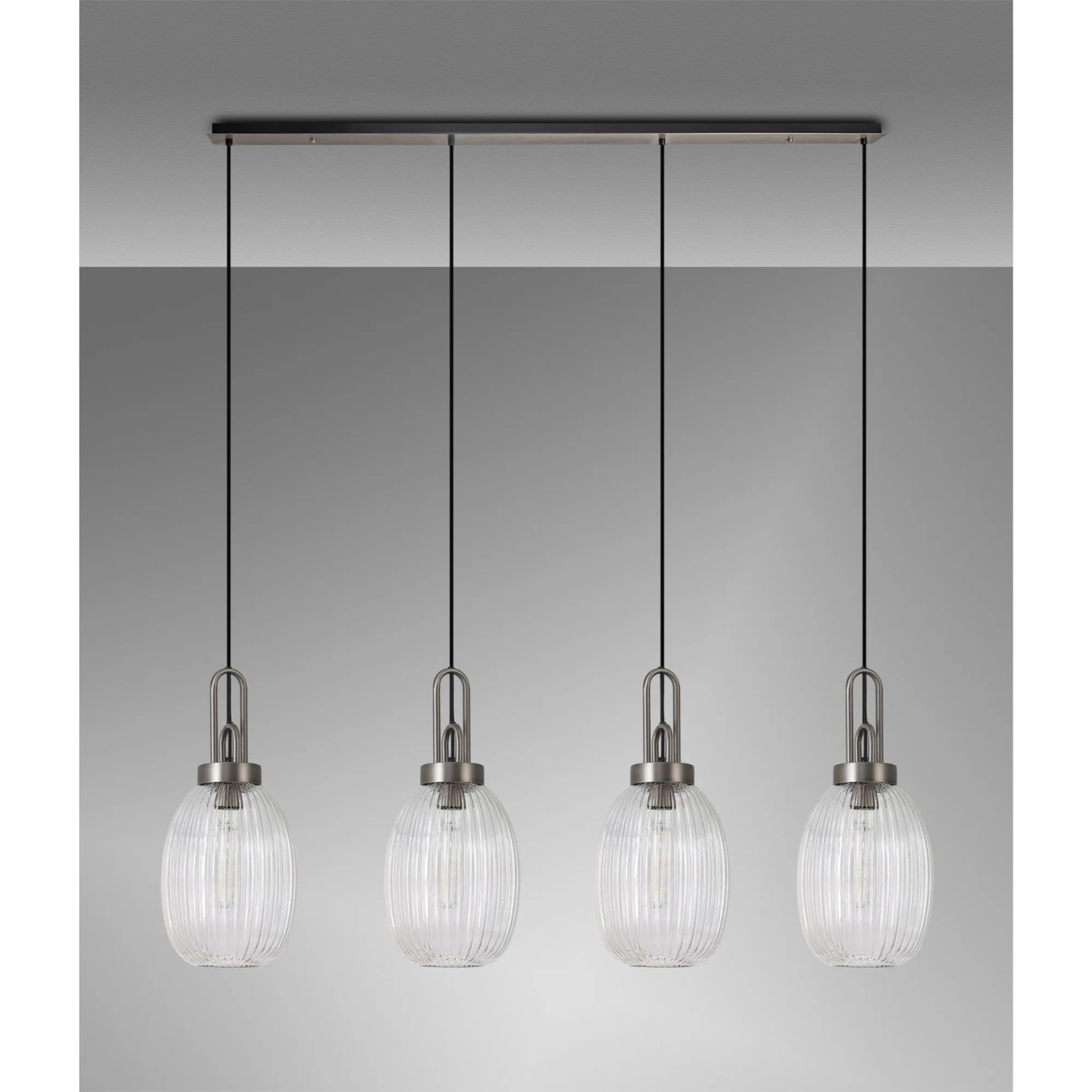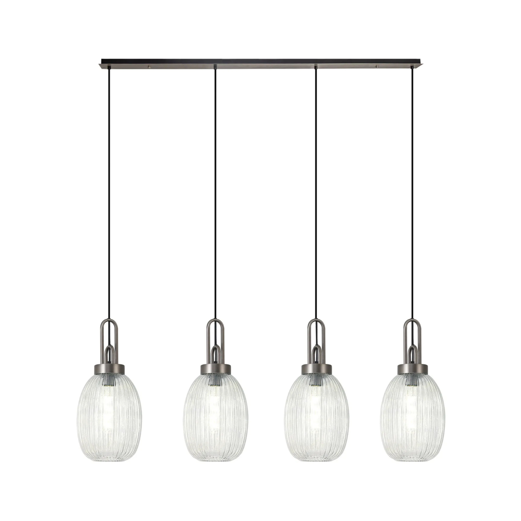 Idolite Camille Linear 4 Light Pendant With 20cm Almond Ribbed Glass, Antique Silver/Matt Black Clear | IDOK8080