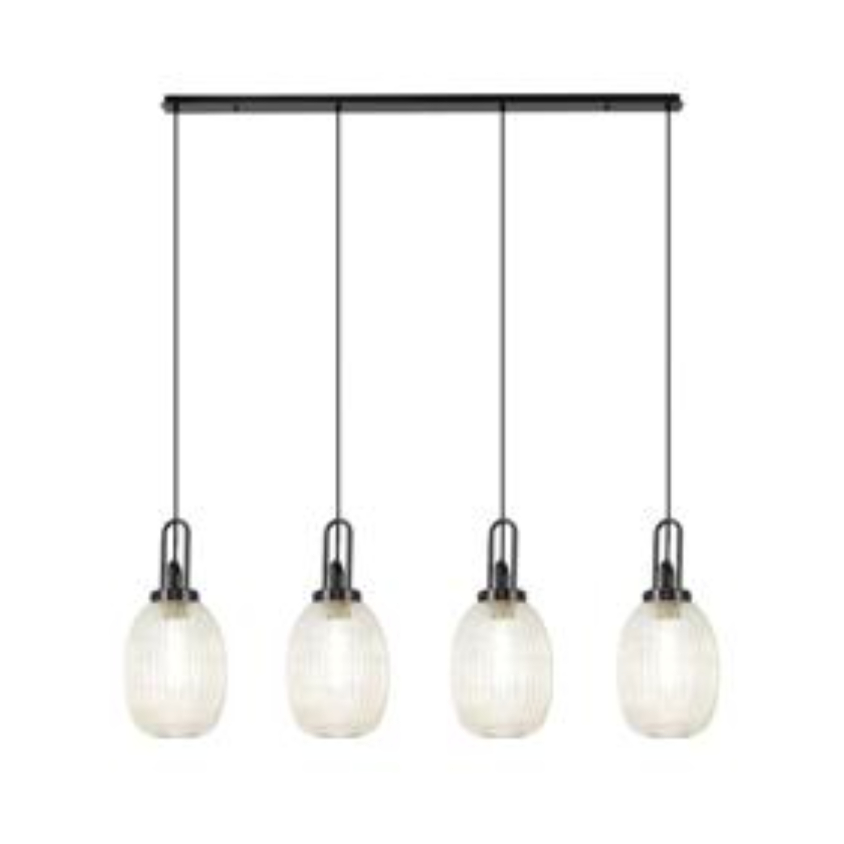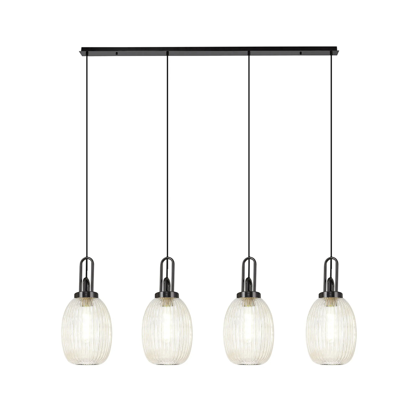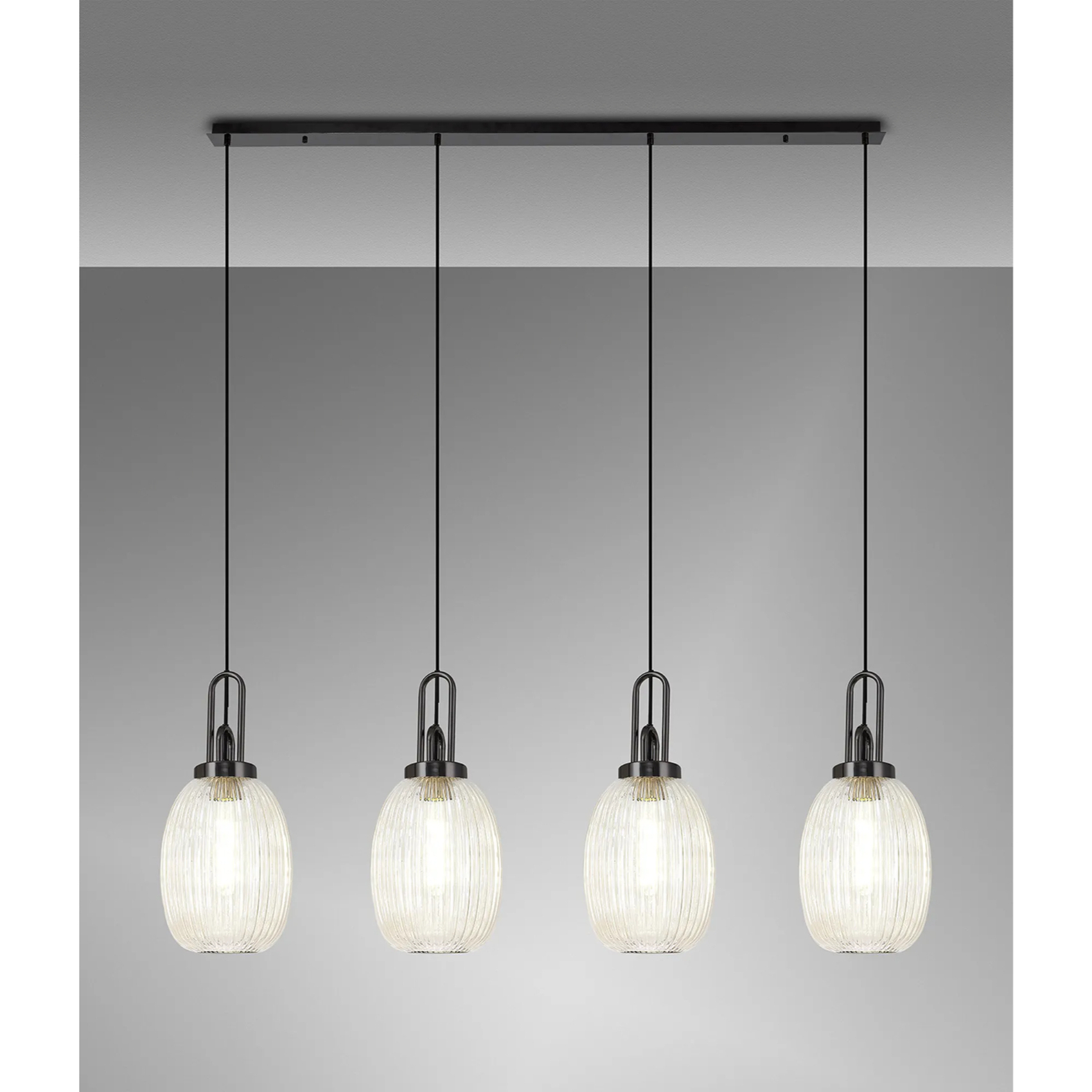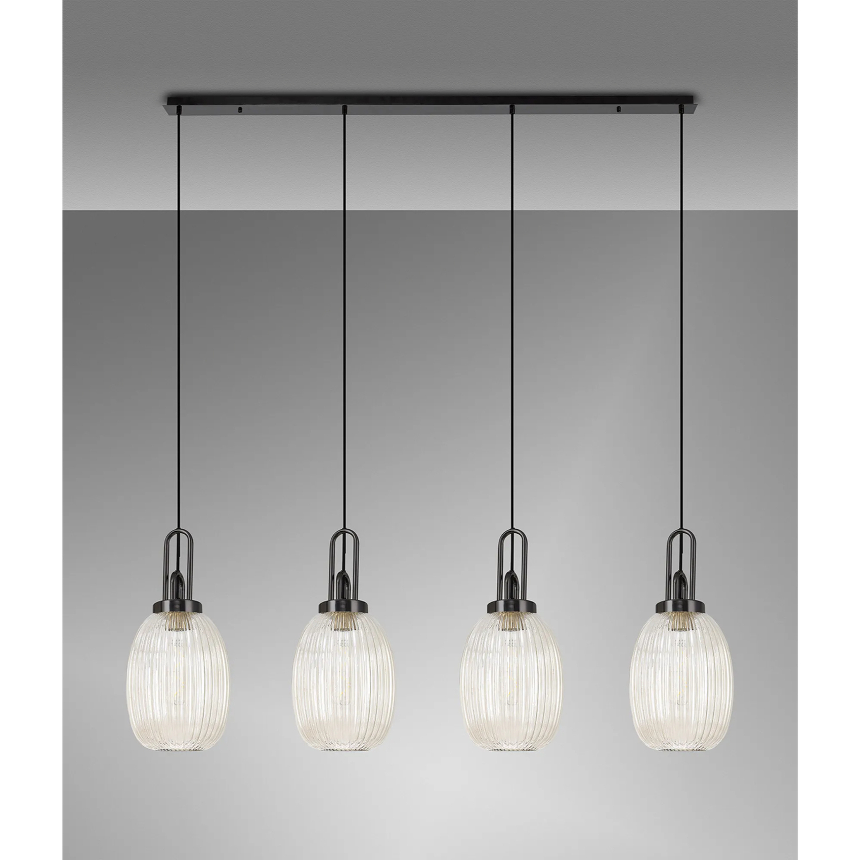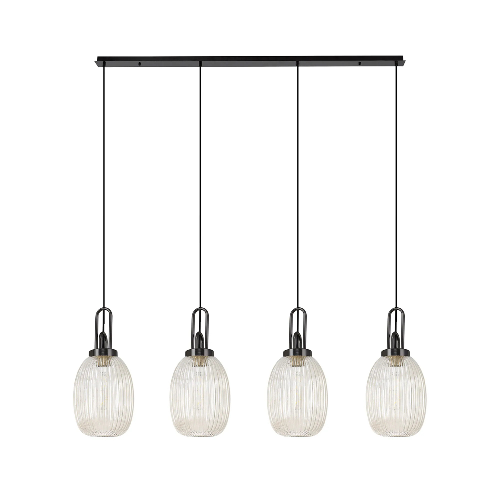 Idolite Camille Linear 4 Light Pendant With 20cm Almond Ribbed Glass, Black Chrome/Matt Black Champagne | IDOK4580