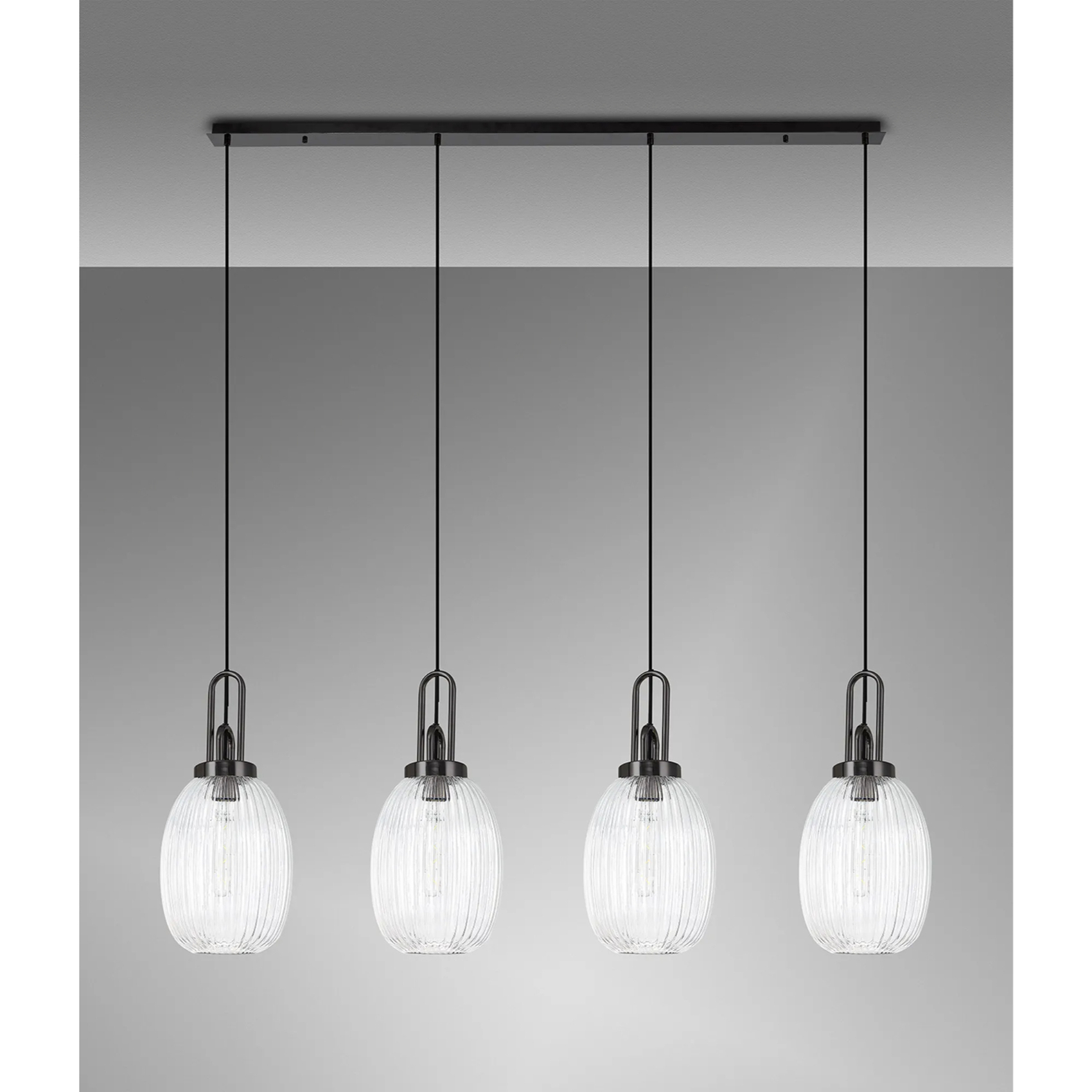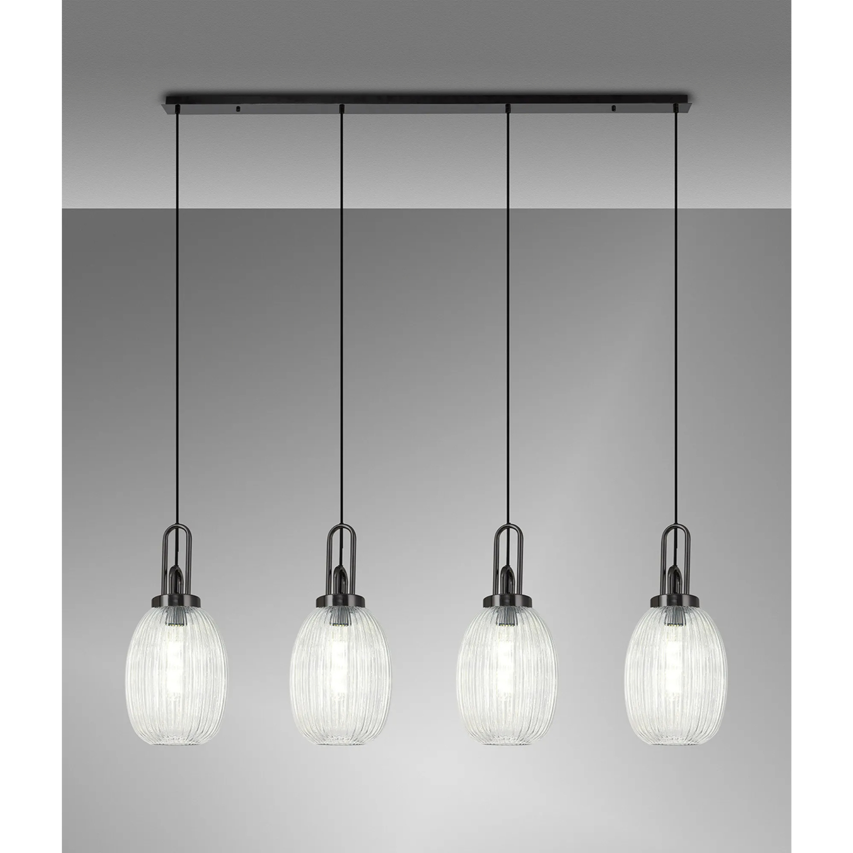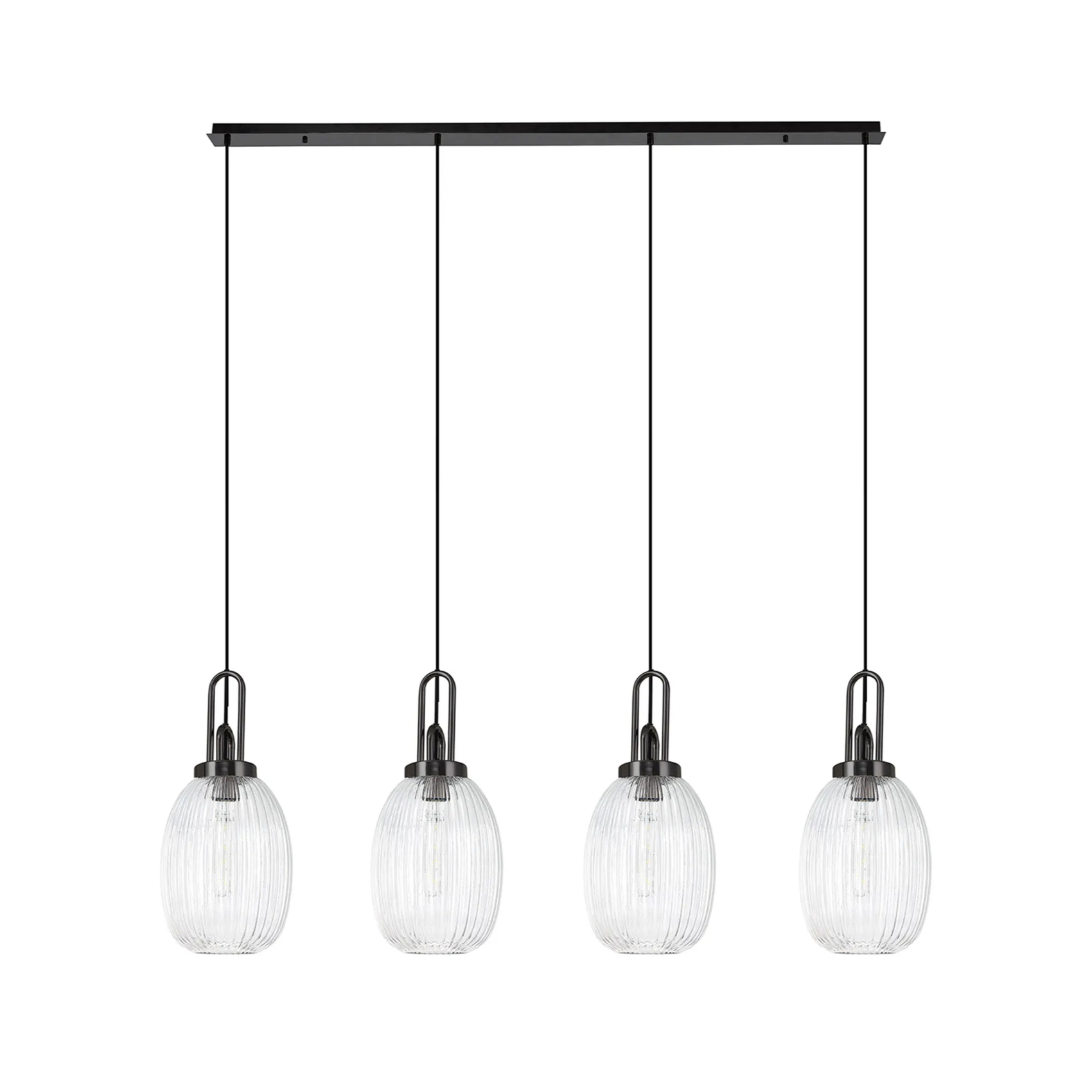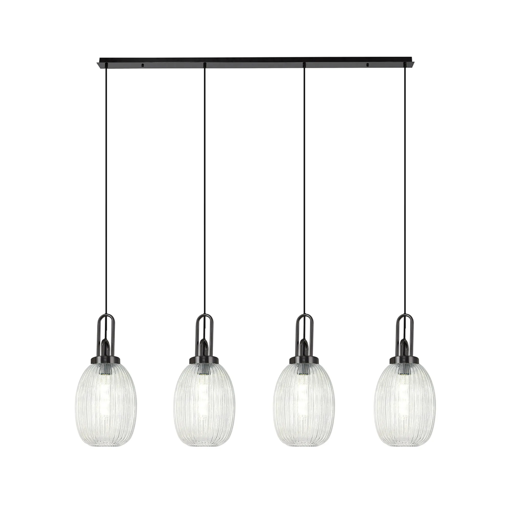 Idolite Camille Linear 4 Light Pendant With 20cm Almond Ribbed Glass, Black Chrome/Matt Black Clear | IDOK2180