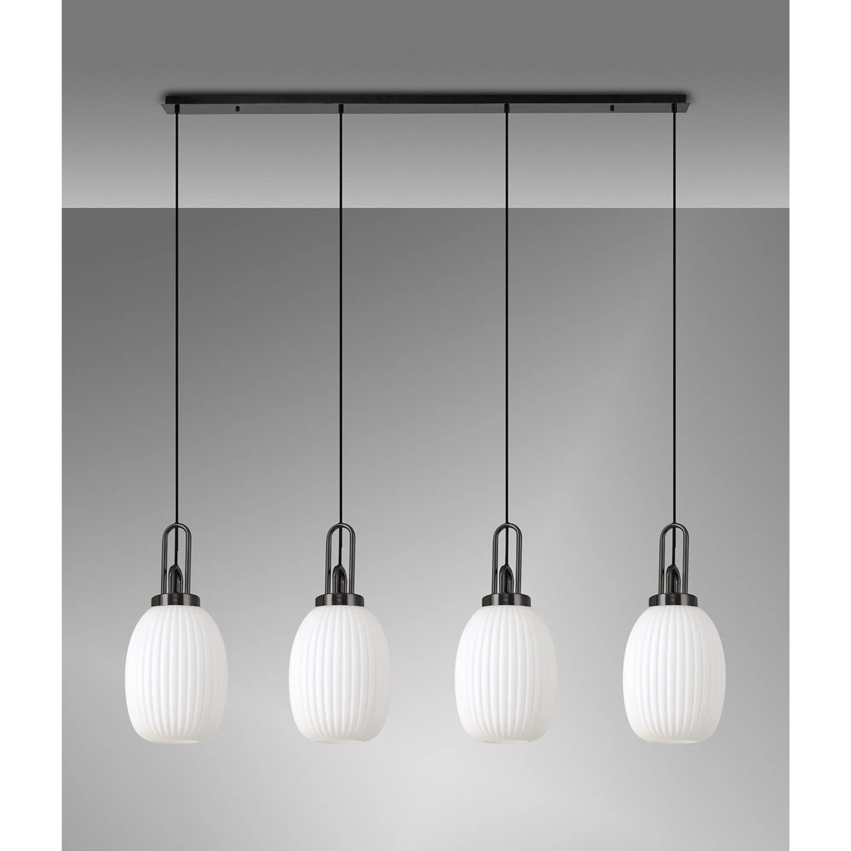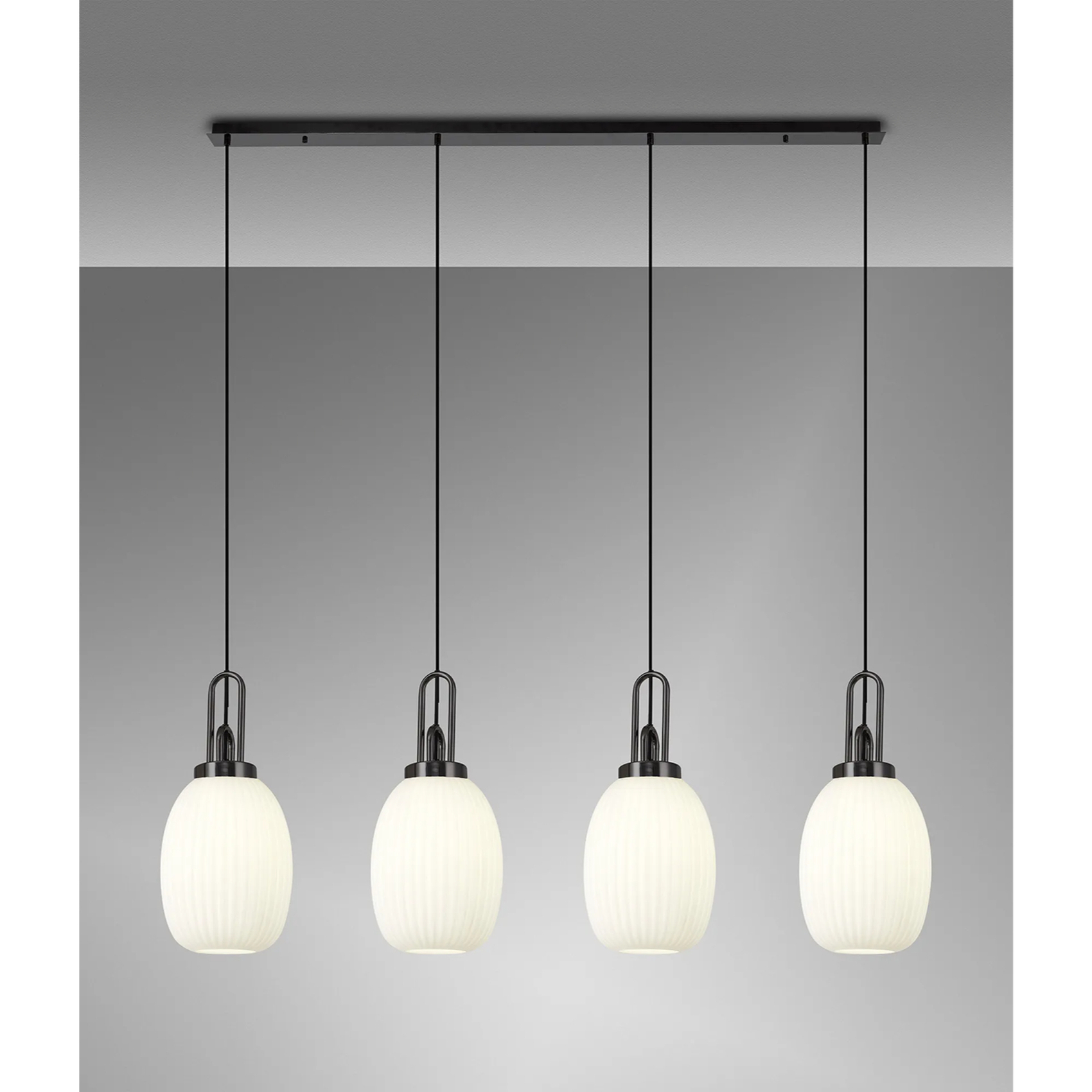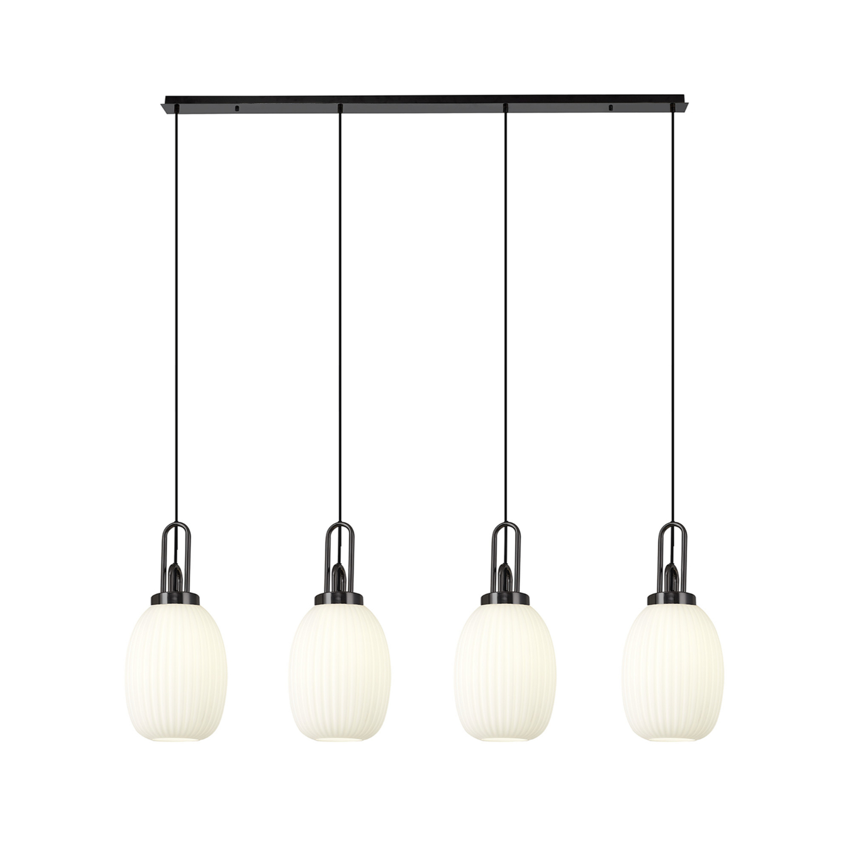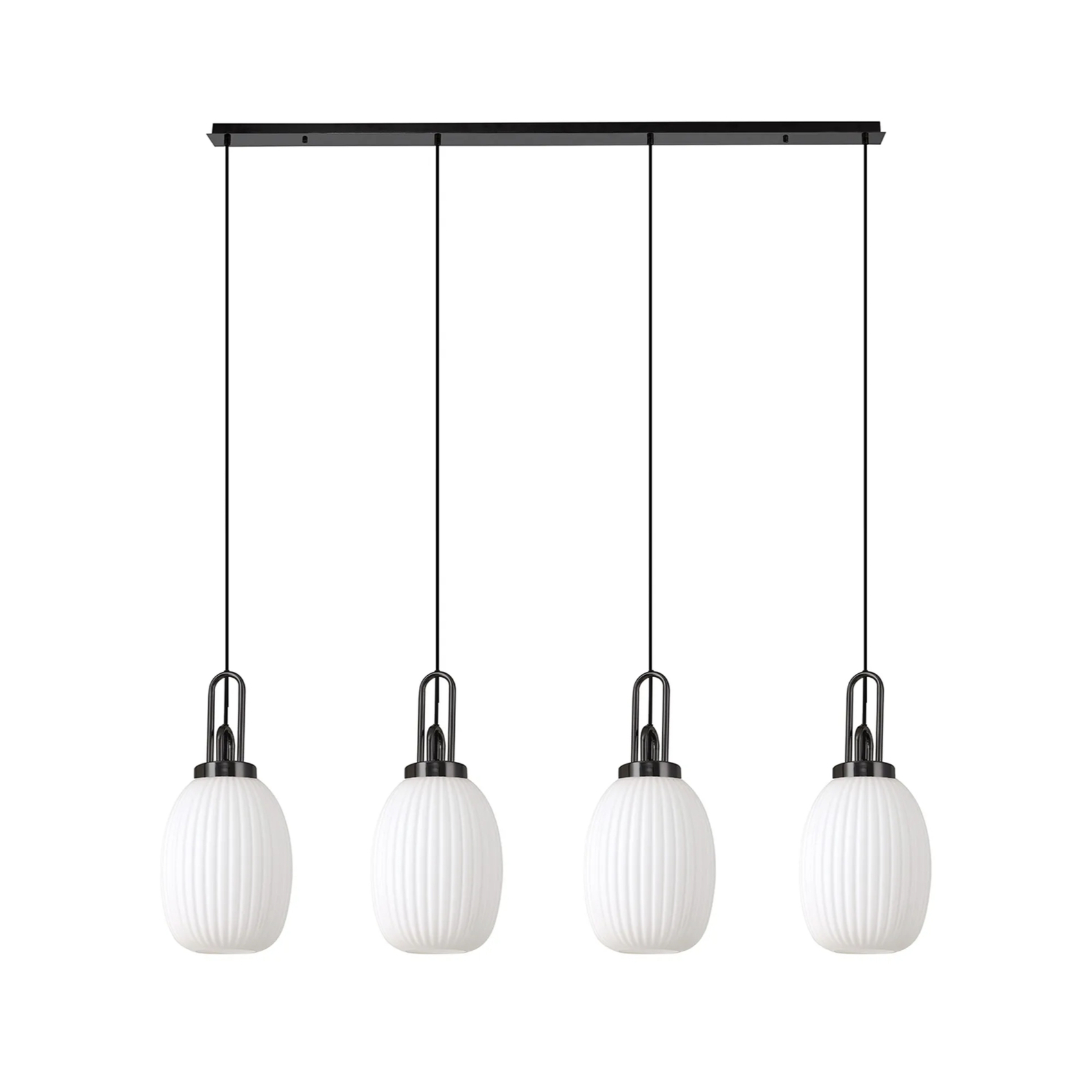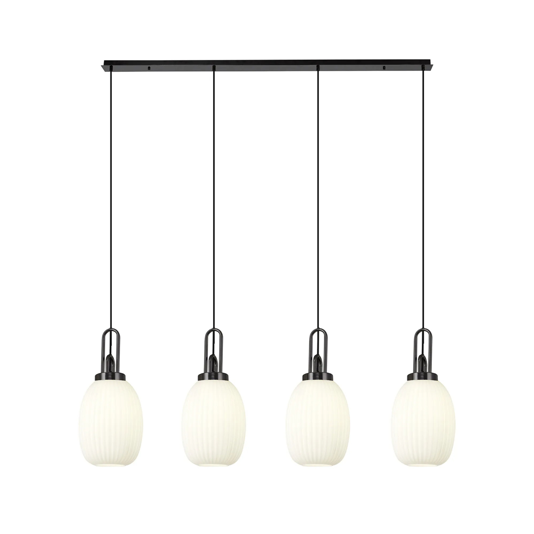 Idolite Camille Linear 4 Light Pendant With 20cm Almond Ribbed Glass, Black Chrome/Matt Black Opal | IDOK5780