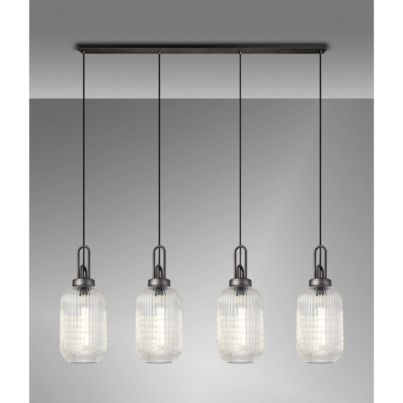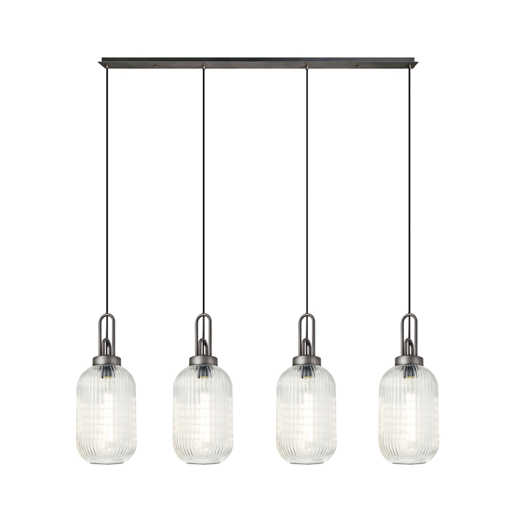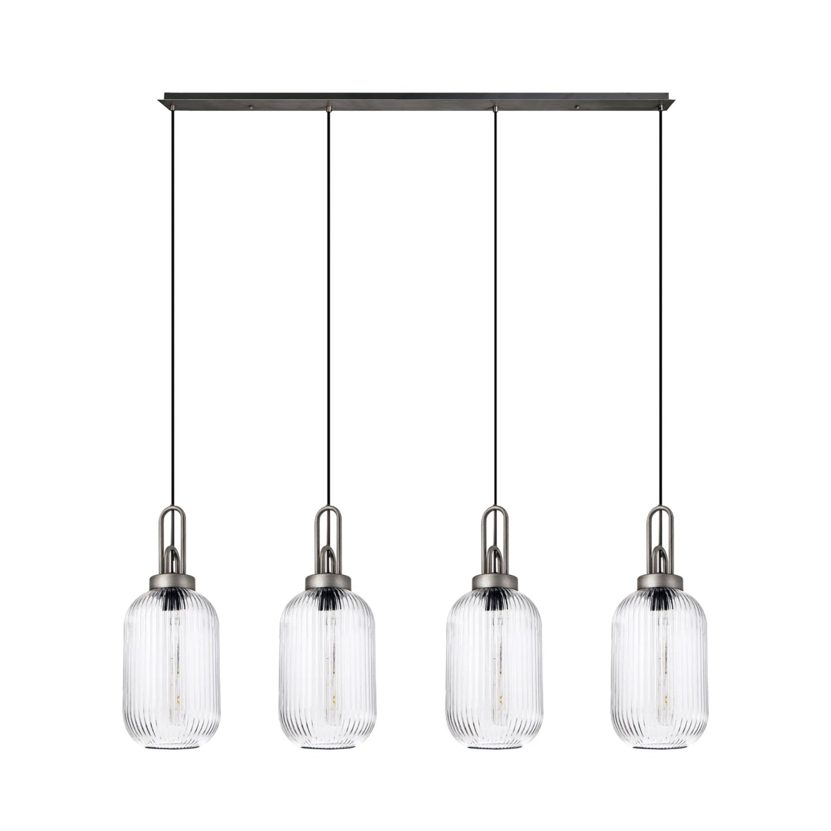 Idolite Camille Linear 4 Light Pendant With 20cm Tubular Ribbed Glass, Aged Pewter/Matt Black Clear | IDOK2470