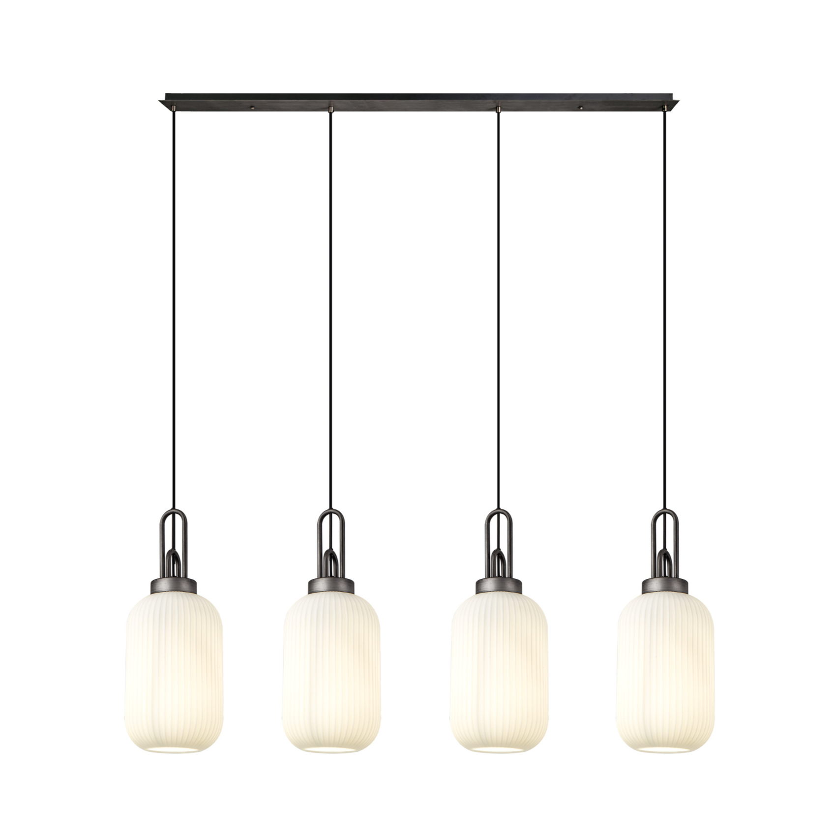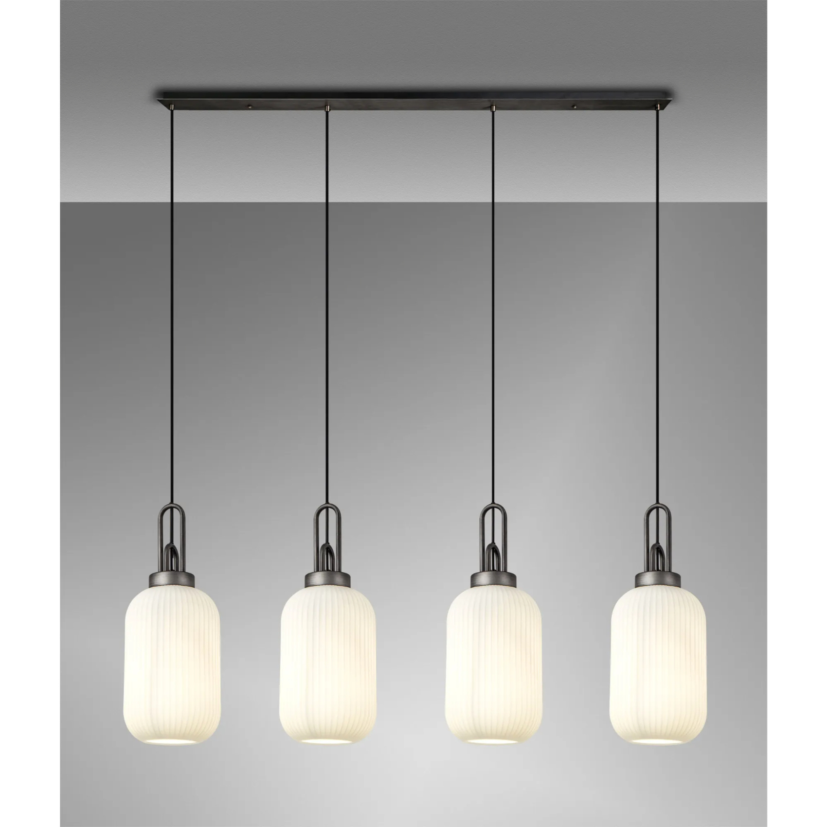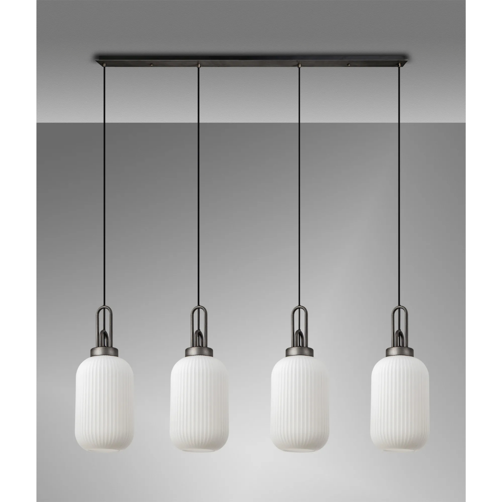 Idolite Camille Linear 4 Light Pendant With 20cm Tubular Ribbed Glass, Aged Pewter/Matt Black Opal | IDOK1270