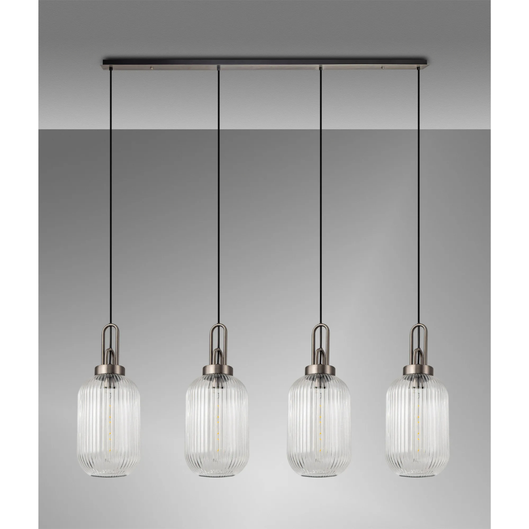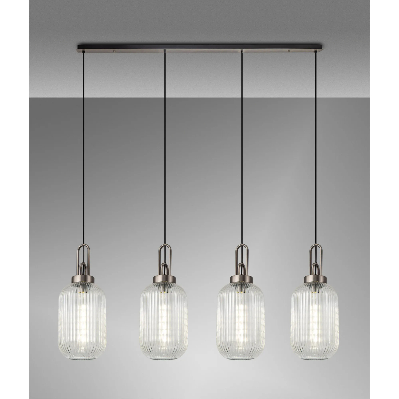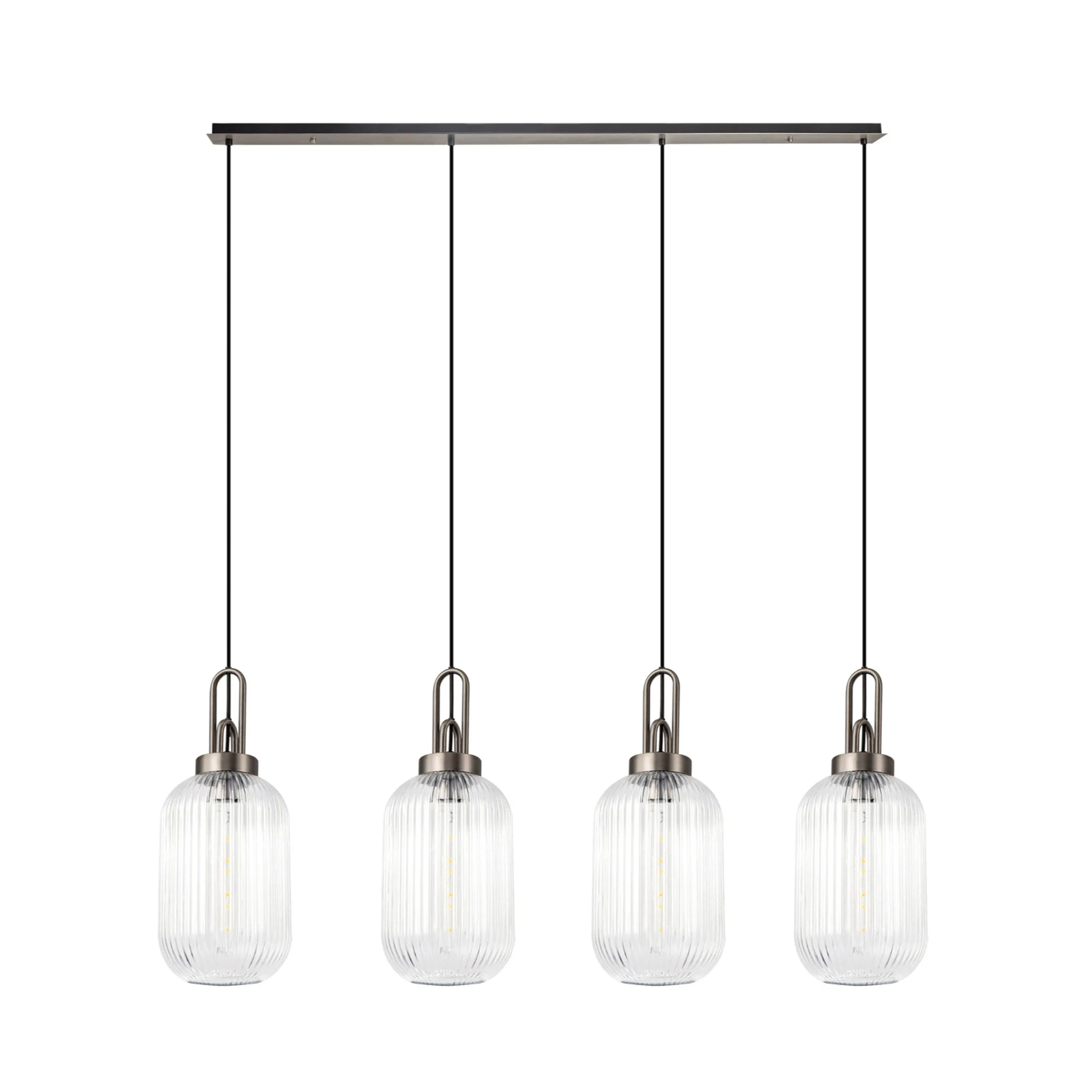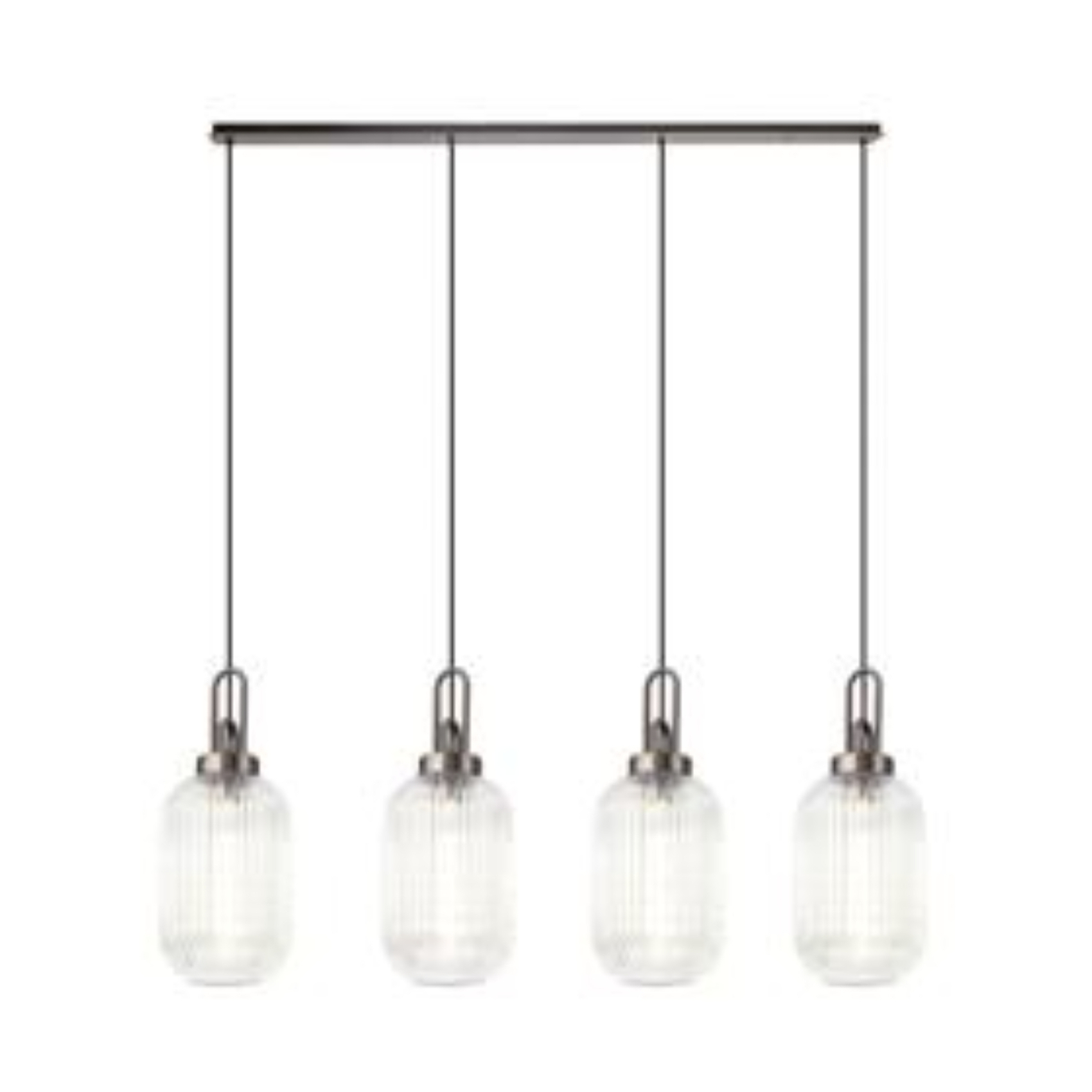 Idolite Camille Linear 4 Light Pendant With 20cm Tubular Ribbed Glass, Antique Silver/Matt Black Clear | IDOK6470