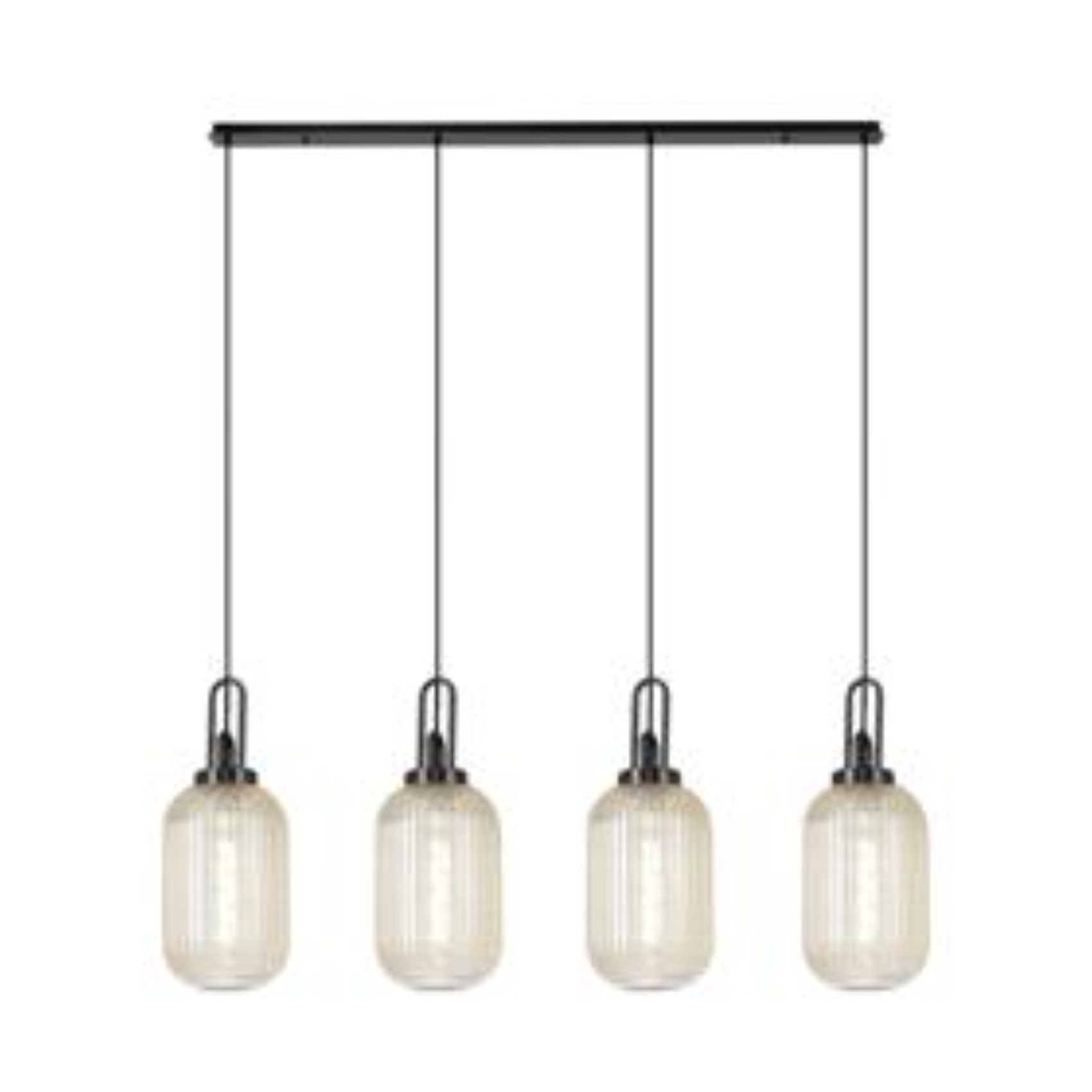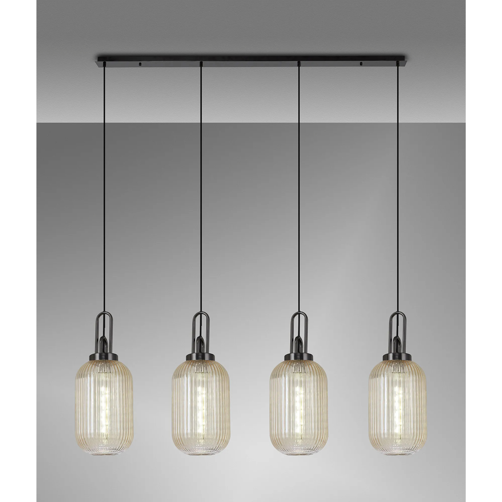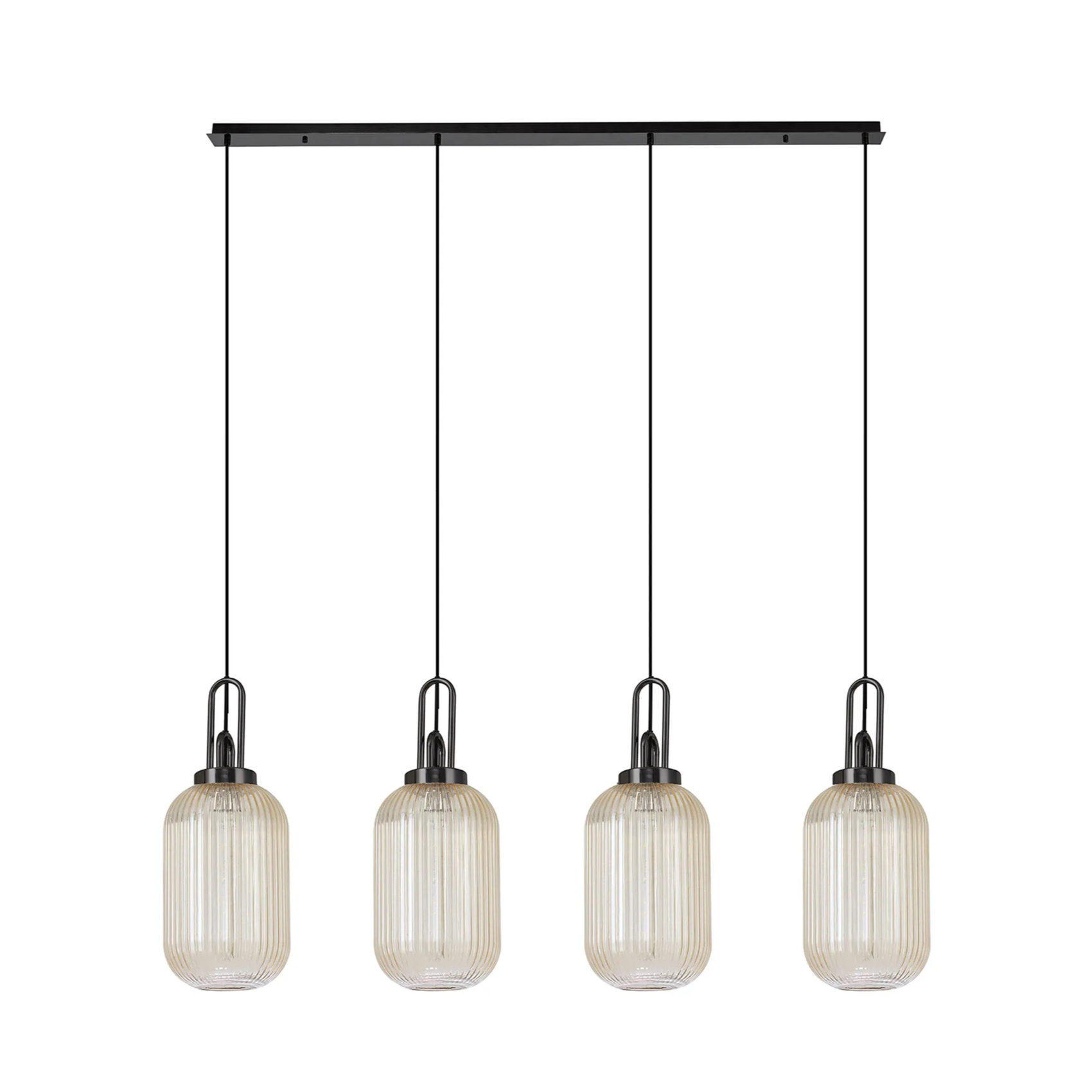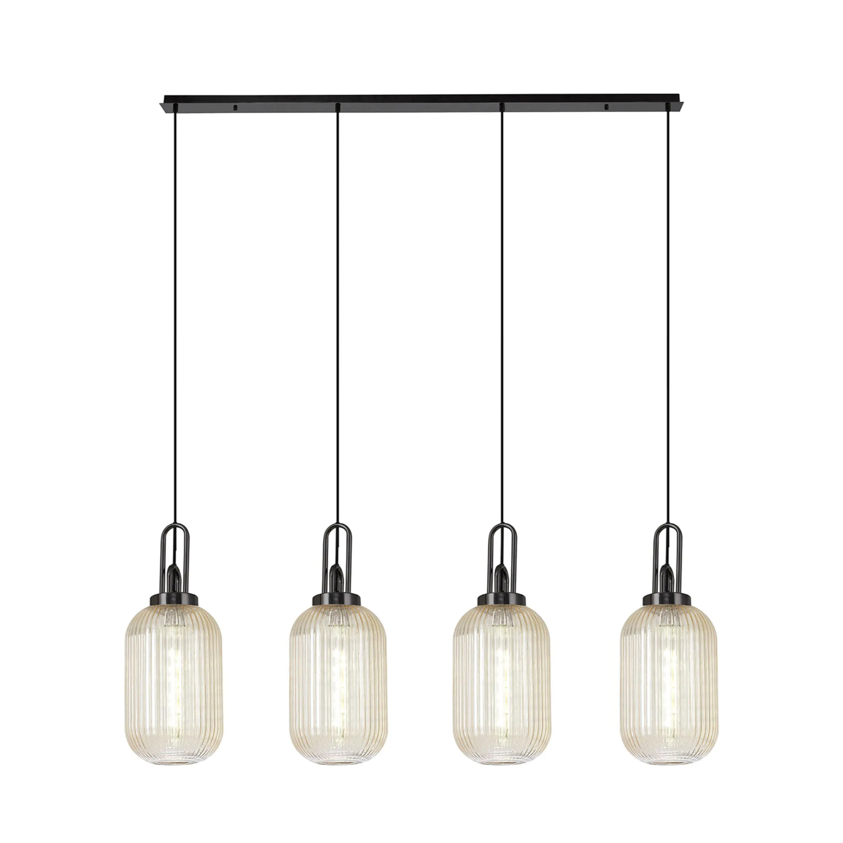 Idolite Camille Linear 4 Light Pendant With 20cm Tubular Ribbed Glass, Black Chrome/Matt Black Champagne | IDOK1970